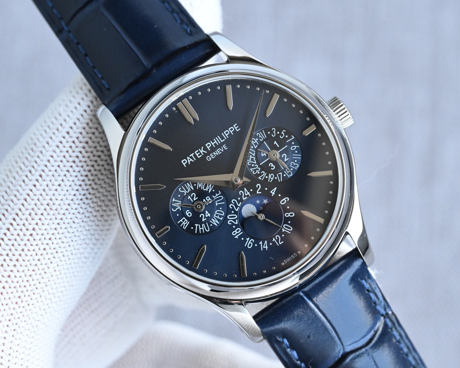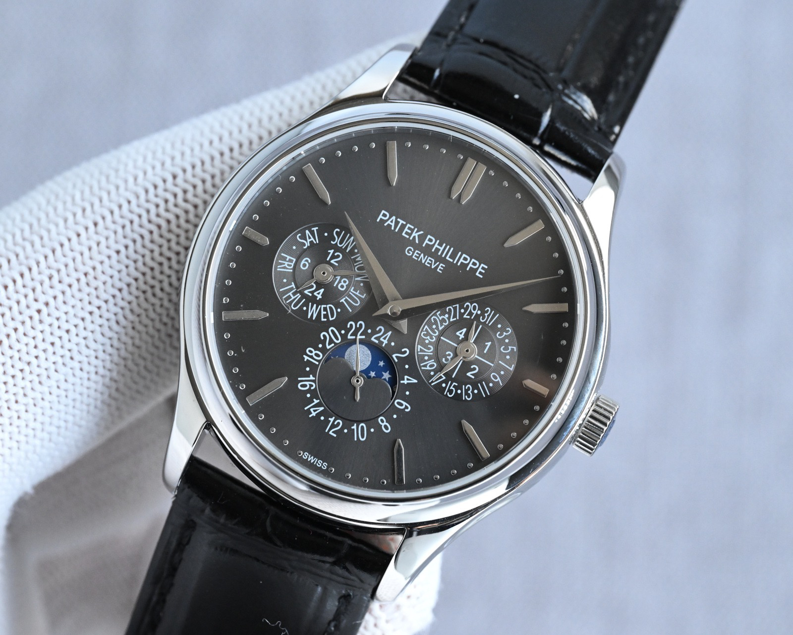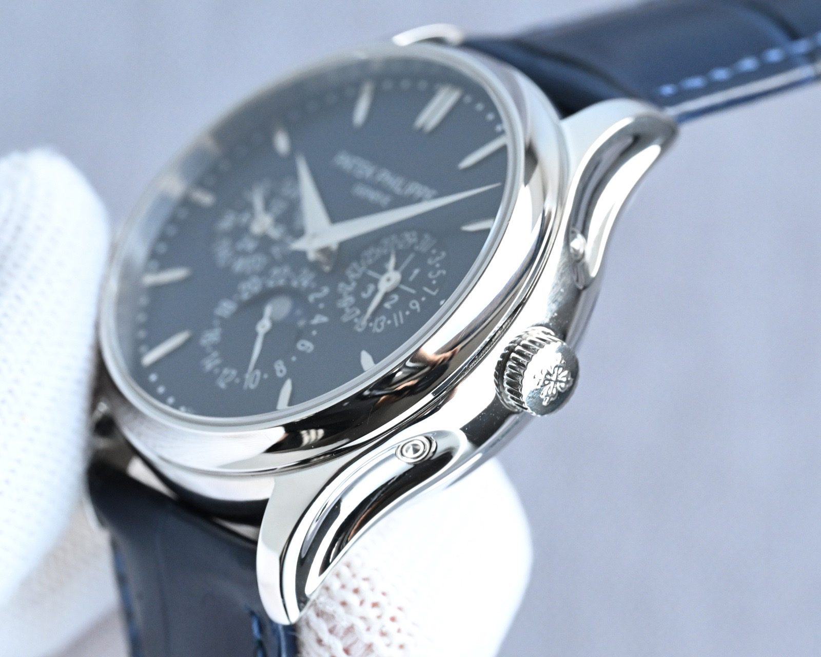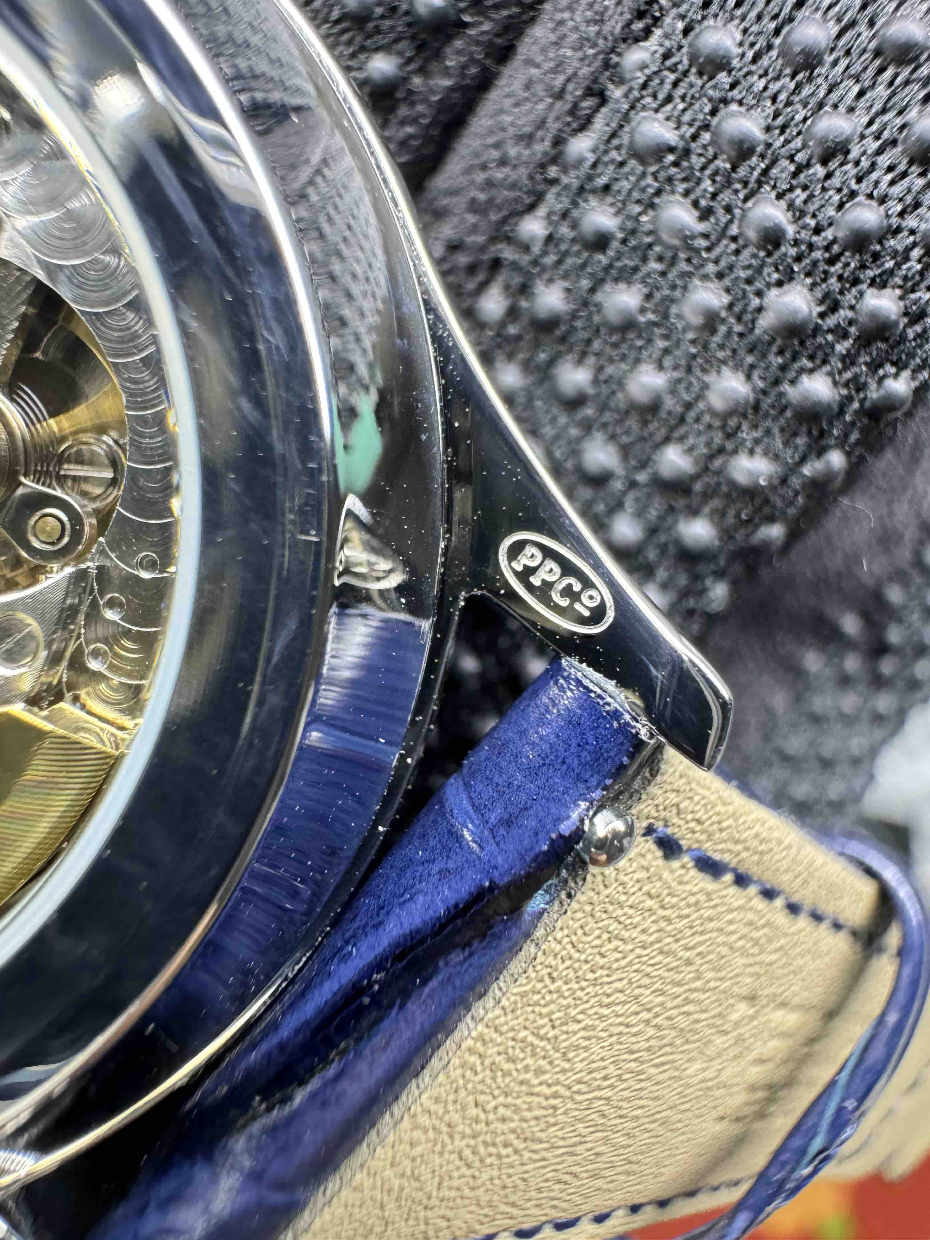 The overall layout of the dial is wide but not compact, warm and elegant, paired with an Italian leather strap and a PP logo hollowed out lantern buckle, giving it a vintage and elegant feeling.