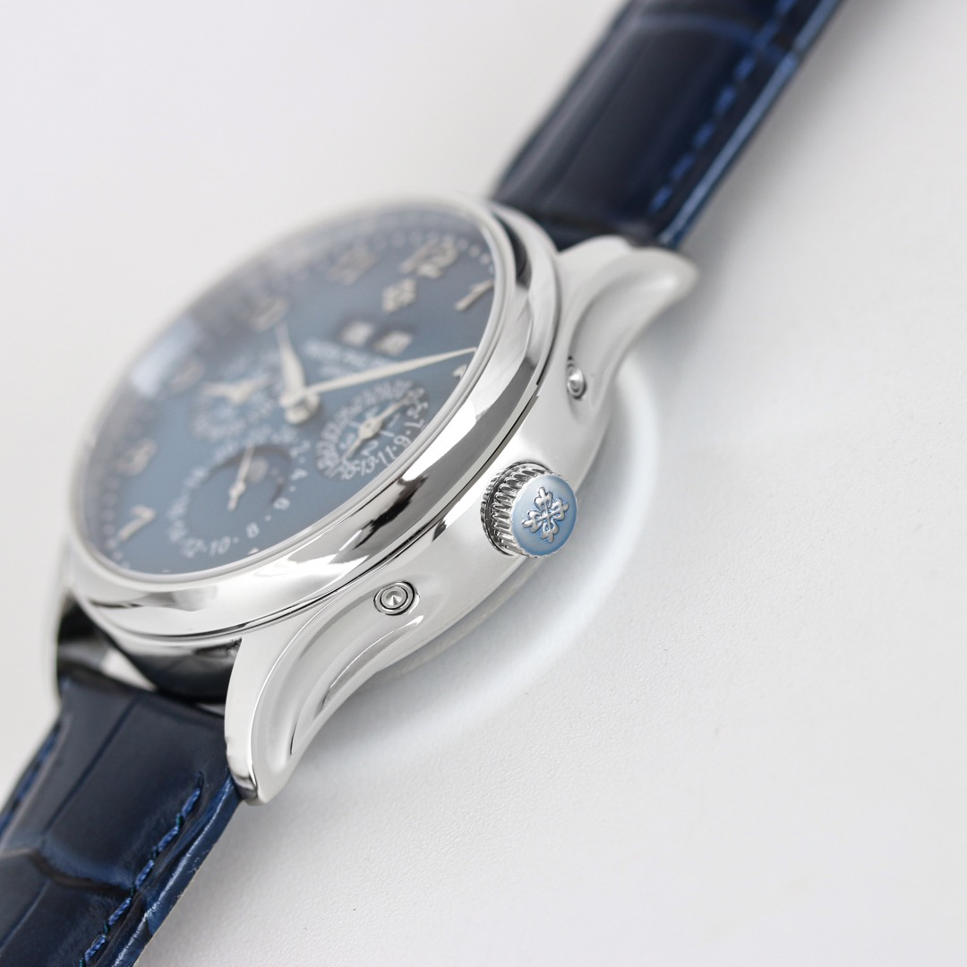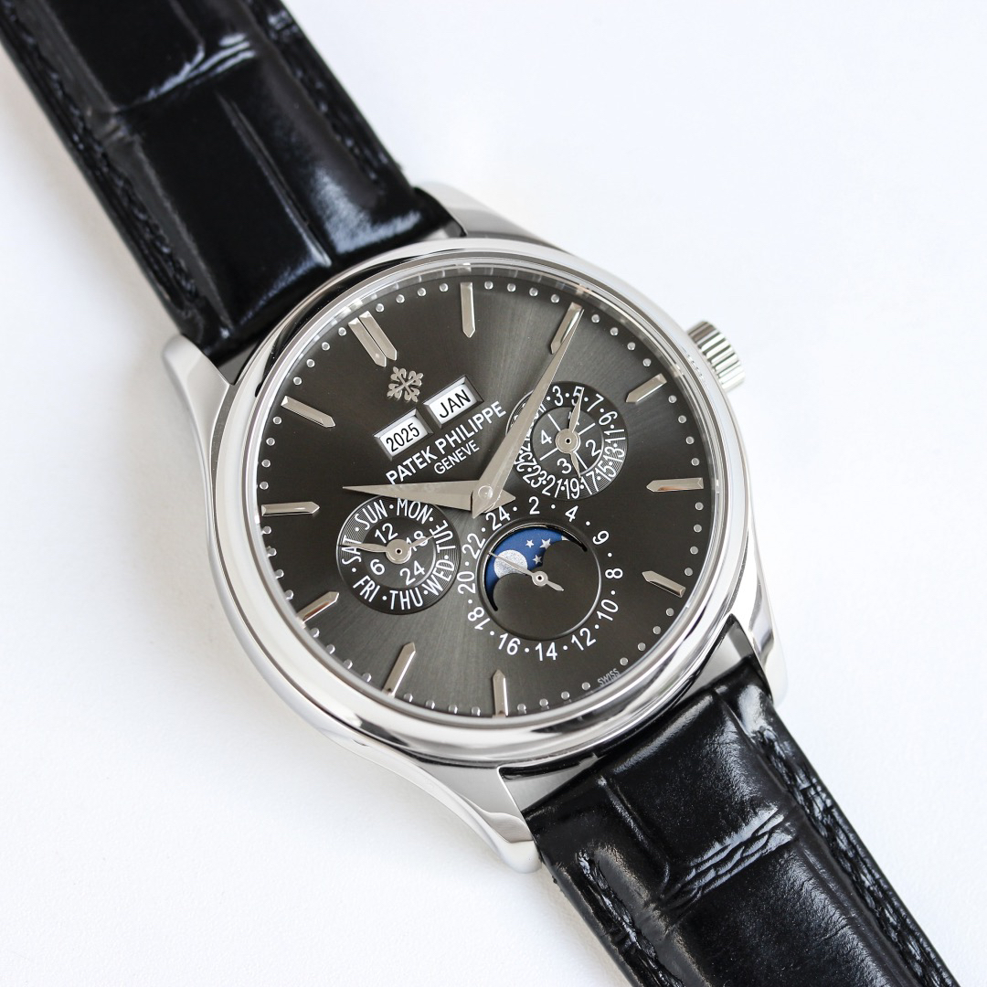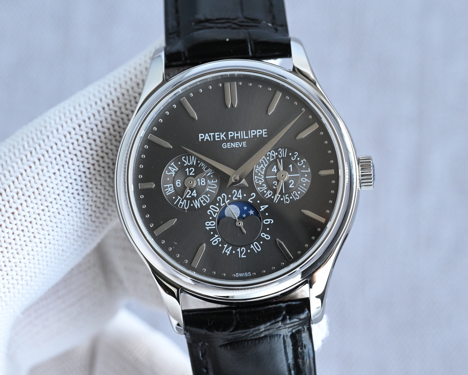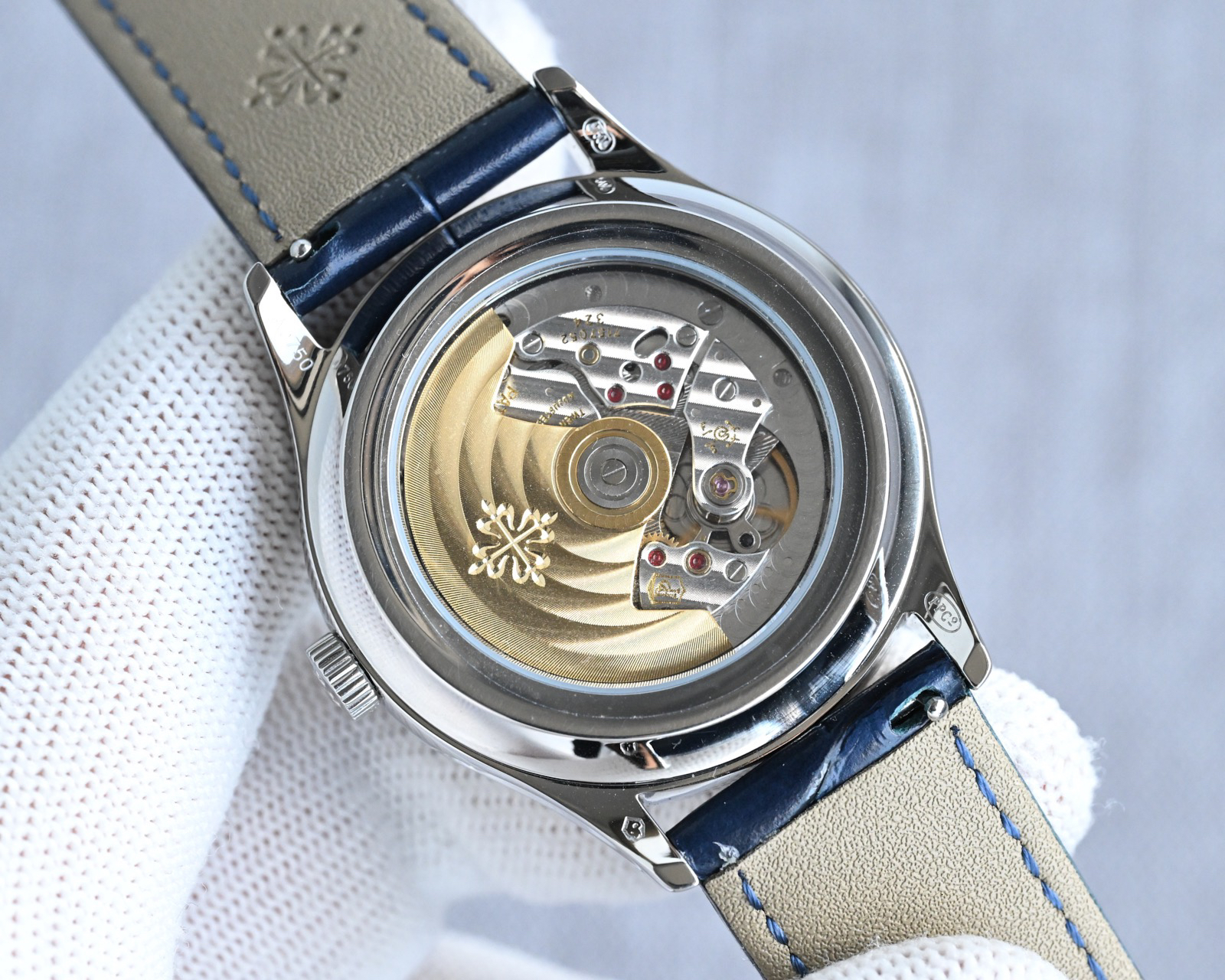 The overall layout of the dial is wide but not compact, warm and elegant, paired with an Italian leather strap and a PP logo hollowed out lantern buckle, giving it a vintage and elegant feeling.