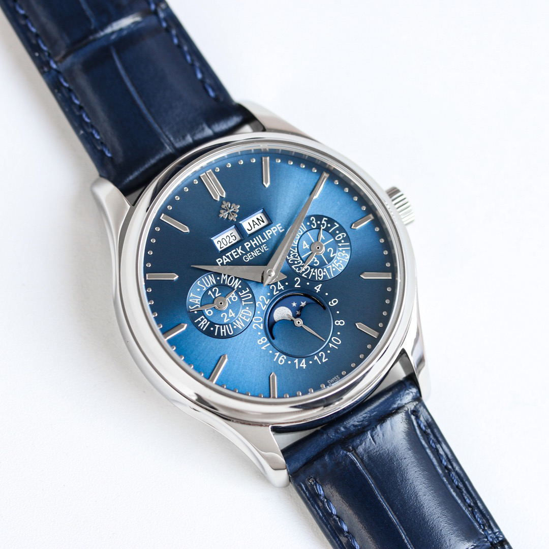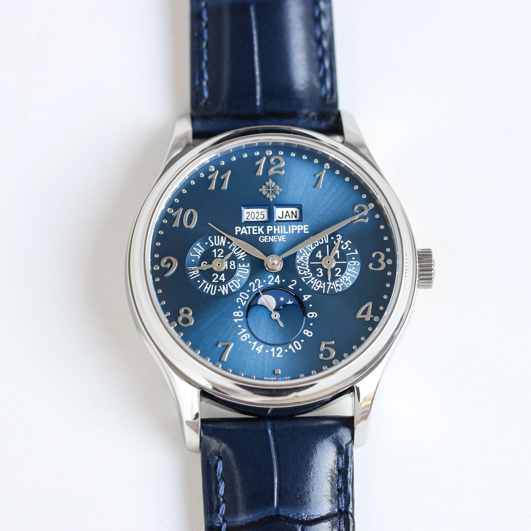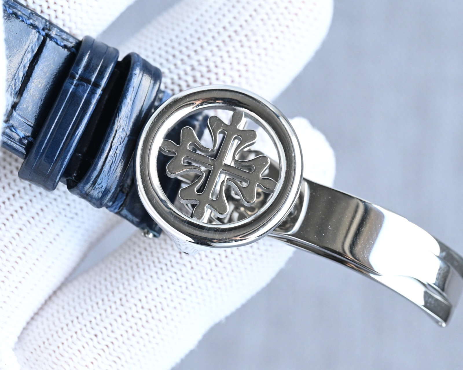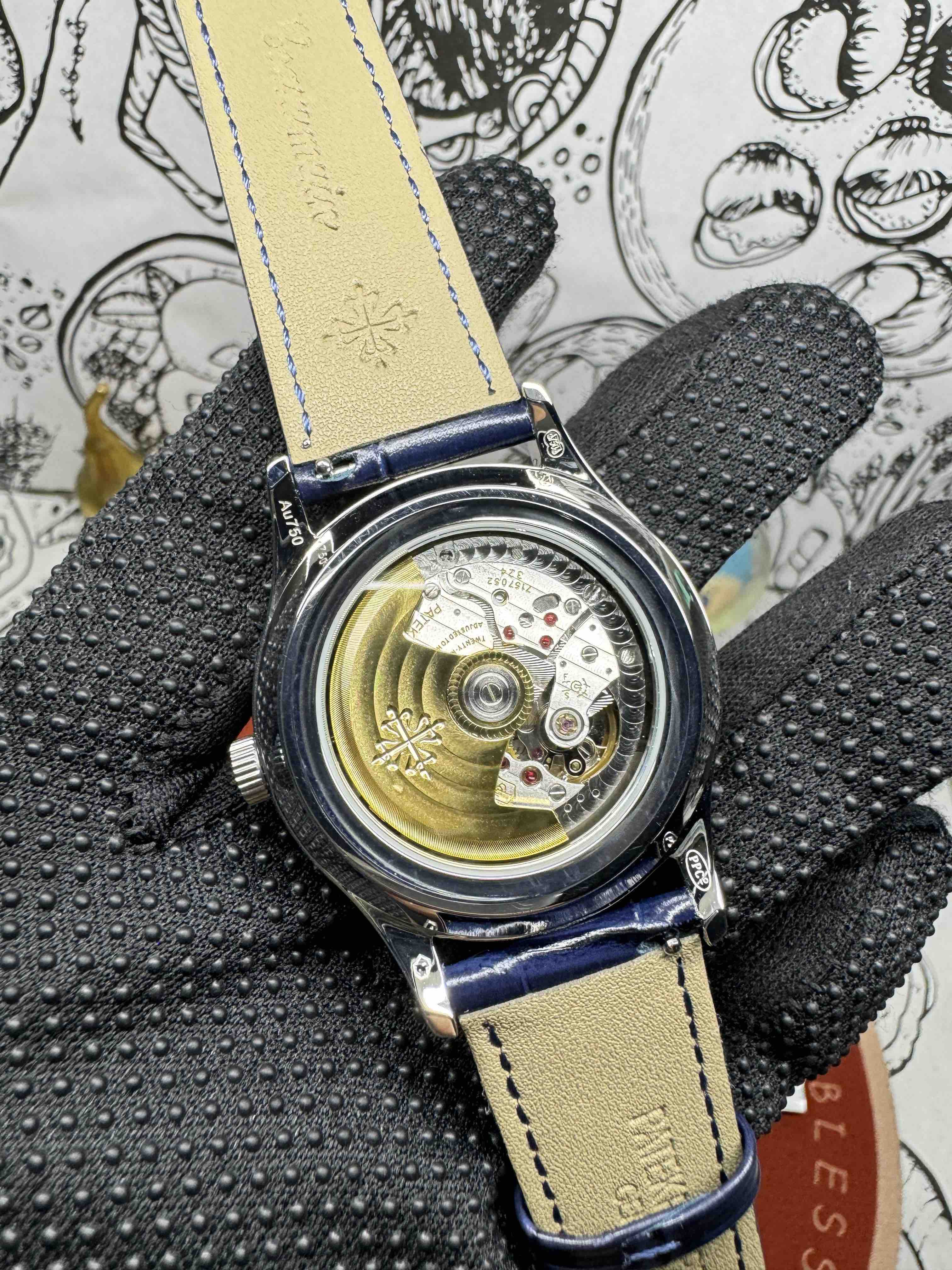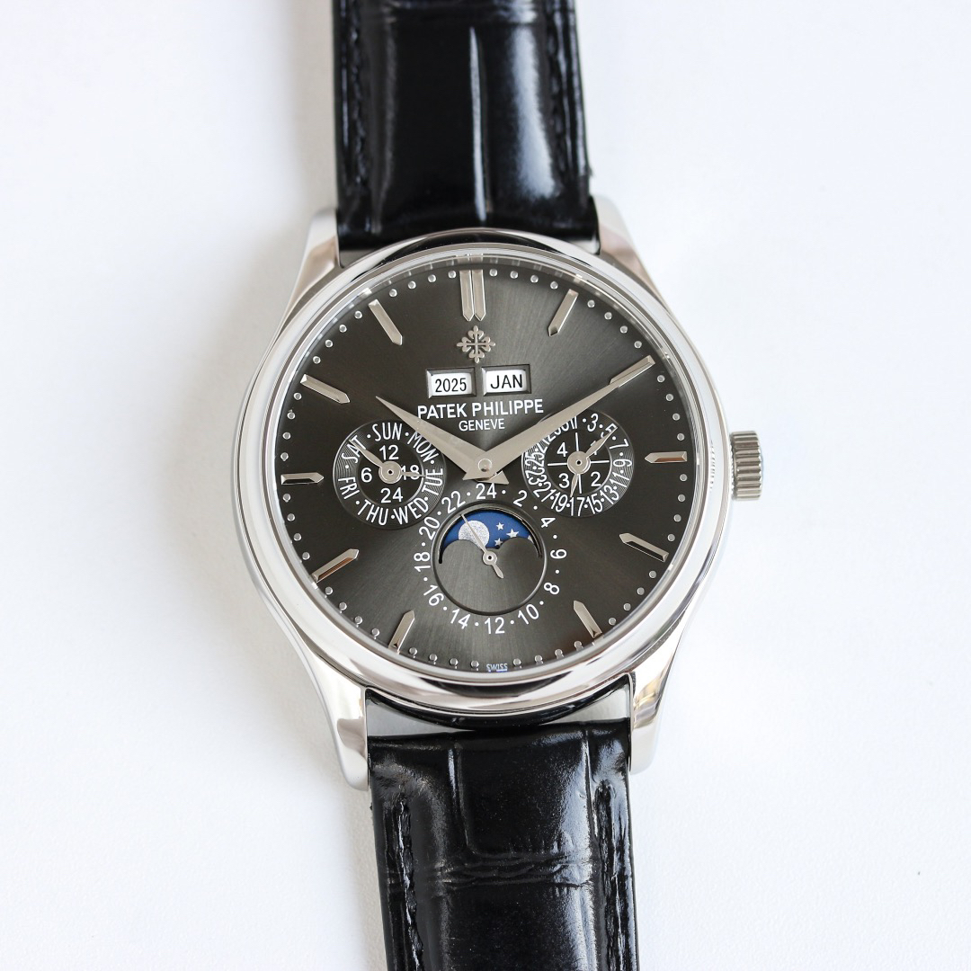 The overall layout of the dial is wide but not compact, warm and elegant, paired with an Italian leather strap and a PP logo hollowed out lantern buckle, giving it a vintage and elegant feeling.