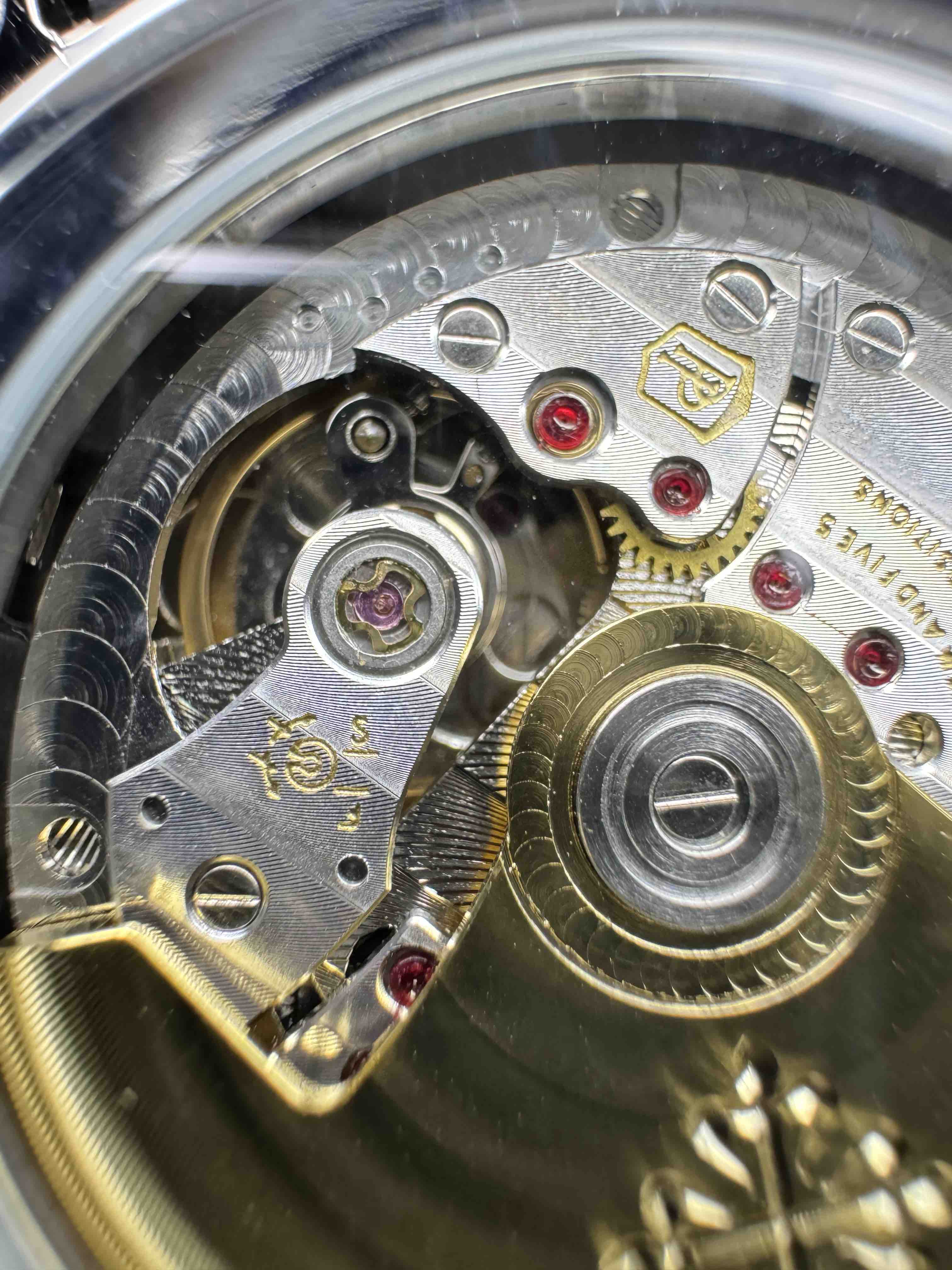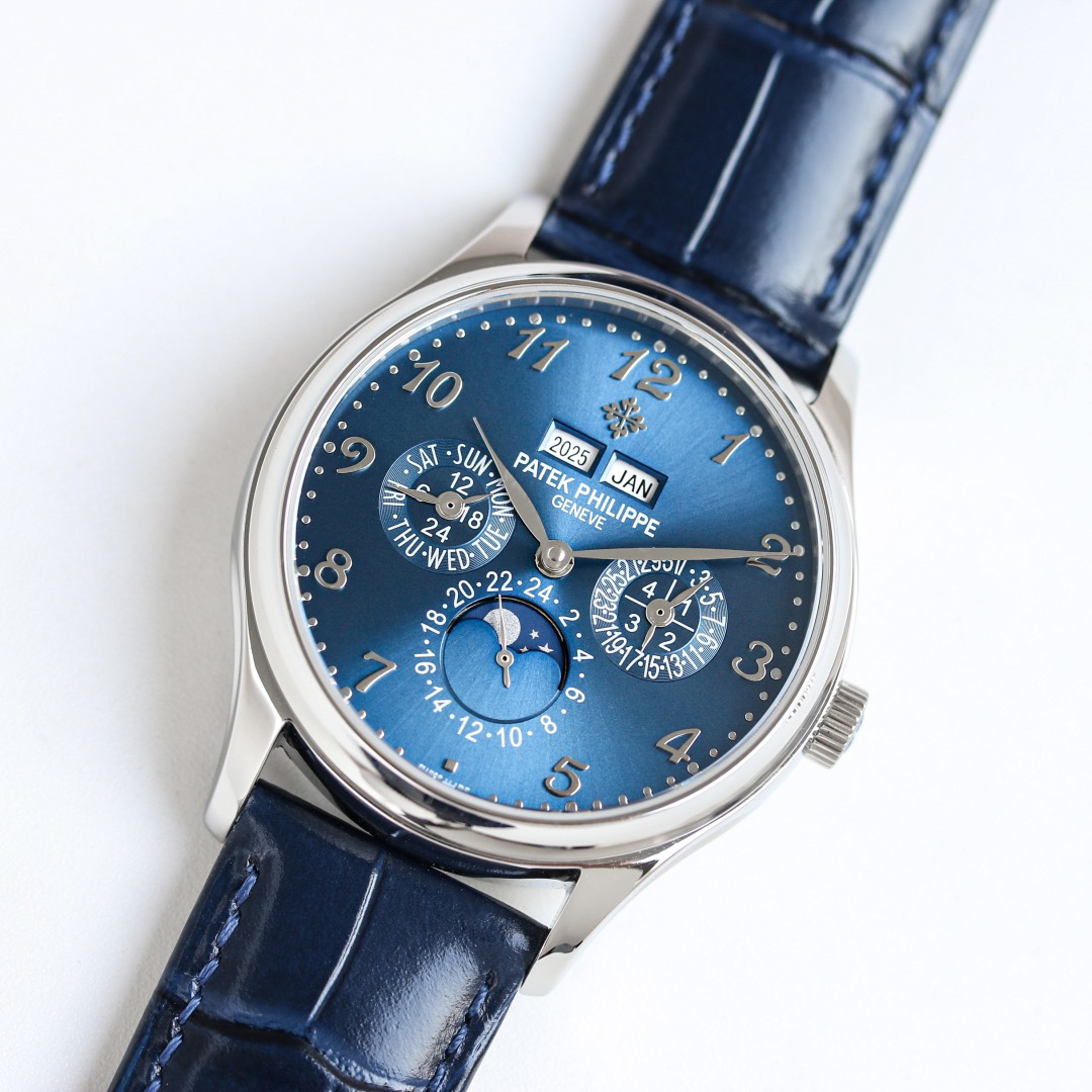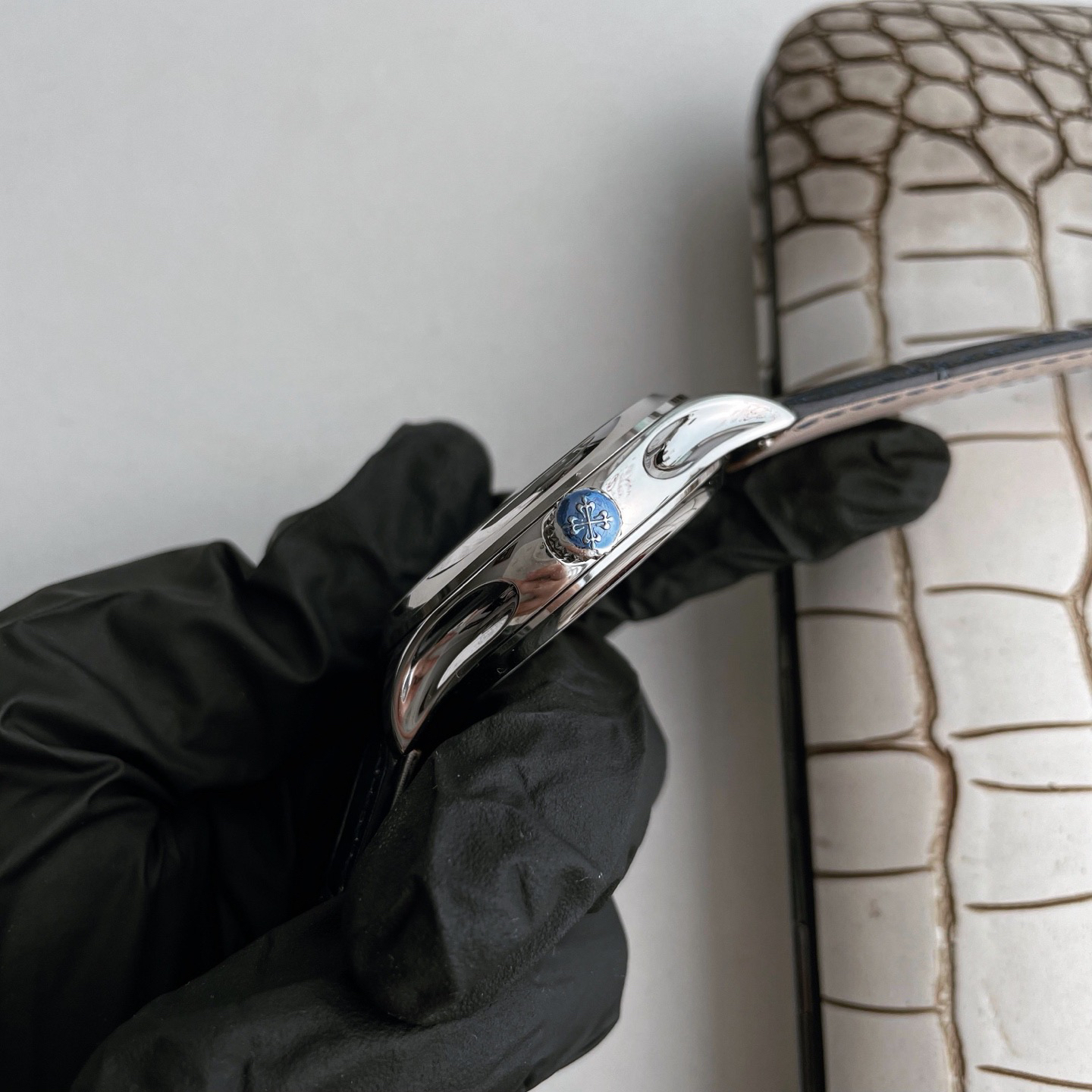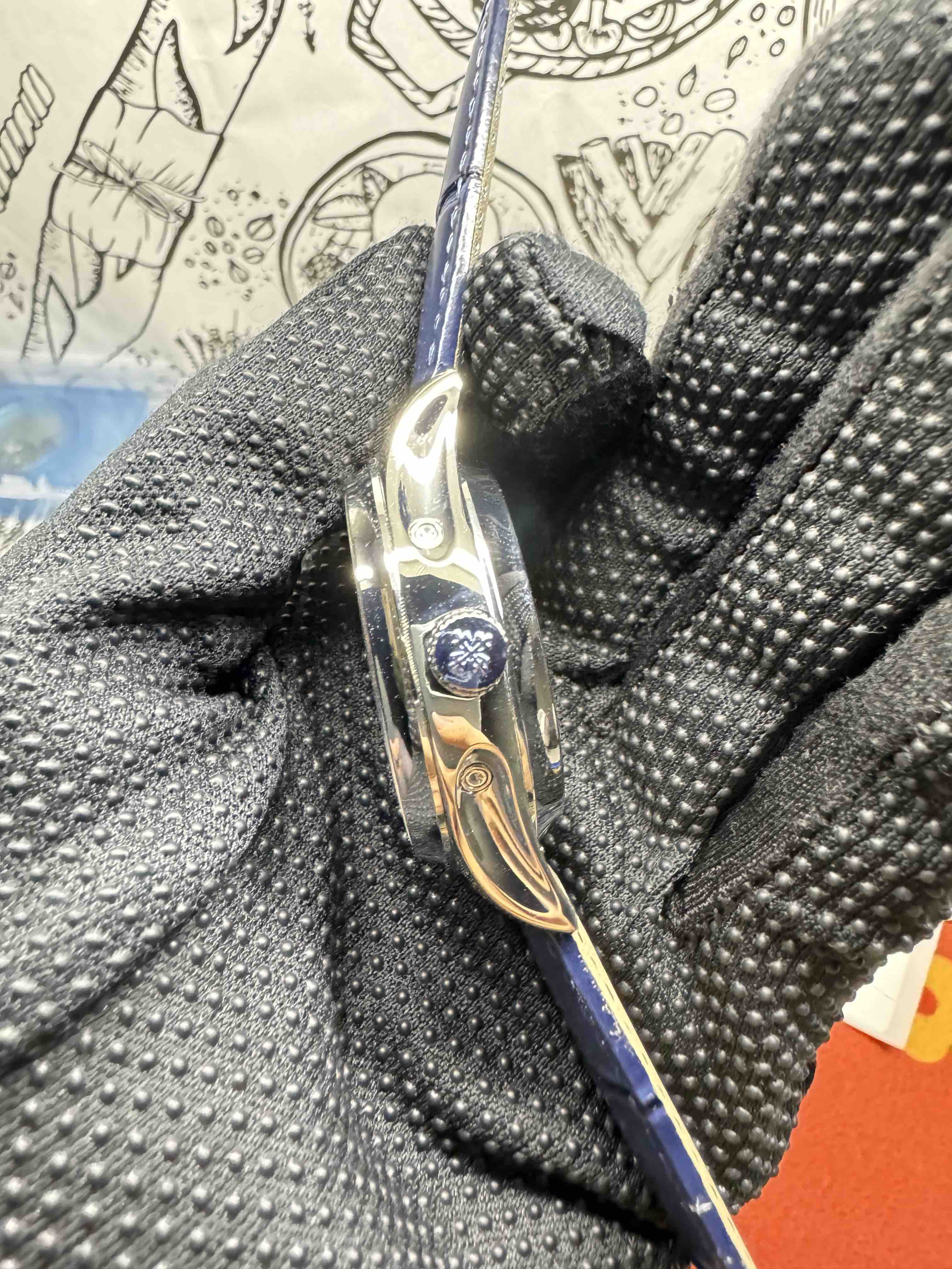 The overall layout of the dial is wide but not compact, warm and elegant, paired with an Italian leather strap and a PP logo hollowed out lantern buckle, giving it a vintage and elegant feeling.