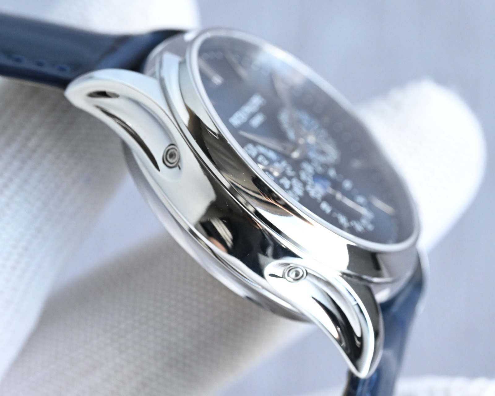 2:表盘6点位置为日期和真月相显示,(日期月相快捷按钮🔘位于9点位表壳处)
