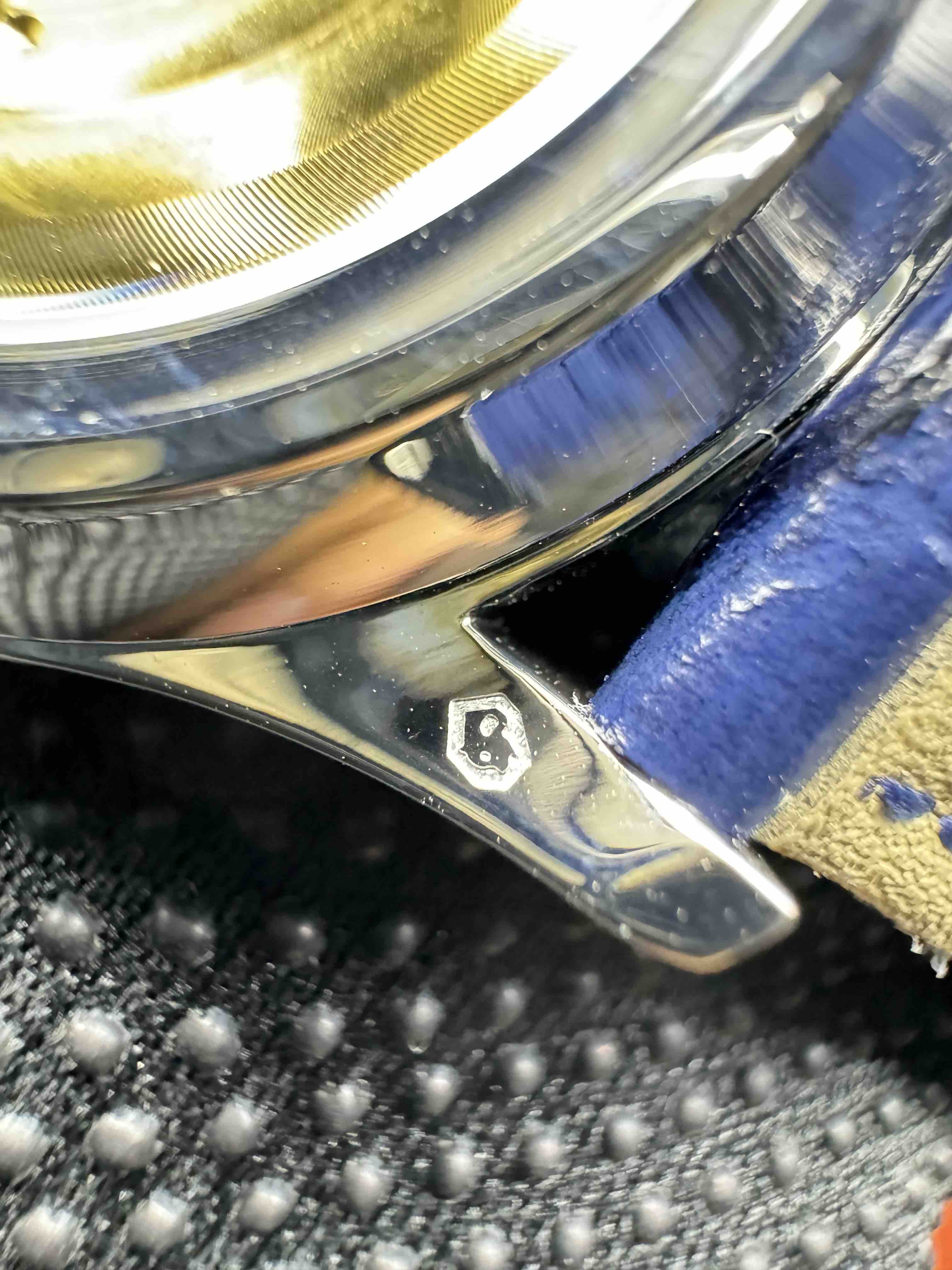2: The 6 o'clock position on the dial displays the date and the true moon phase (date moon phase shortcut button) 🔘 Located at the 9 o'clock position on the watch case