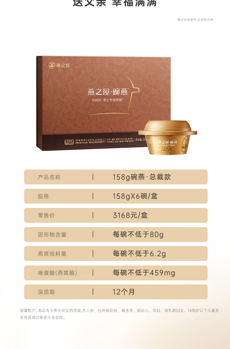 【官方直营◆商场同款】燕之屋碗燕总裁款158g*6碗 高端商务礼盒装 滋补燕窝印尼|健康礼品【认准旗舰店】