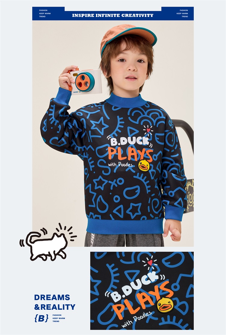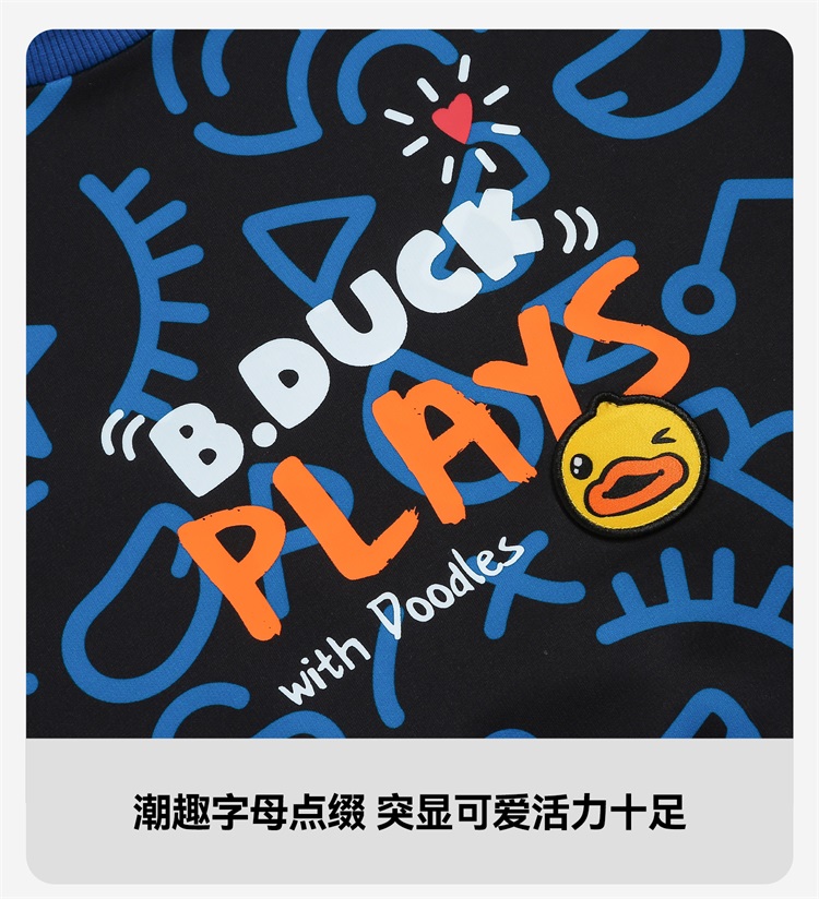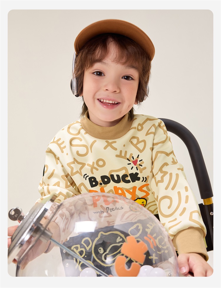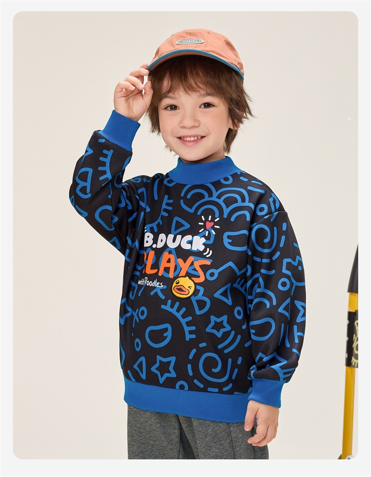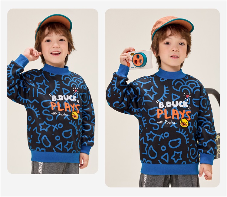 B.Duck小黄鸭童装中高圆领卫衣冬季男童满印上衣105-150 BF5531032