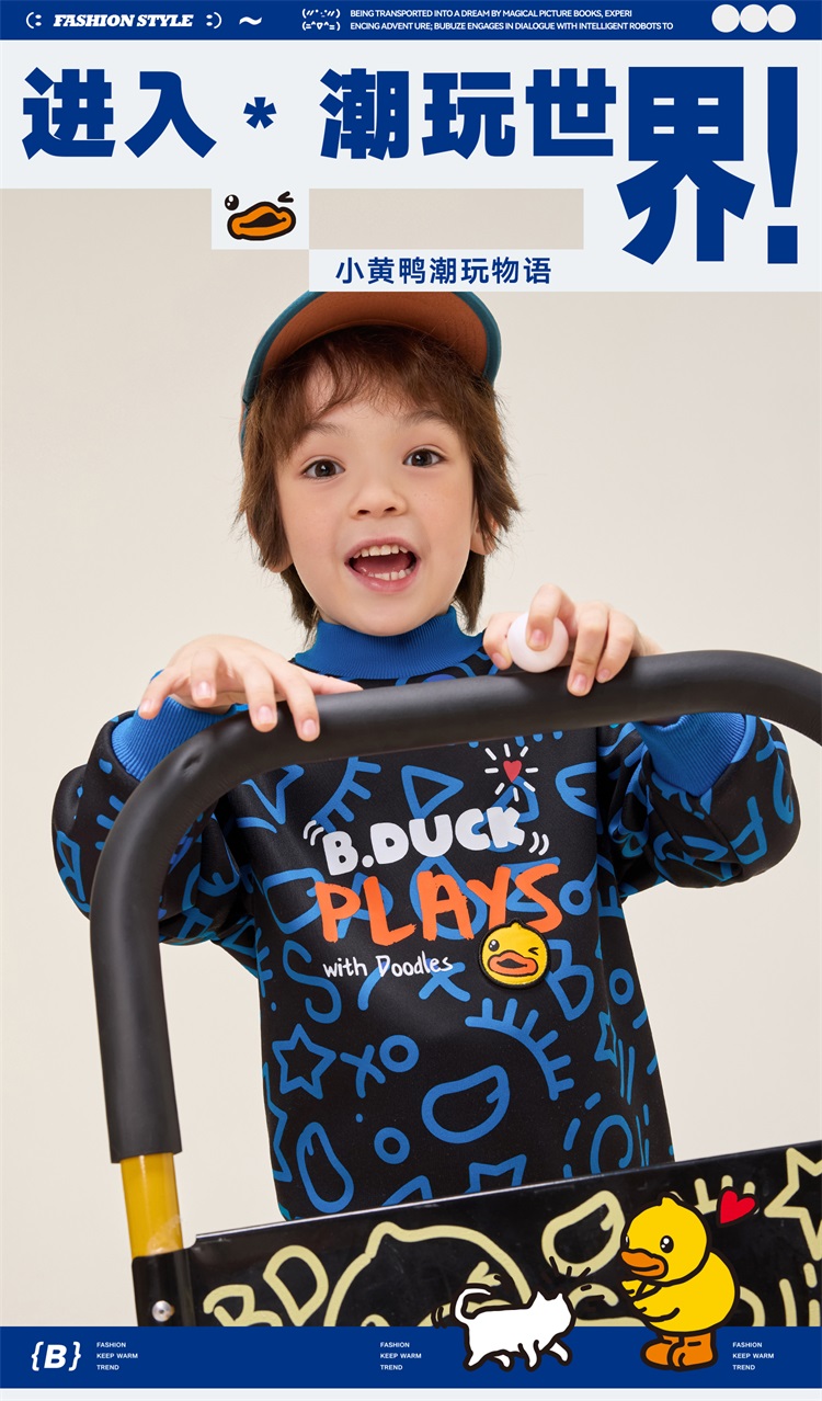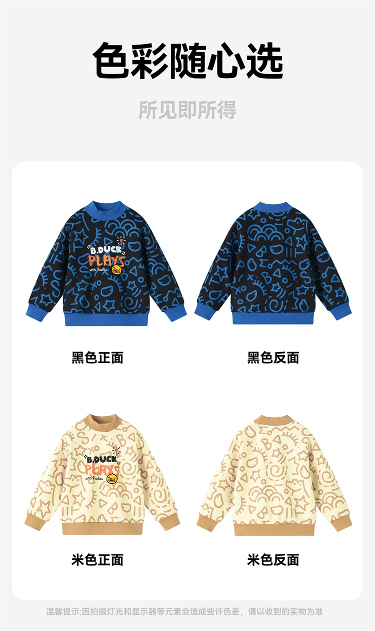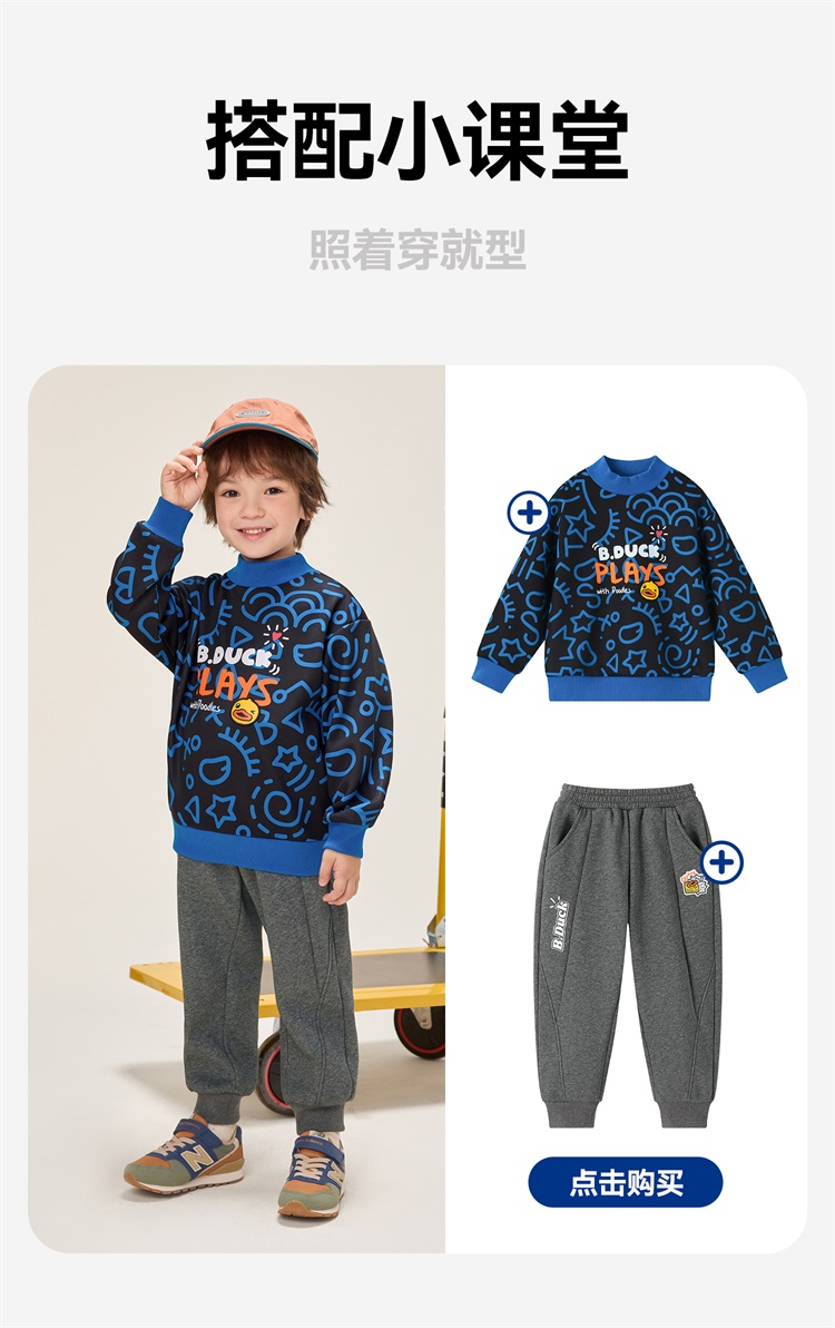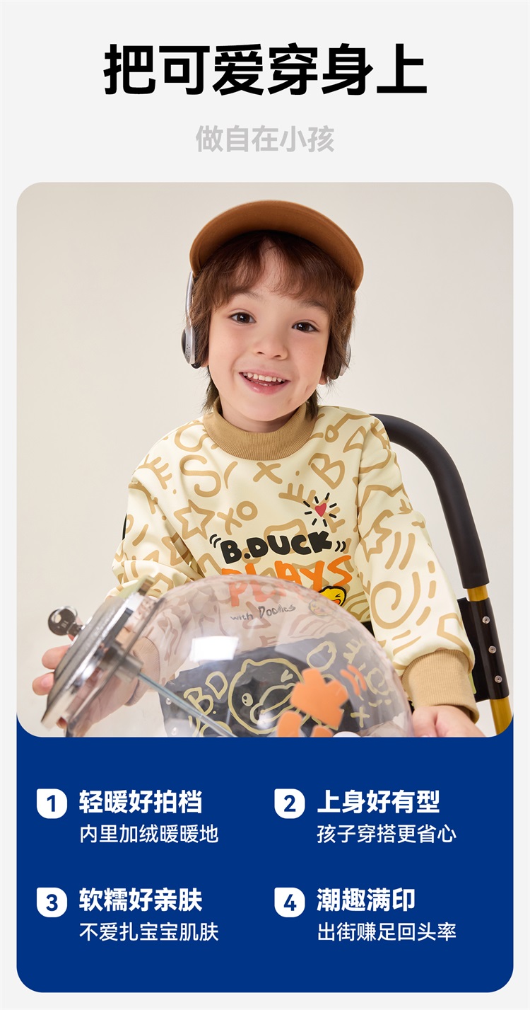 B.Duck小黄鸭童装中高圆领卫衣冬季男童满印上衣105-150 BF5531032