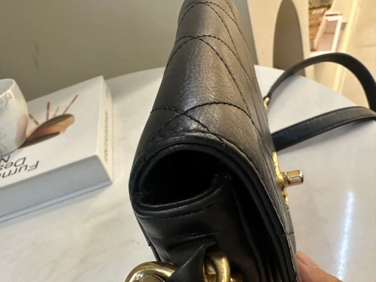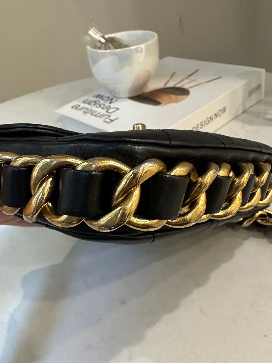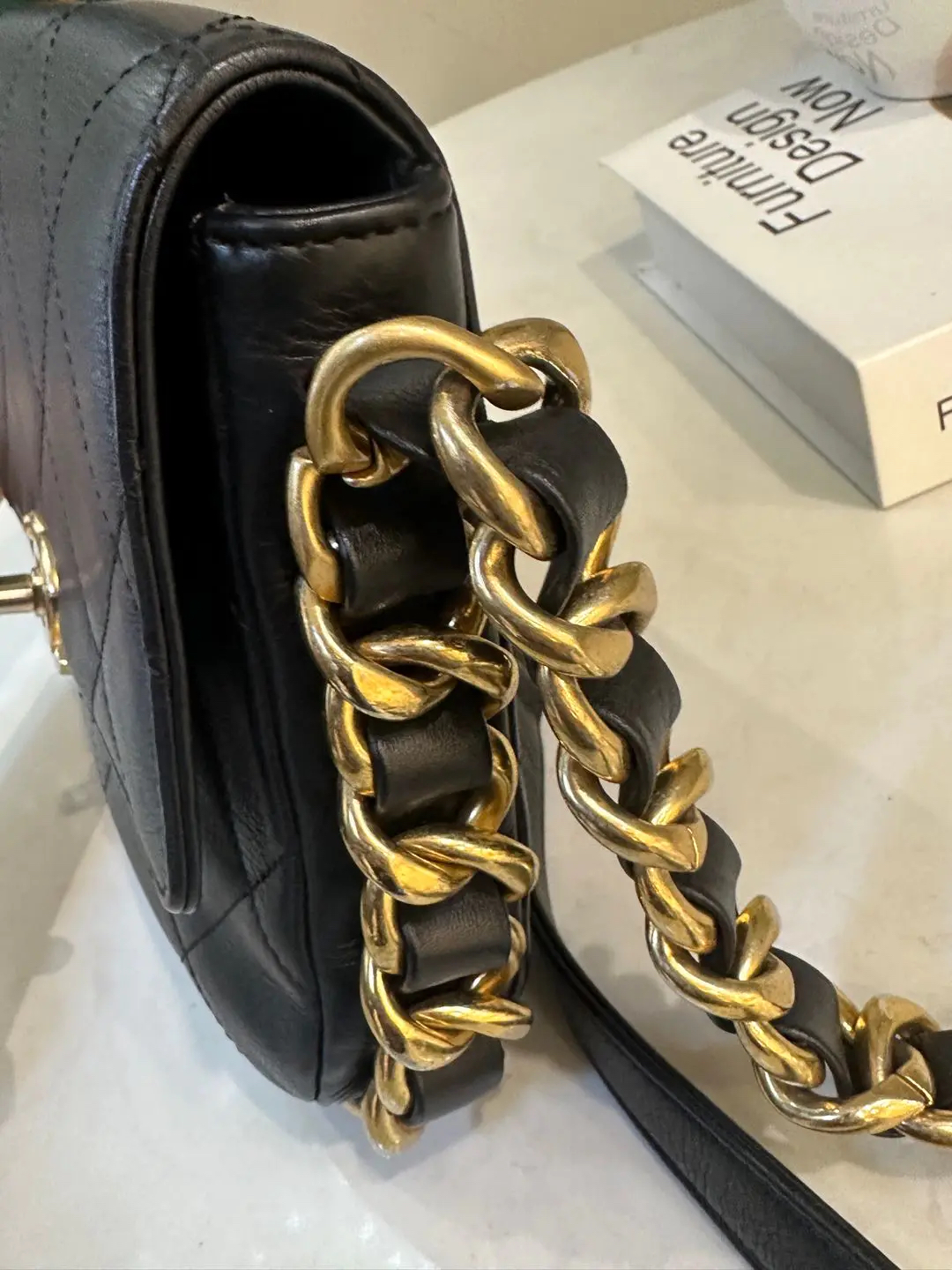 【商品详情】正品二手 Chanel 21k 秋冬新款 黑金 粗链条 牛皮 方胖子🤪97新 18×16 新钢标 配件:防尘袋。超級酷颯