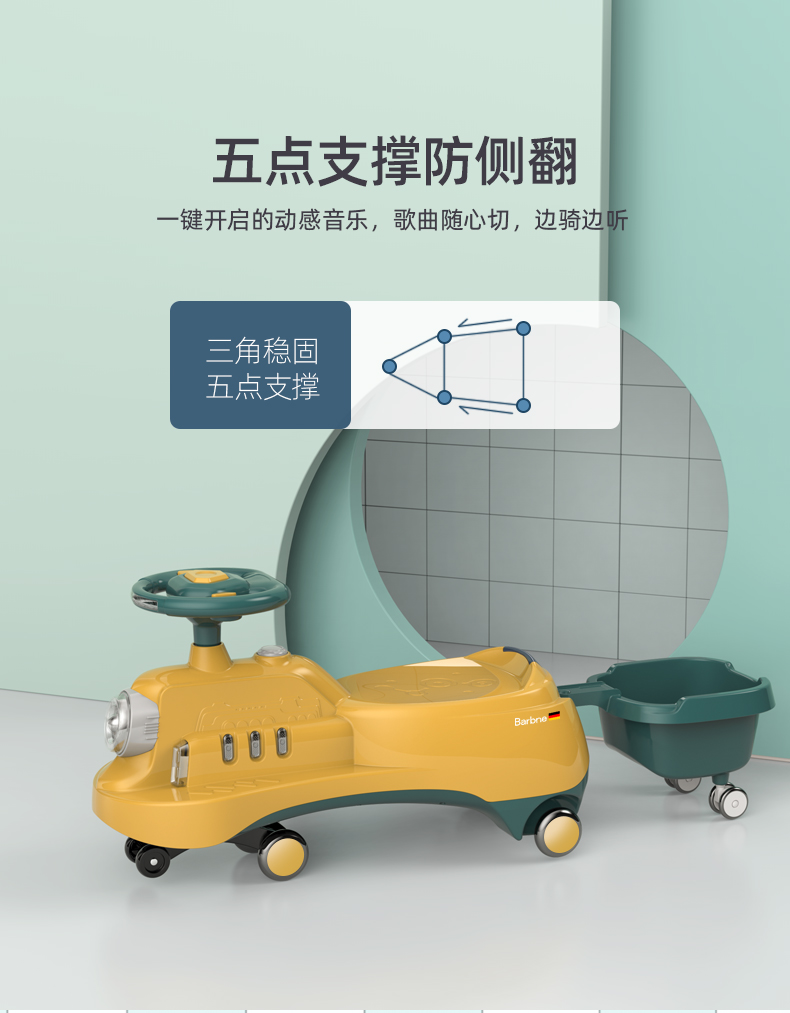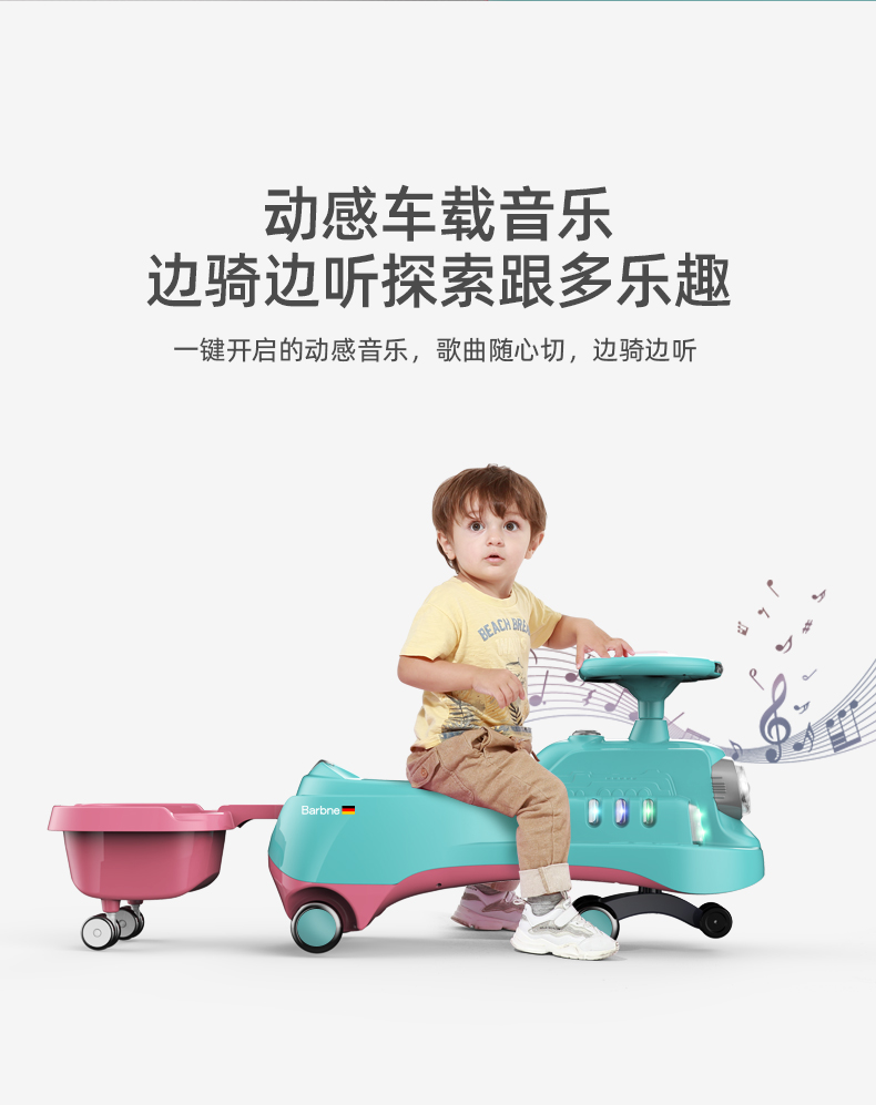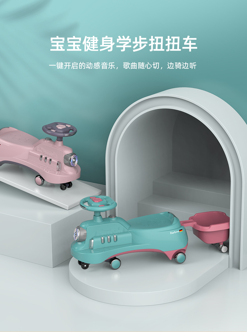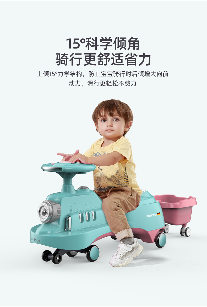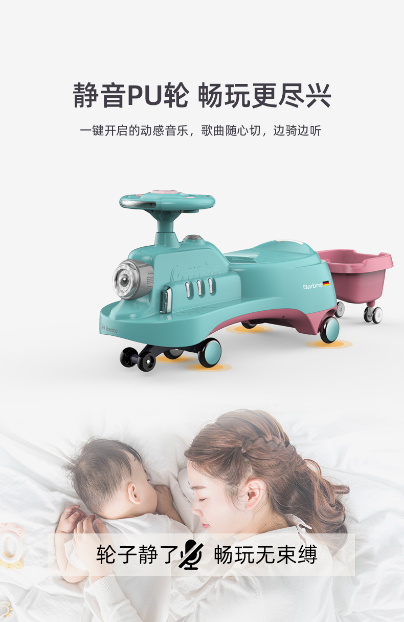巴巴泥儿童扭扭车防侧翻万向轮带拖斗