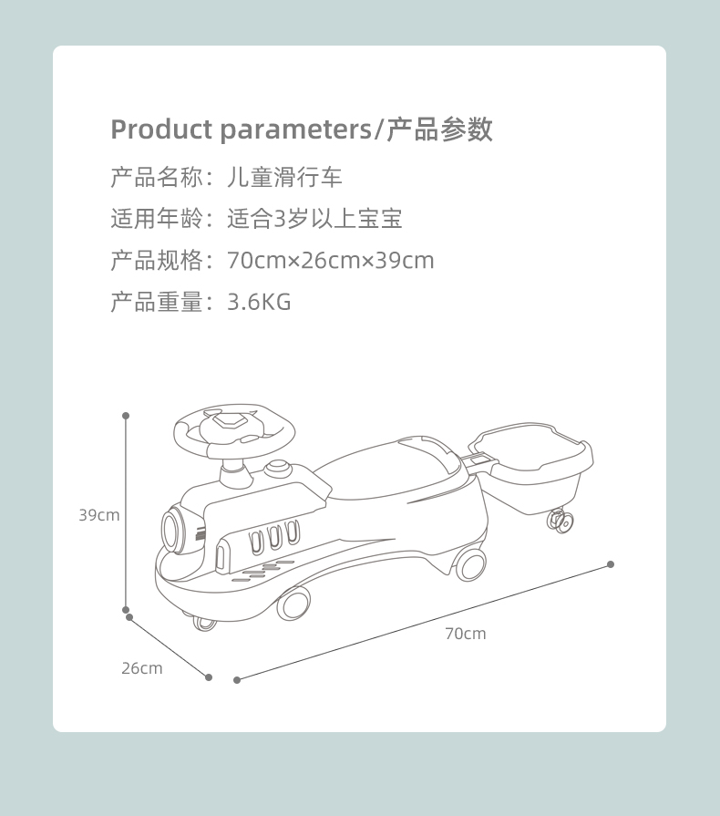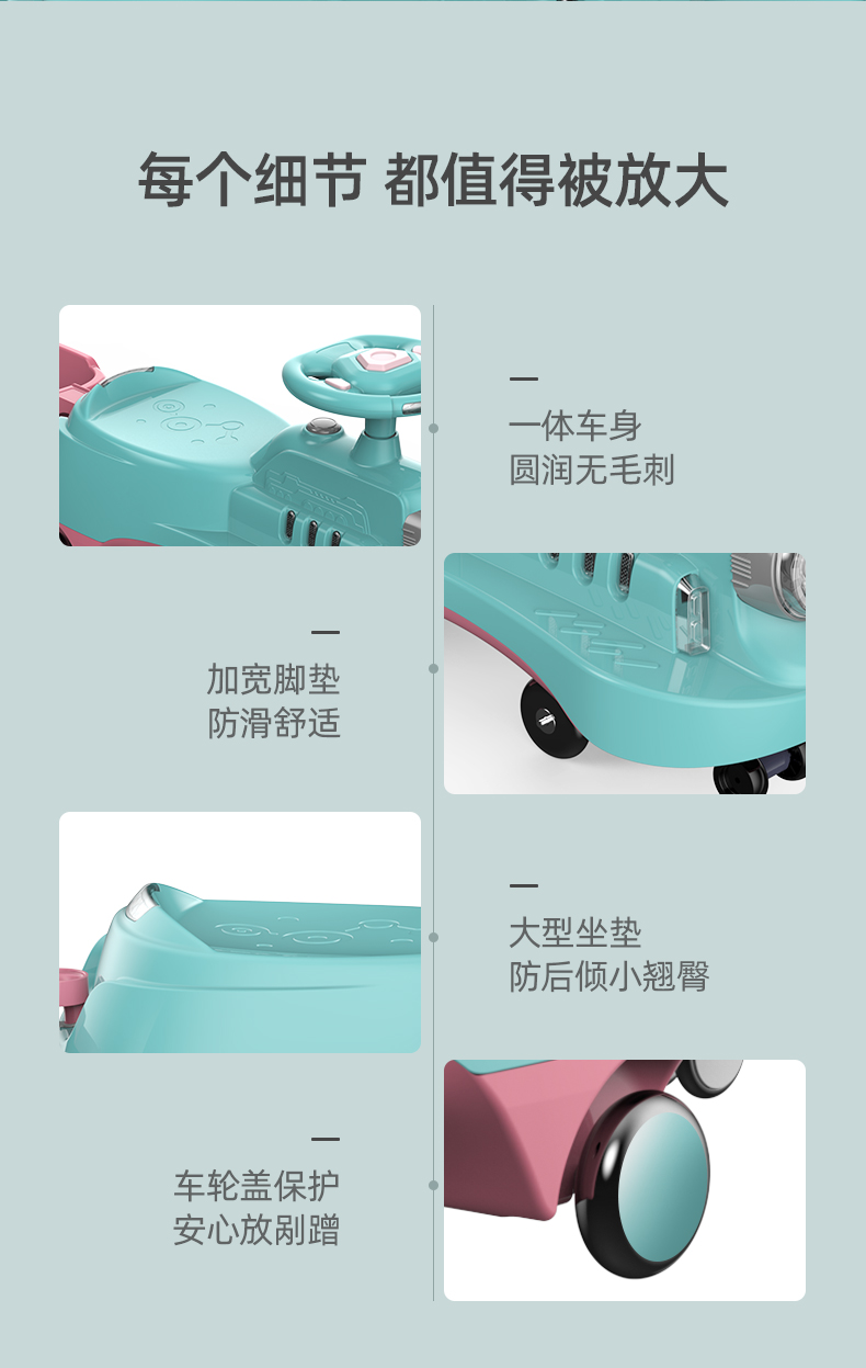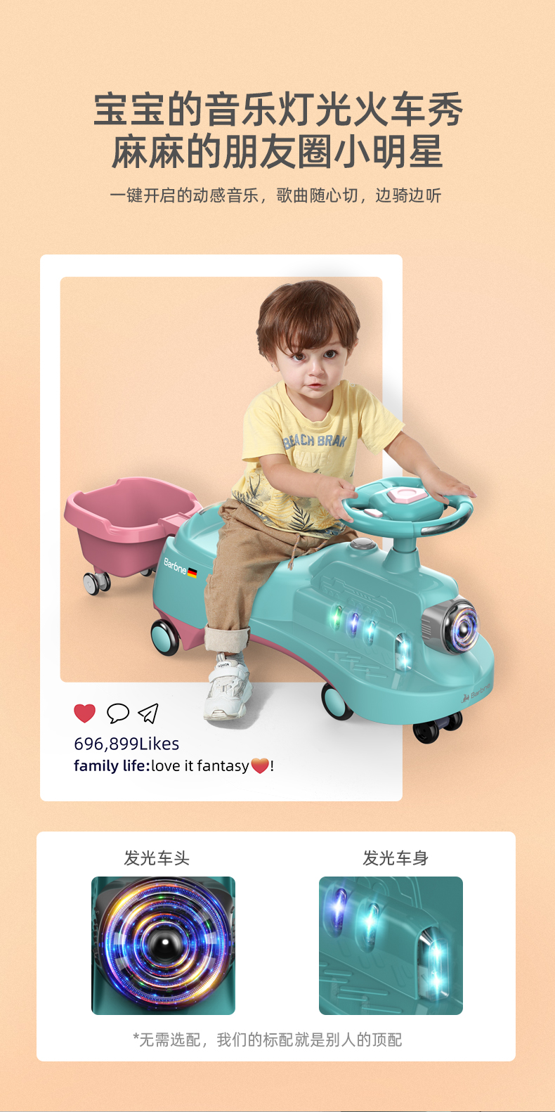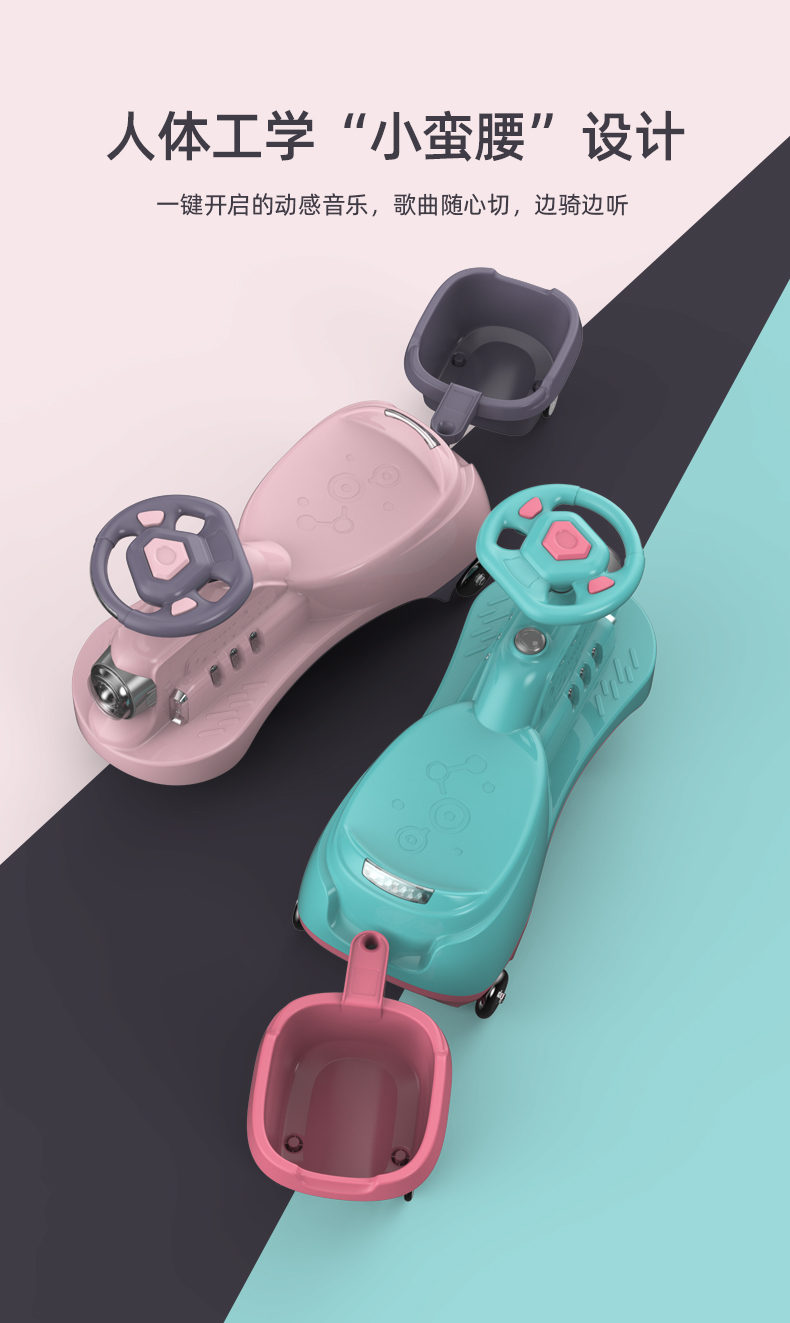 巴巴泥儿童扭扭车防侧翻万向轮带拖斗