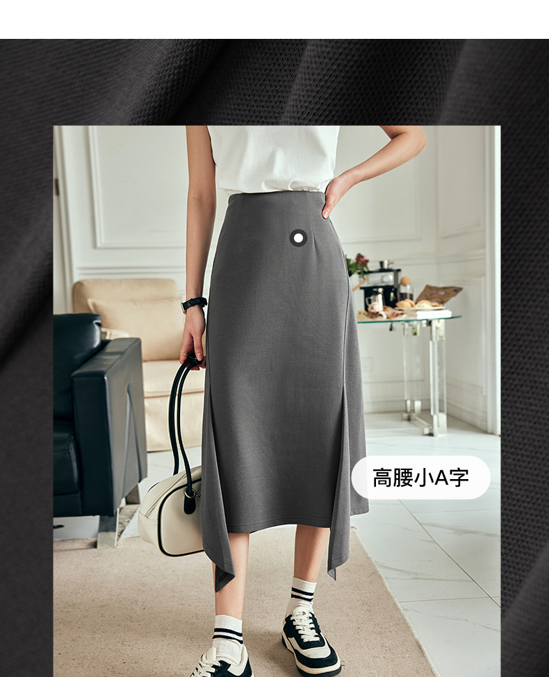 OLrain欧芮儿法式灰色半身裙女夏季2023年新款高腰不规则A字卫裙