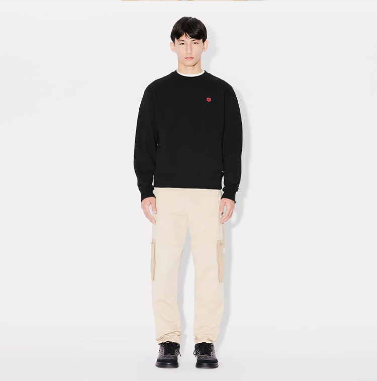 KENZO 高田贤三 男士小海棠花徽标刺绣棉质运动卫衣 黑色 FE65 SW223 4MF 99J