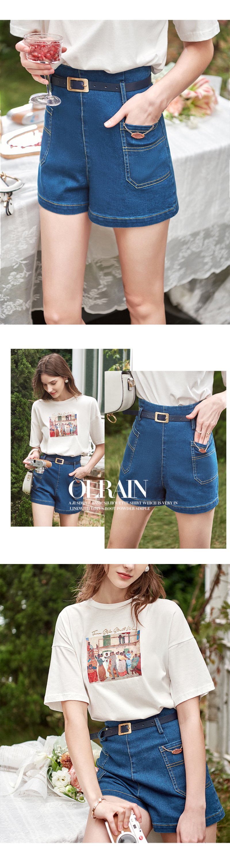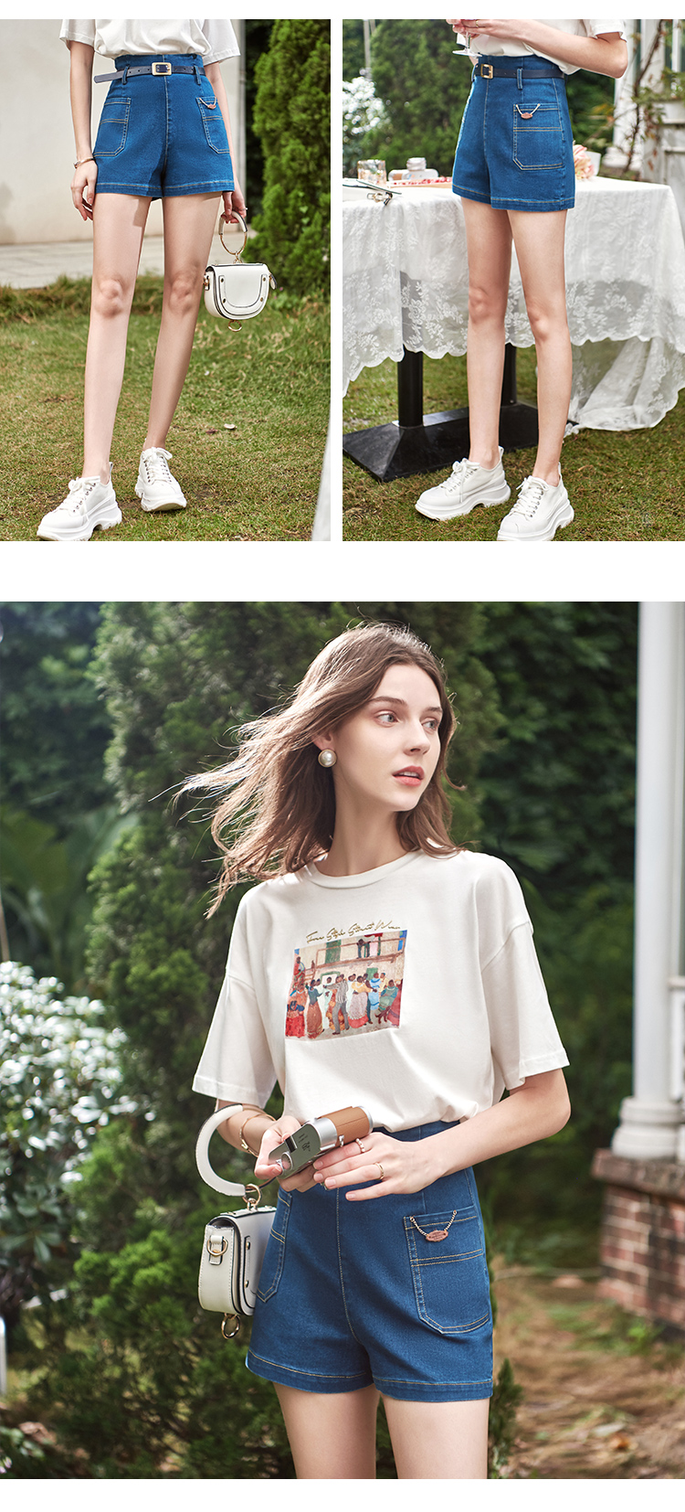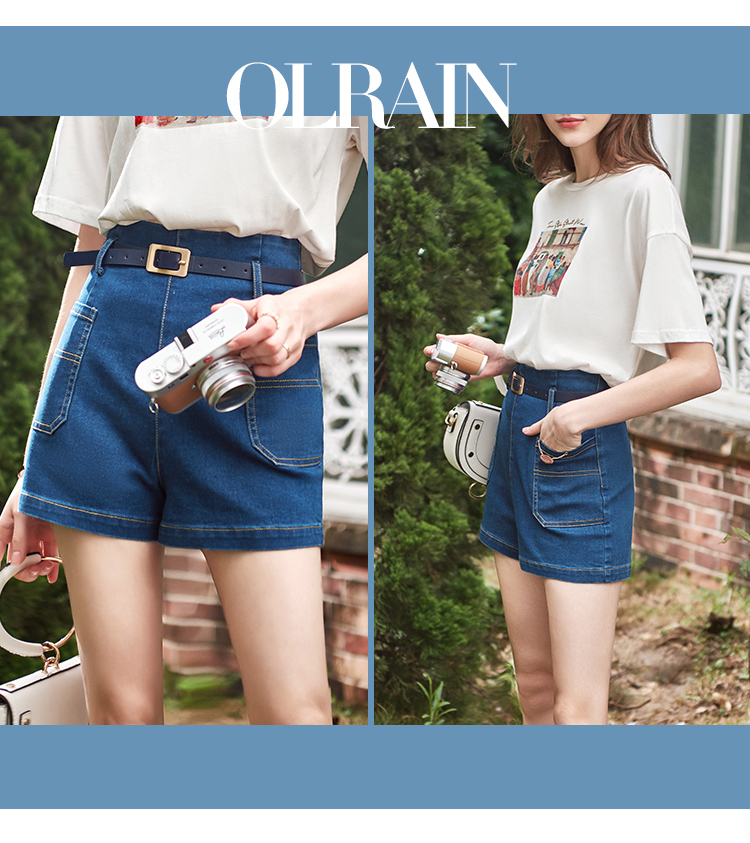 欧芮儿短款牛仔裤女2021春夏新款高腰显瘦时髦气质休闲百搭A字裤