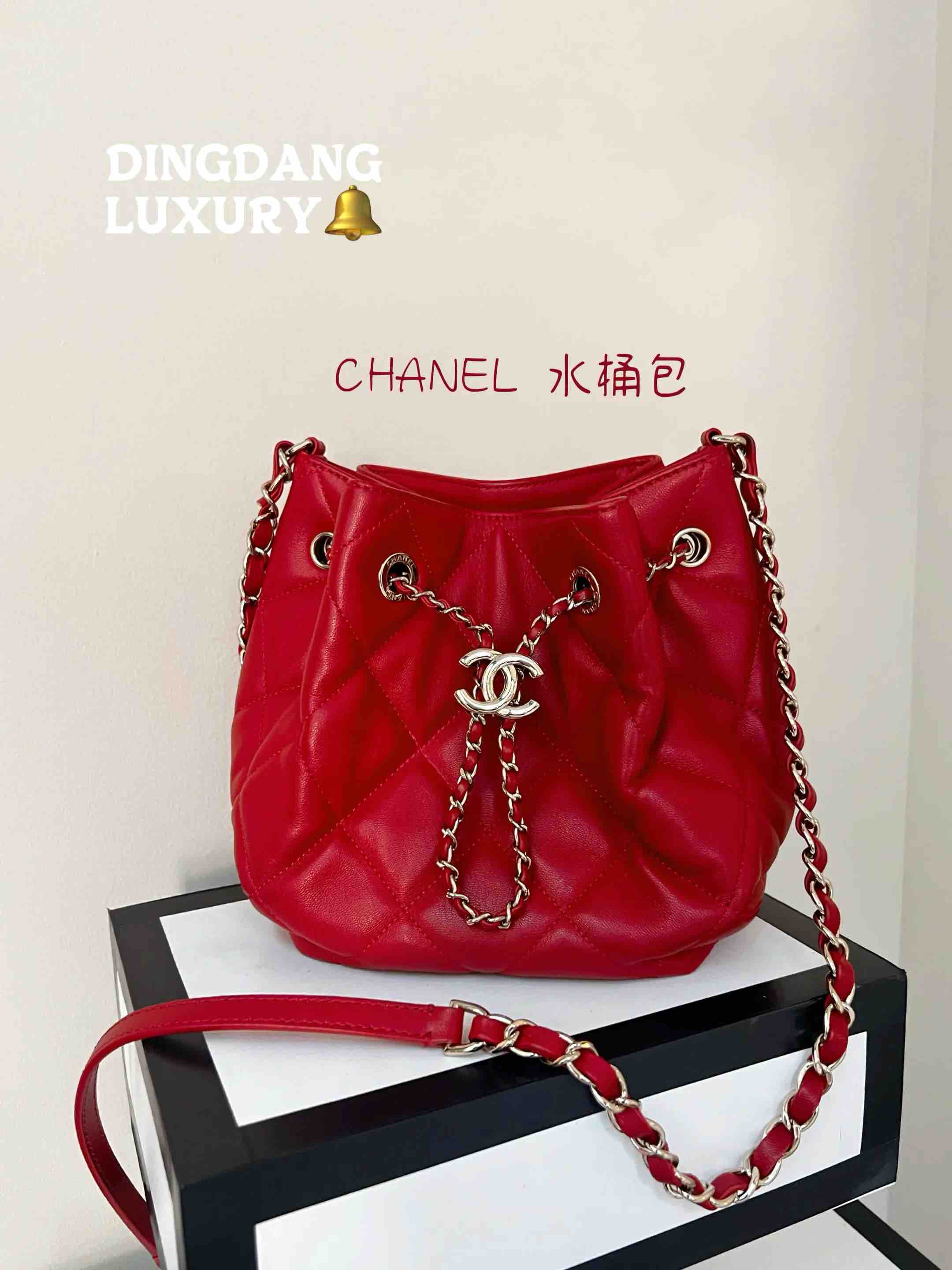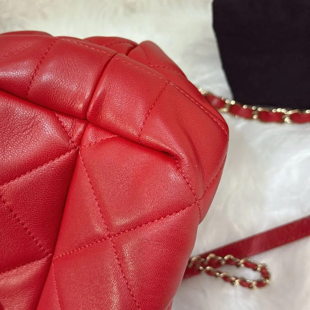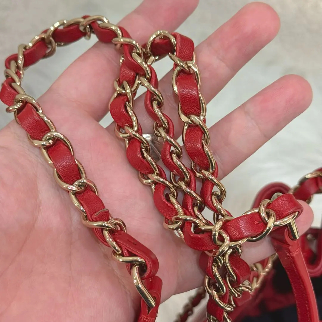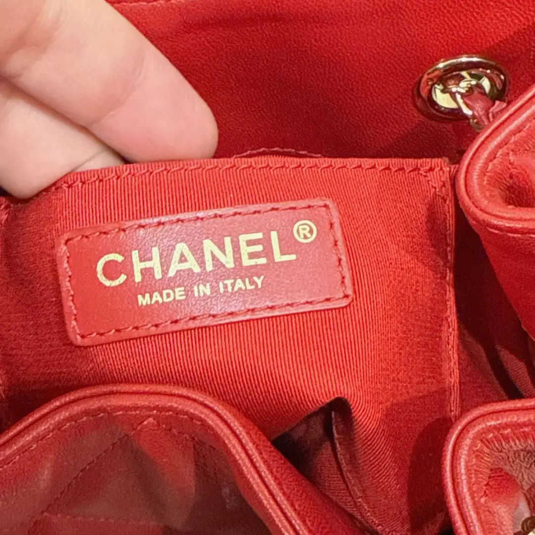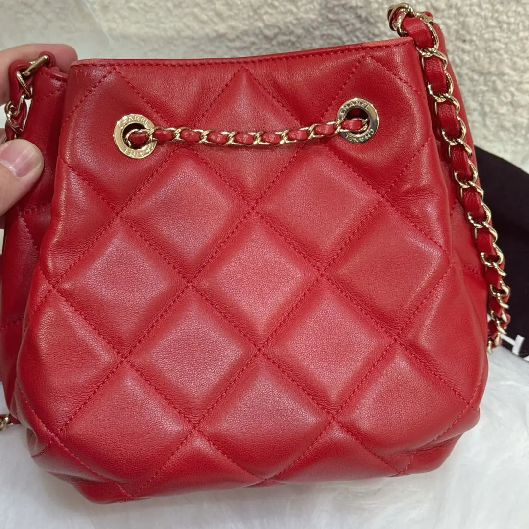 【商品详情】 正品二手 Chanel 红金 羊皮 抽绳 水桶包 95新 19×18 29开 配件:卡 防尘袋。包身正常使用感。红红火火过新年