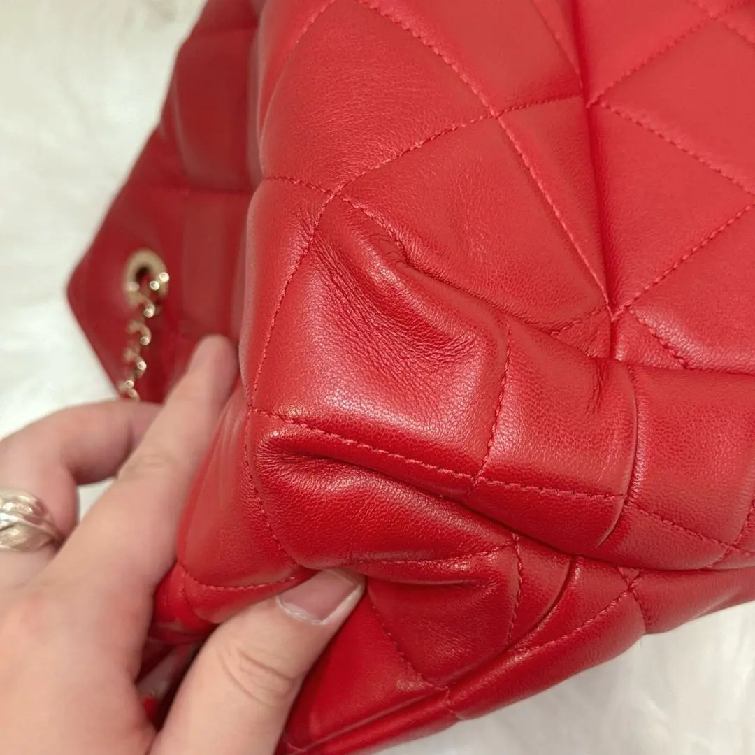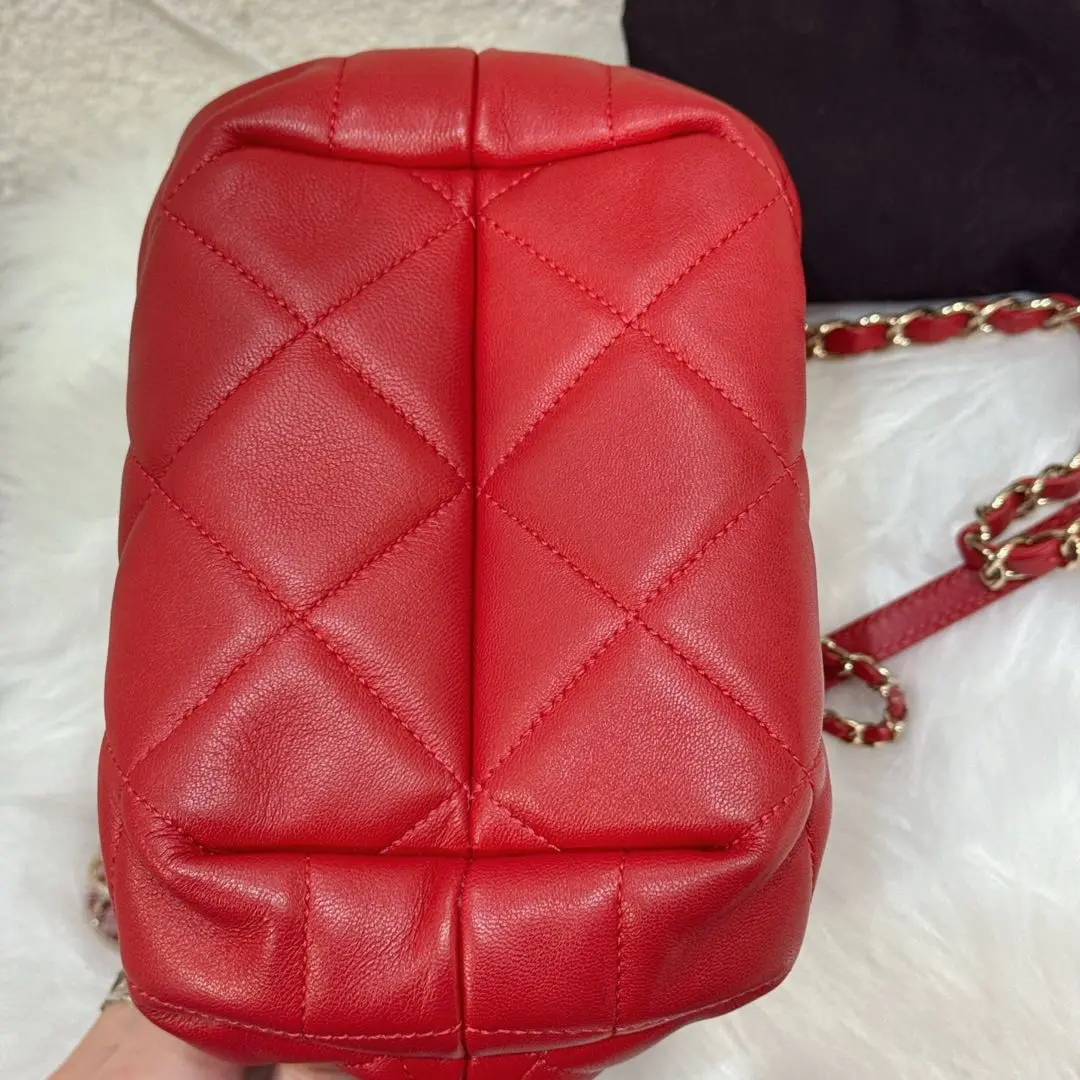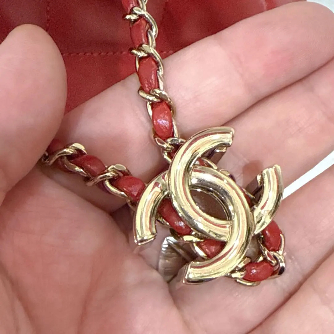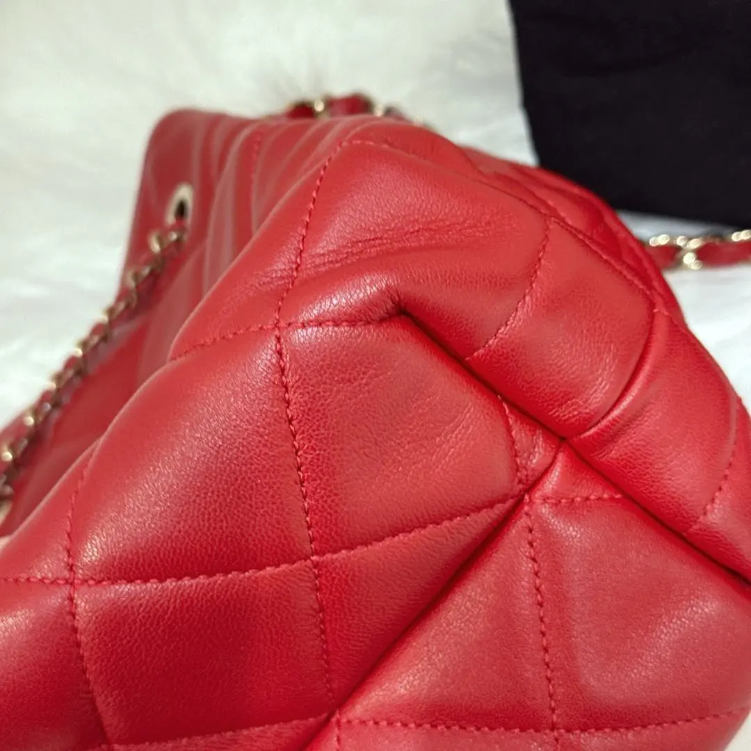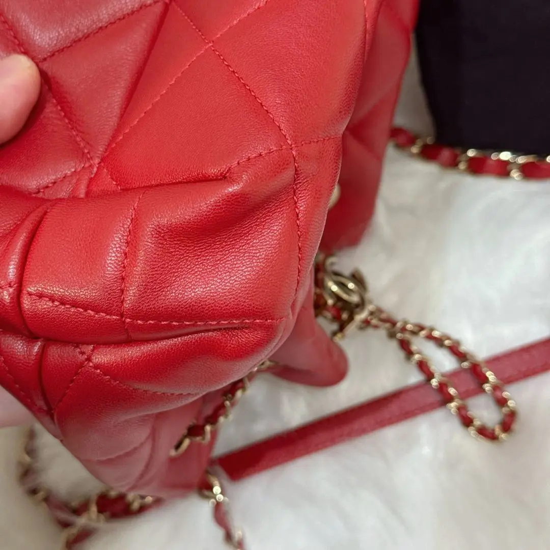 【商品详情】 正品二手 Chanel 红金 羊皮 抽绳 水桶包 95新 19×18 29开 配件:卡 防尘袋。包身正常使用感。红红火火过新年