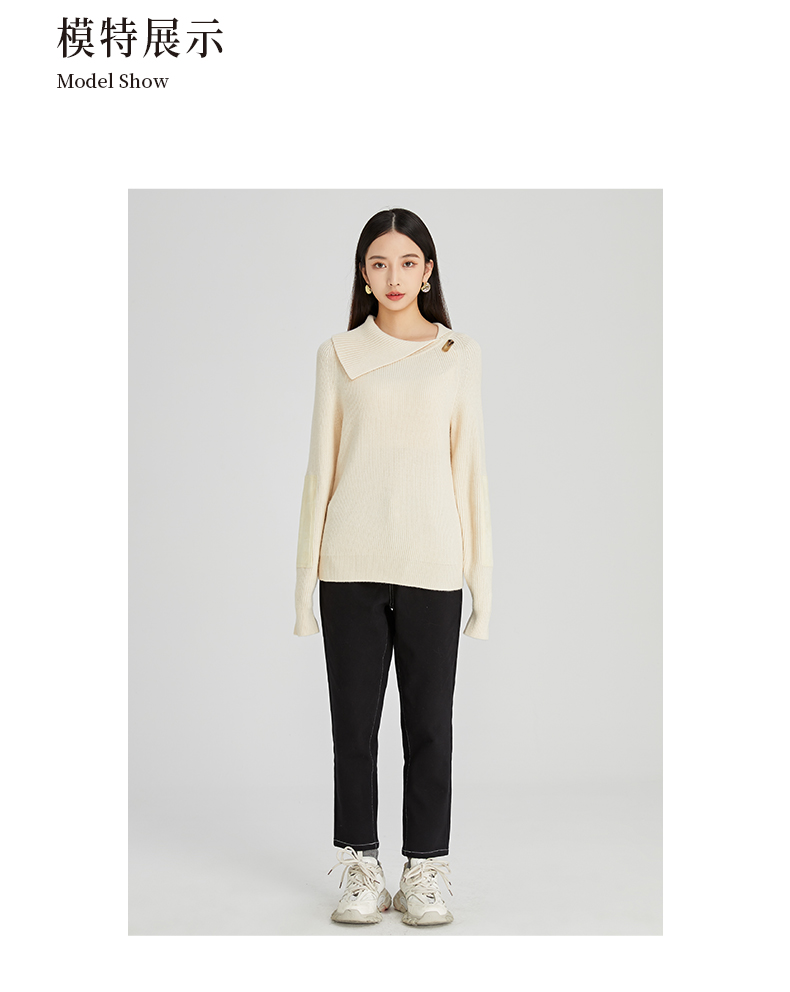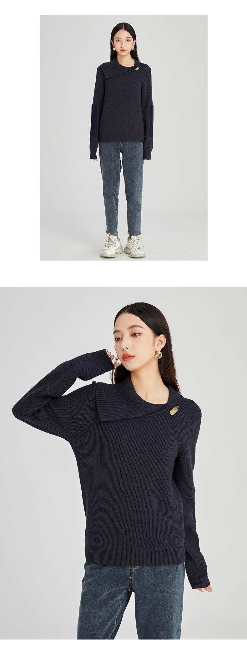 oldcolour2022年冬季新款通勤时尚气质风修身造型领毛织套头衫N44052406
