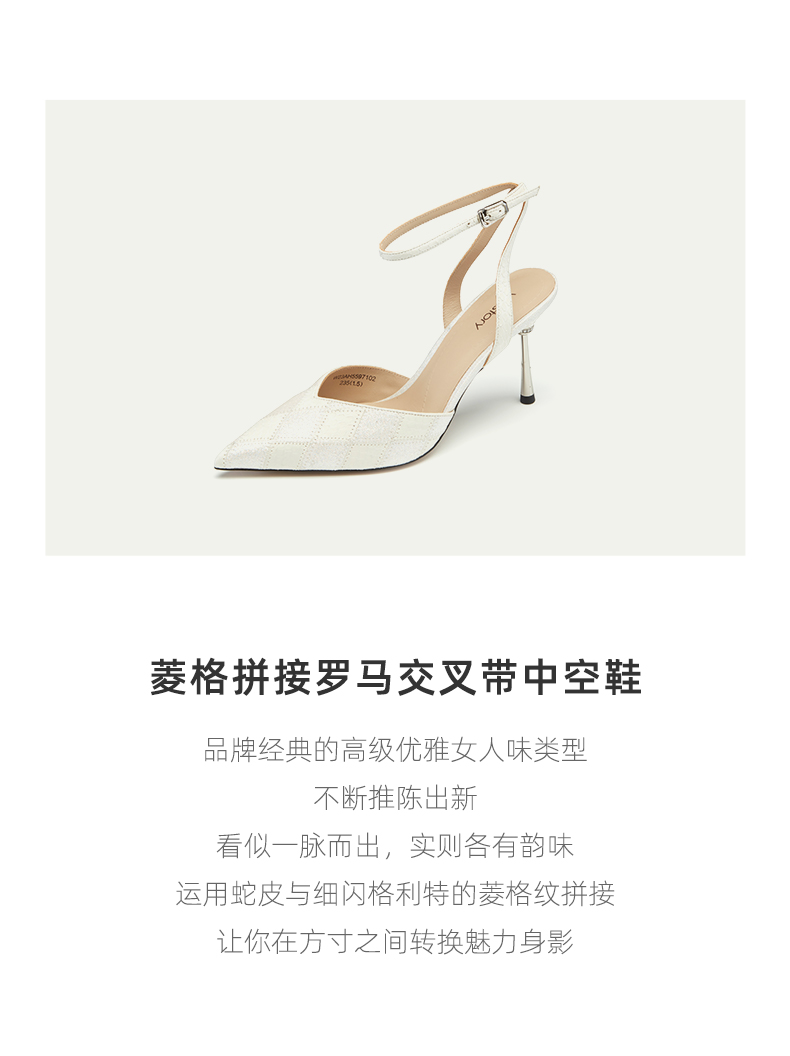 westory春夏新款晚风温柔细高跟尖头镂空拼接优雅气质女鞋S24AH57201