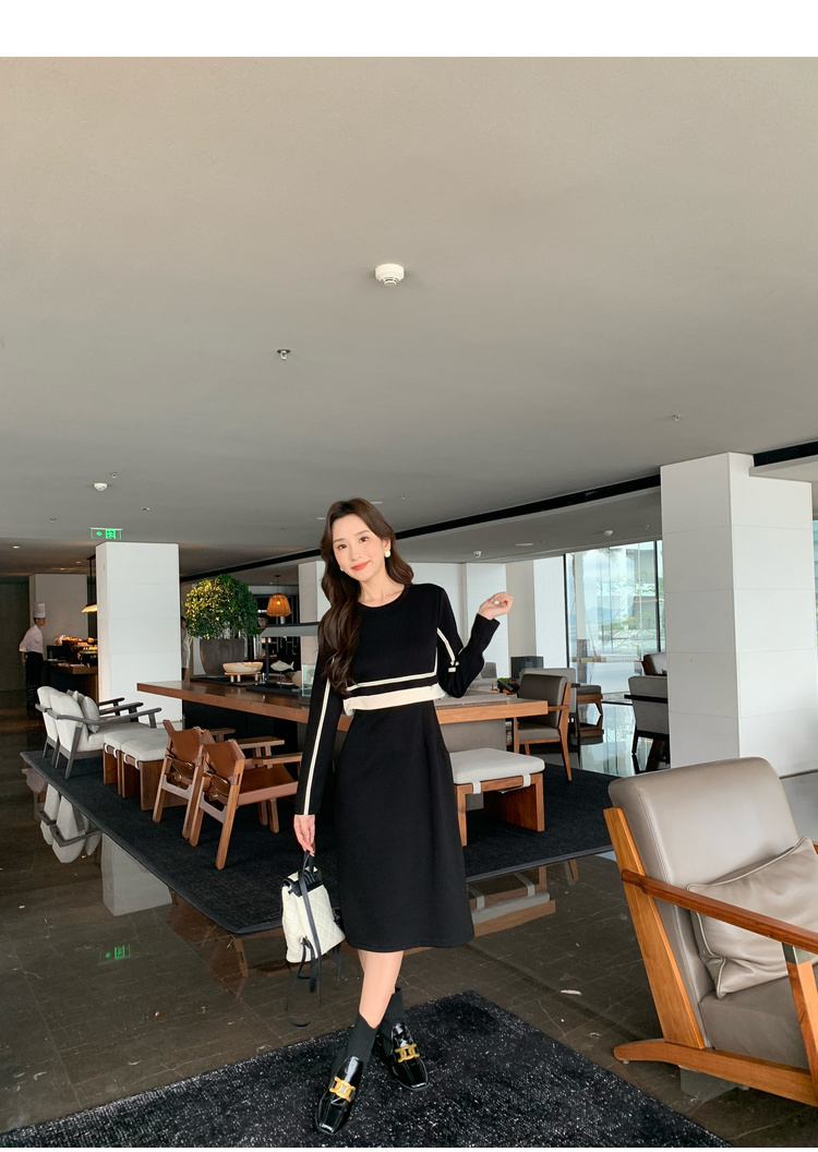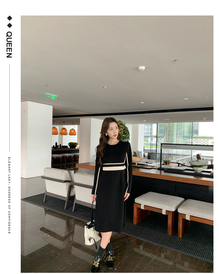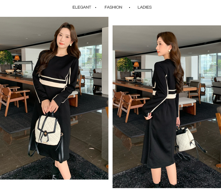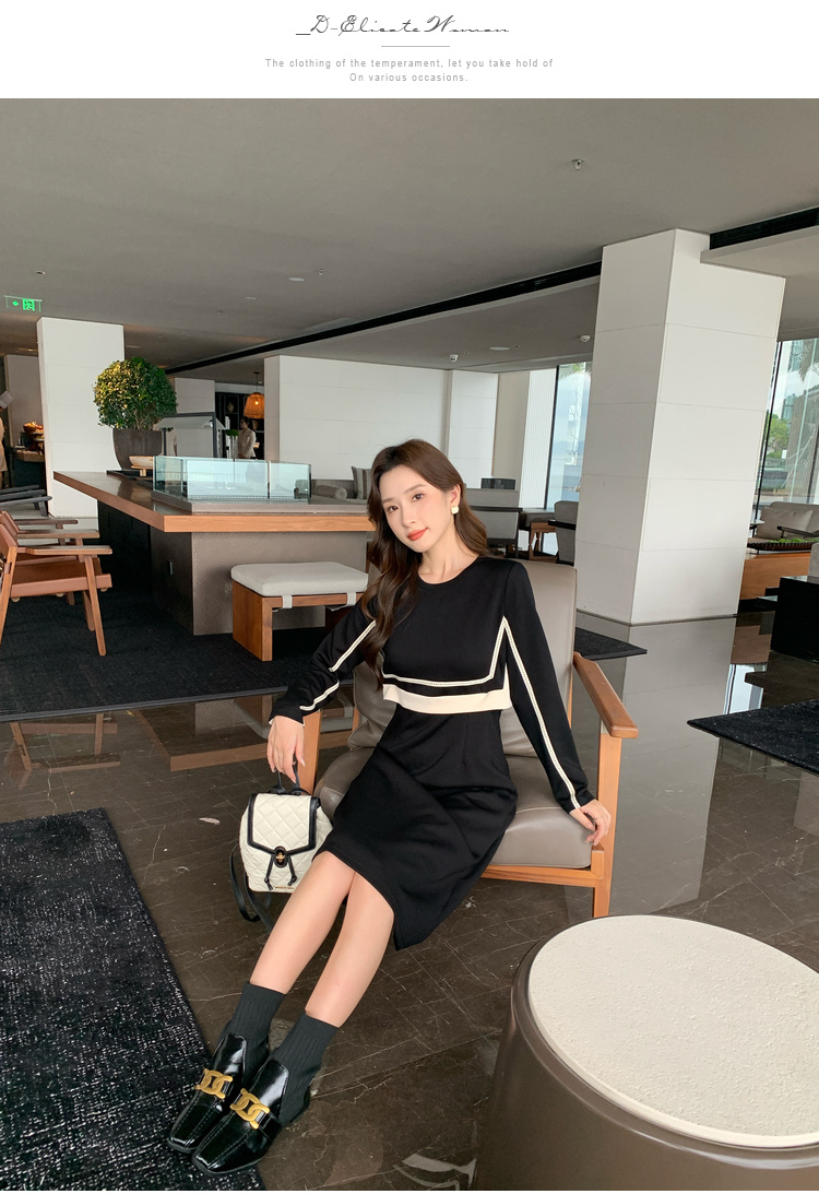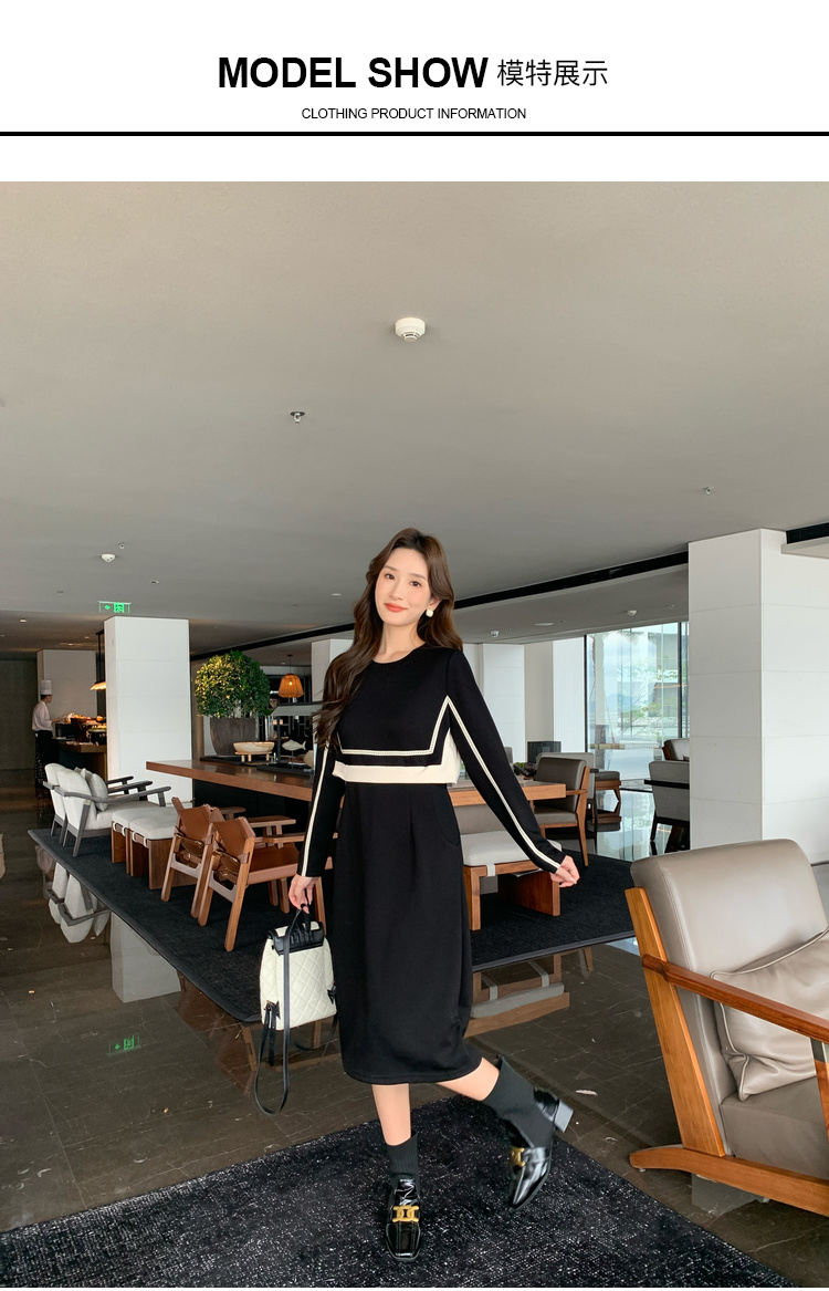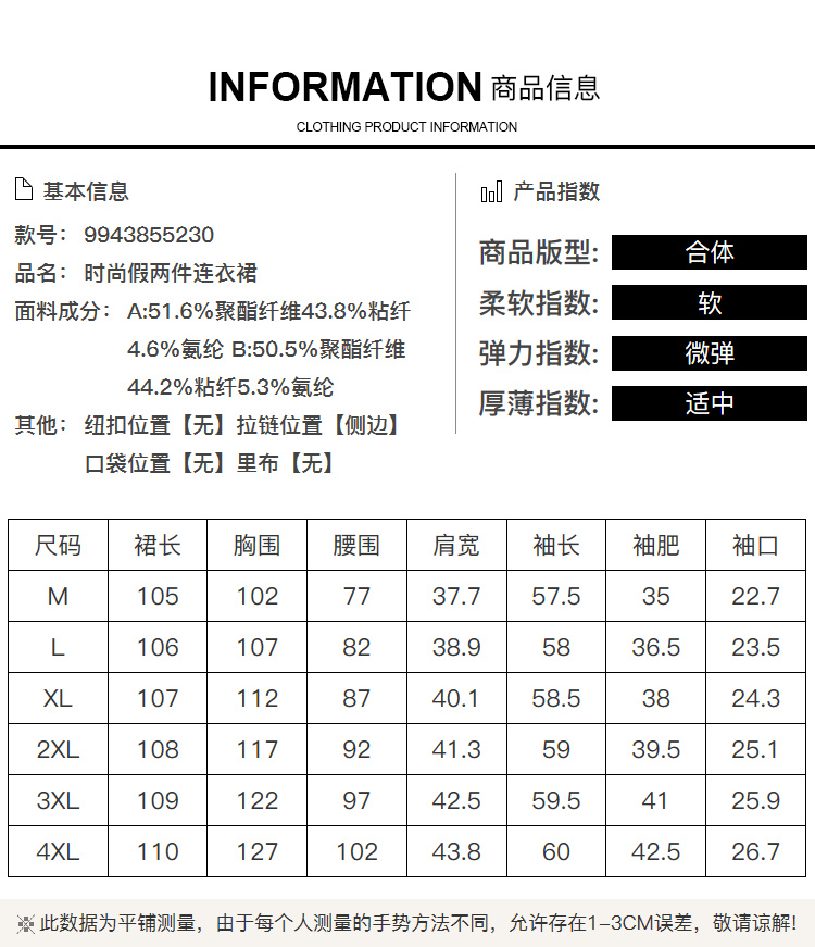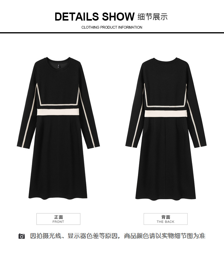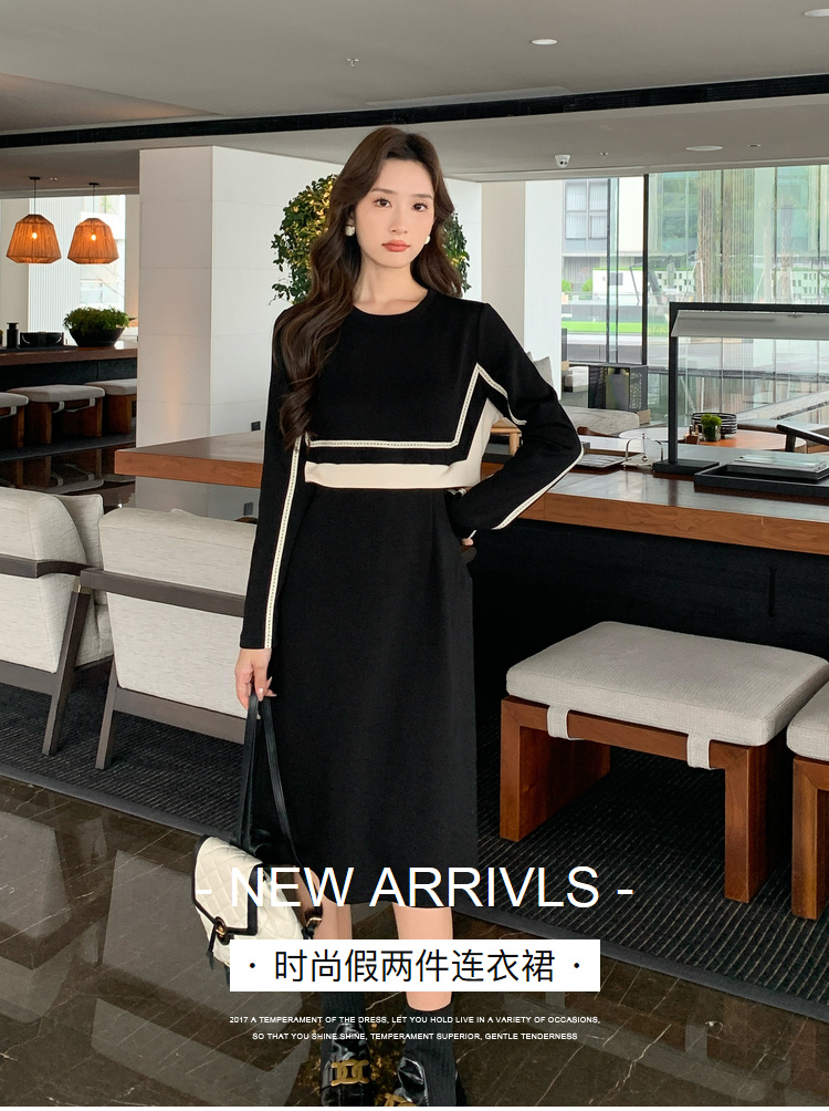 奢姿大码女装2024秋季假两件拼接打底连衣裙胖妹妹时尚简约一步裙9943855230