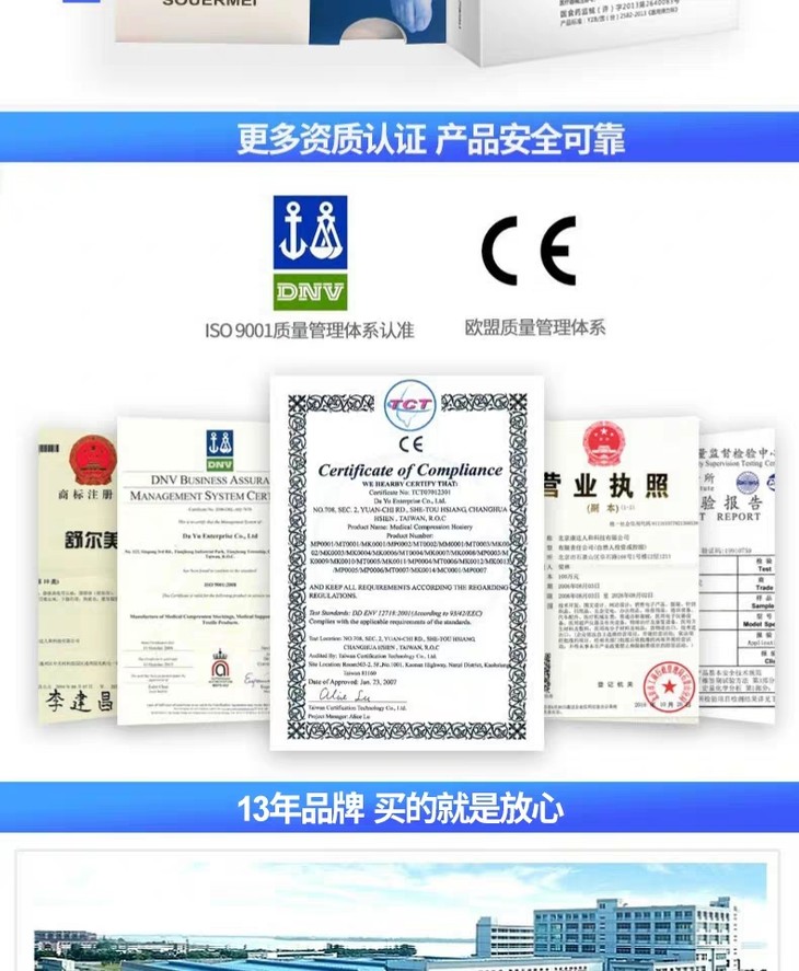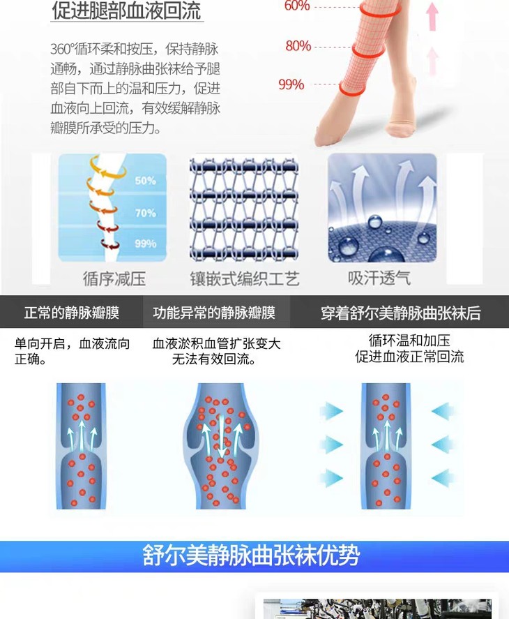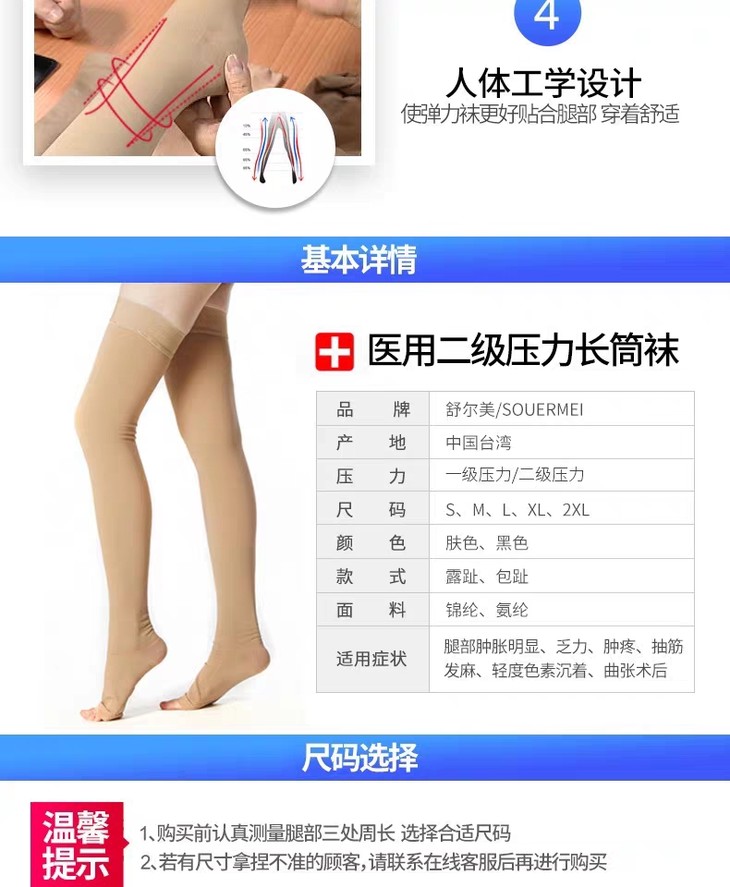 舒尔美医用一级压力长筒预防静脉曲张血栓袜弹力袜大腿袜男女士预防型