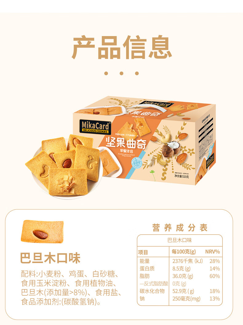 【分仓直发包邮】MiKACARD 坚果曲奇520g(巴旦木口味、腰果口味、椰片口味)