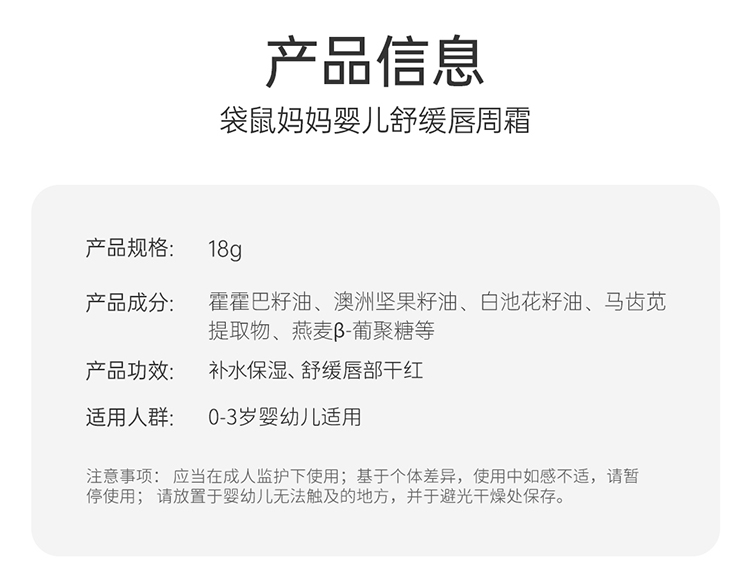 【唇周霜】呵护宝宝唇周 舒缓唇部干红 婴儿舒缓唇周霜18g