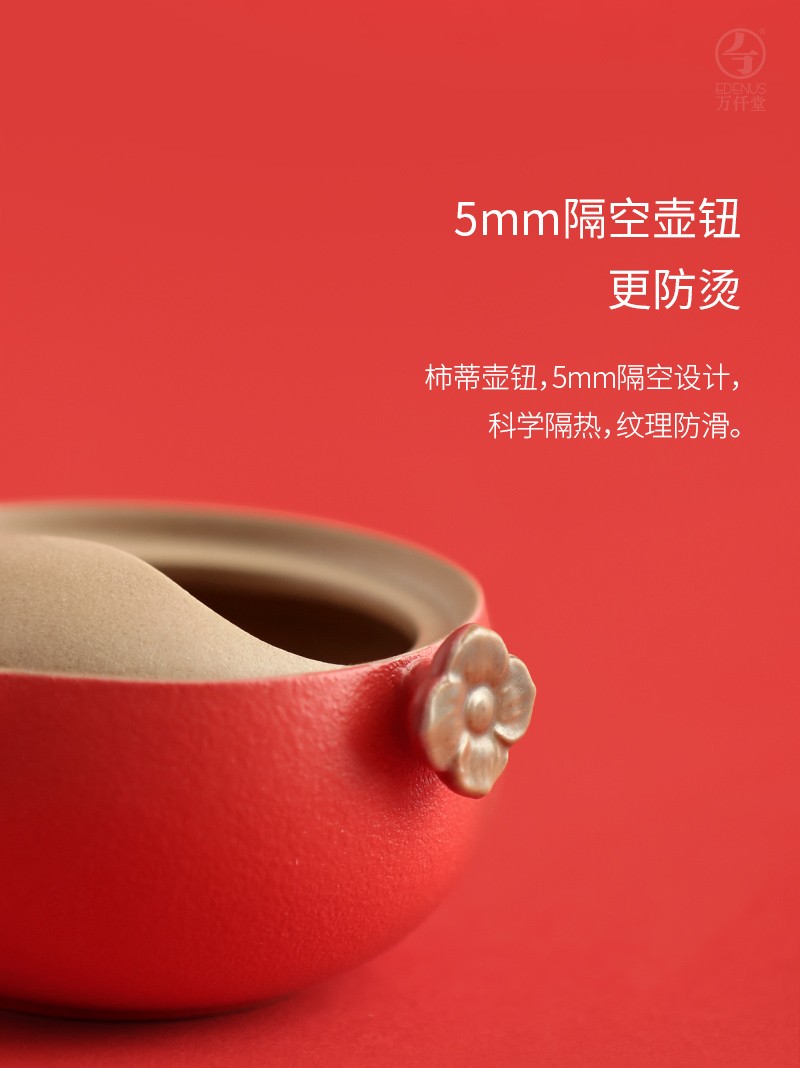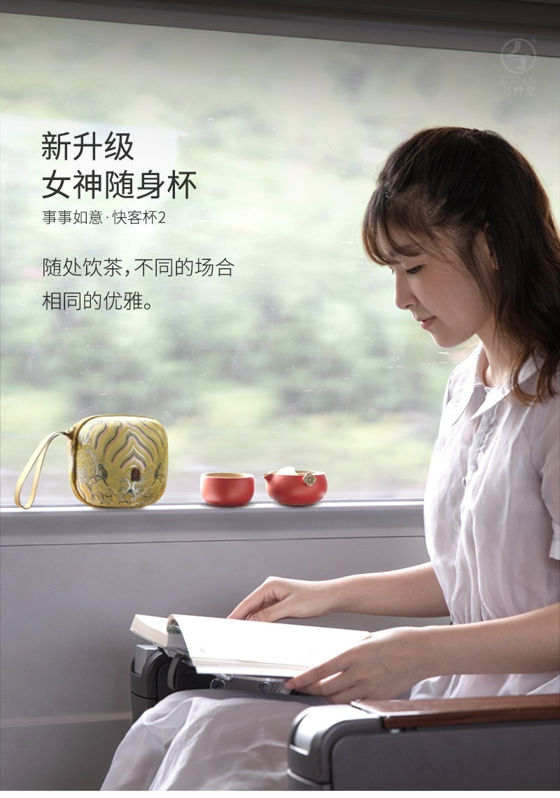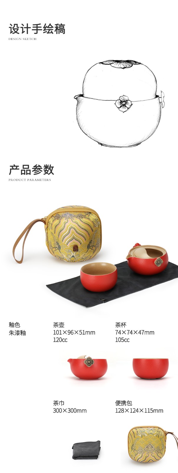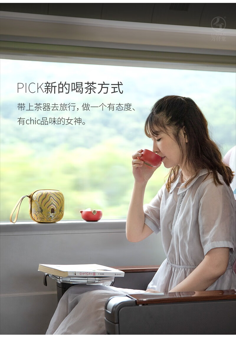 万仟堂(Edenus)旅行茶具 高档快客杯陶瓷套装一壶一杯女性便携包送礼 事事如意A 朱漆釉(升级版)