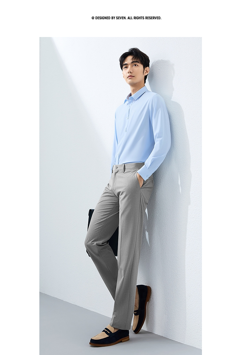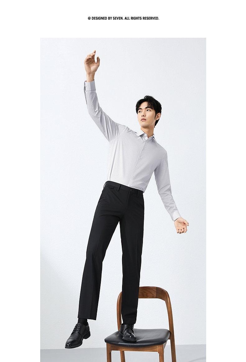 【谢震业同款】柒牌犀牛褶西裤男2025春季新款商务休闲修身直筒长裤子128H72440