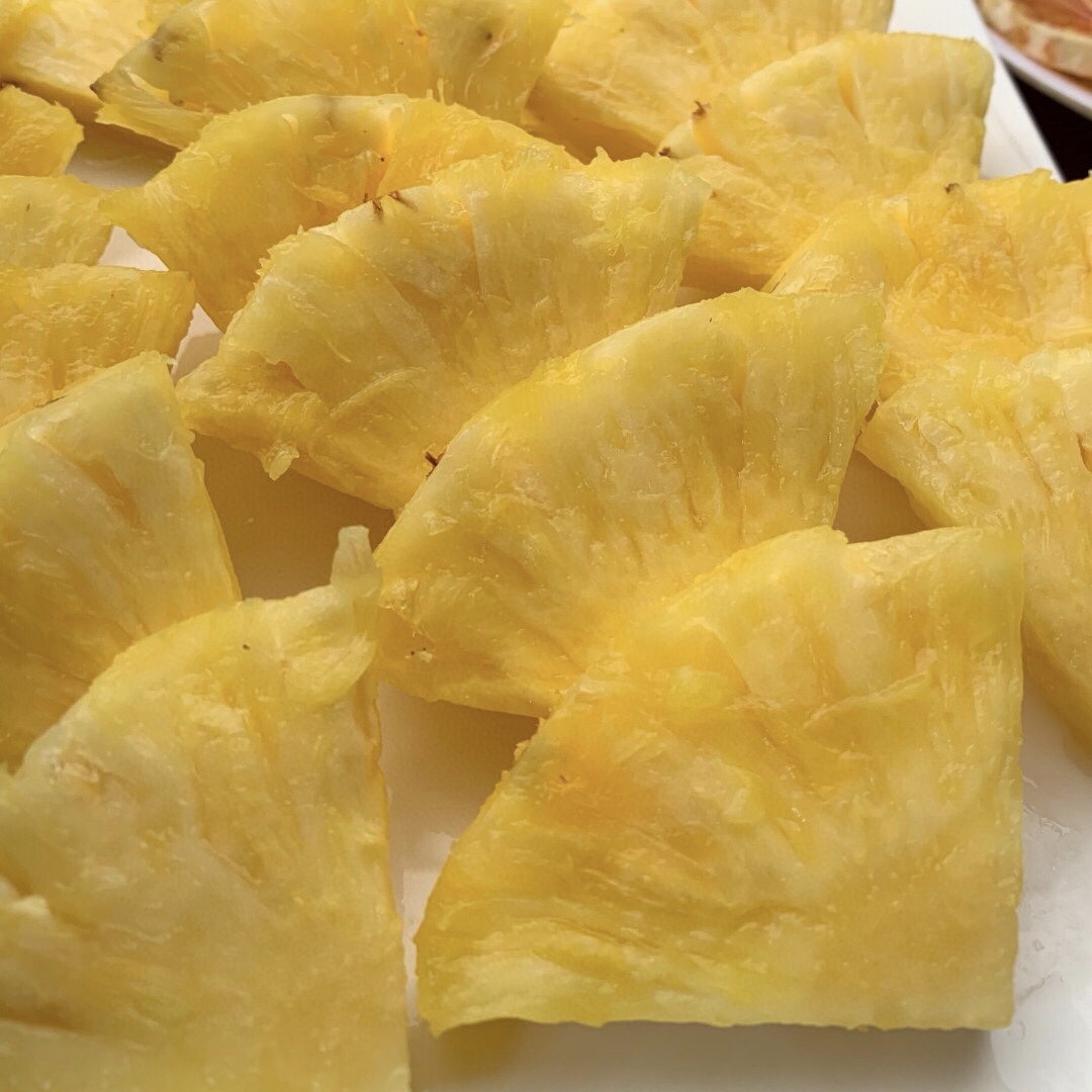 所以,吃金钻凤梨就不需要泡盐水这一步了