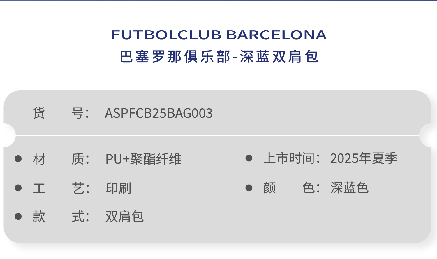 【官方正版】巴塞罗那俱乐部|巴萨深蓝双肩包PU材质大容量多口袋