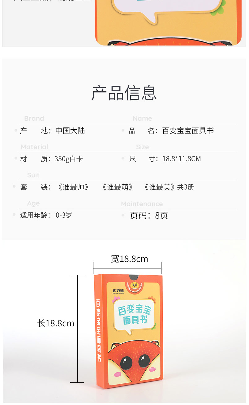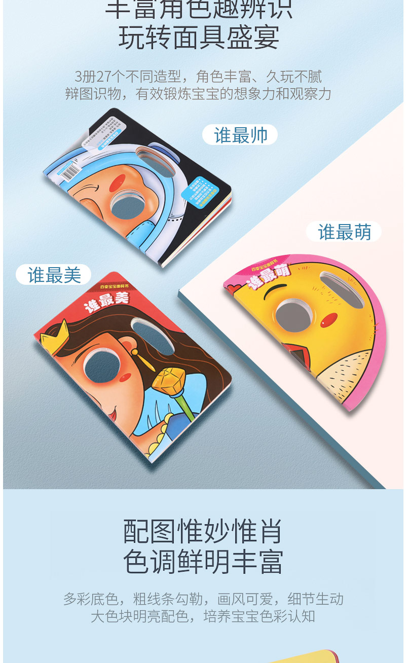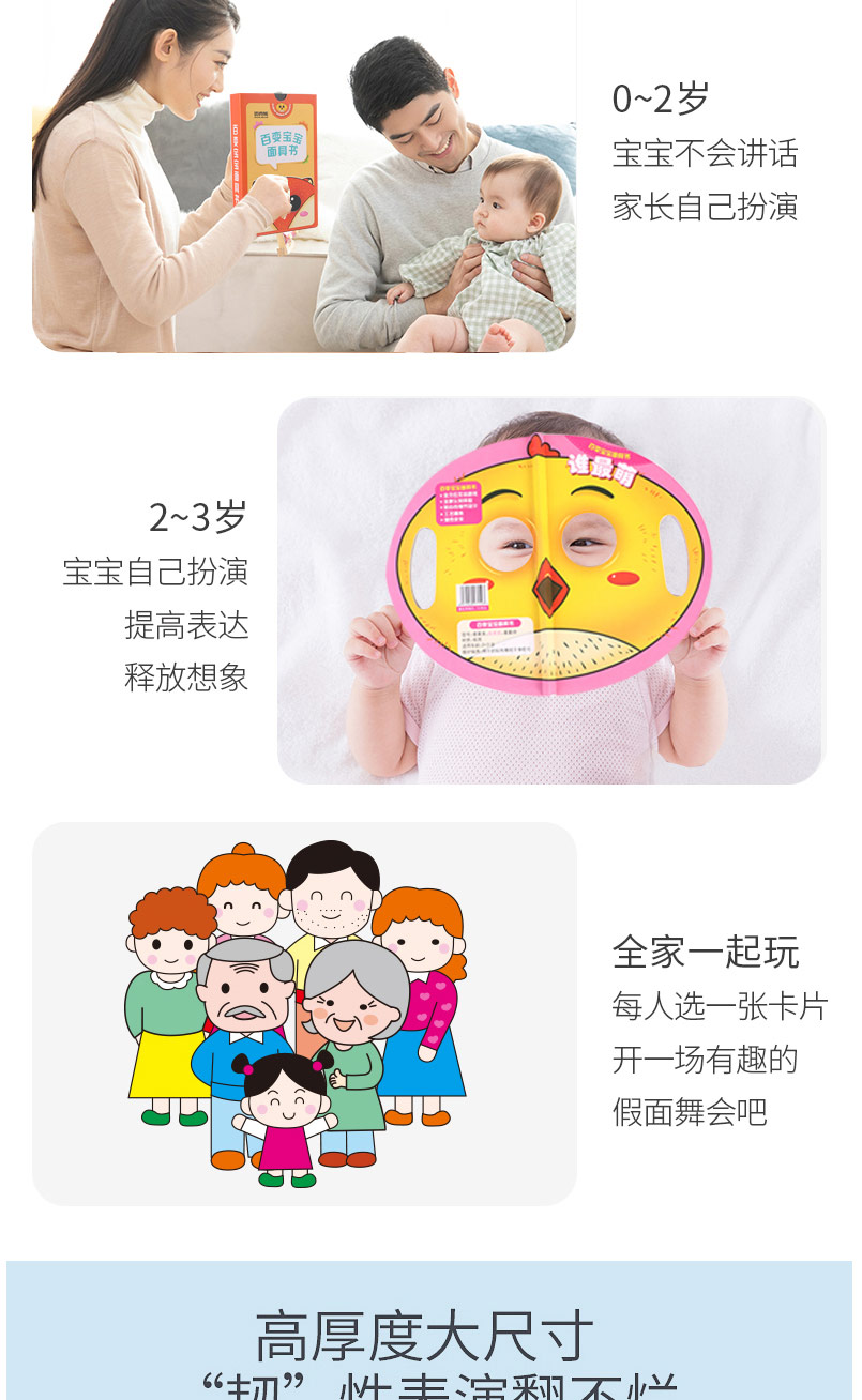 百变宝宝面具书全3册 奇妙趣洞洞书 幼儿启蒙认知翻翻早教书儿童绘本书籍0-1-2-3周岁一两岁宝宝撕不烂益智卡片婴儿奇妙触摸3d立体