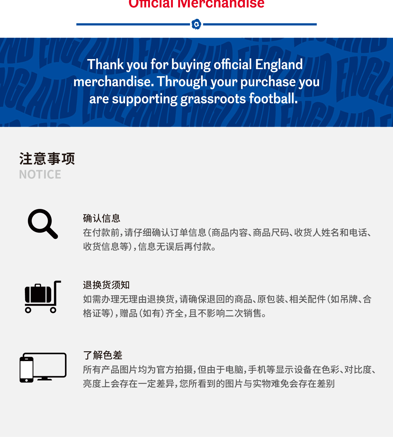 【官方正版】英格兰国家队 | 秋冬字母套头卫衣米白色圆领卫衣
