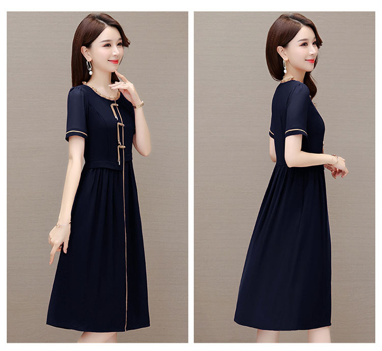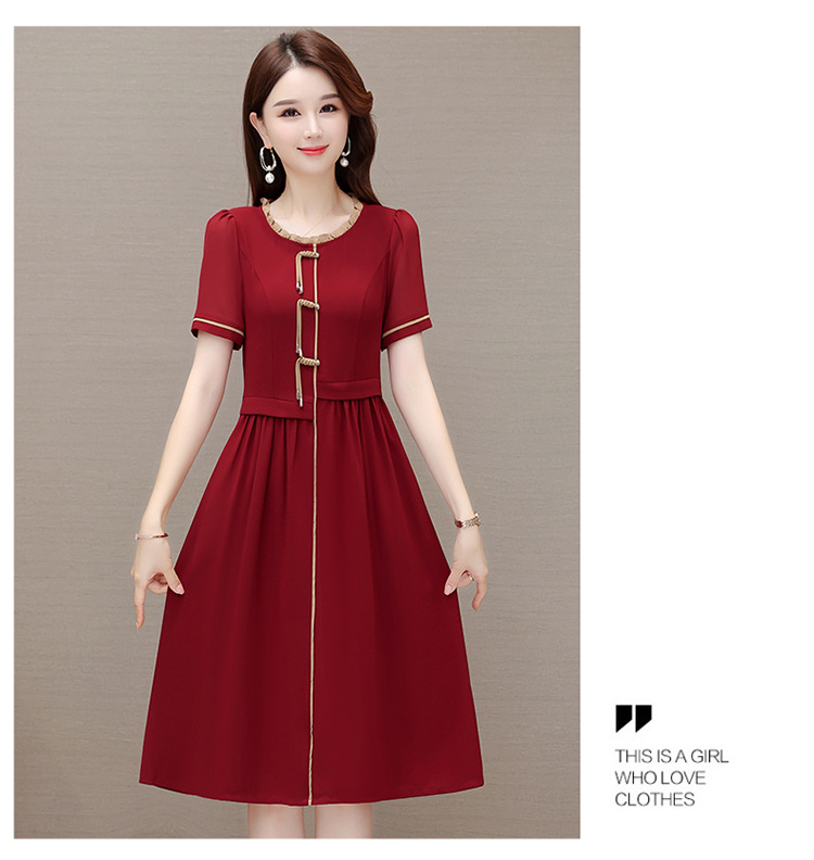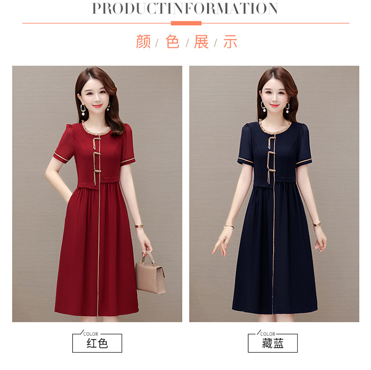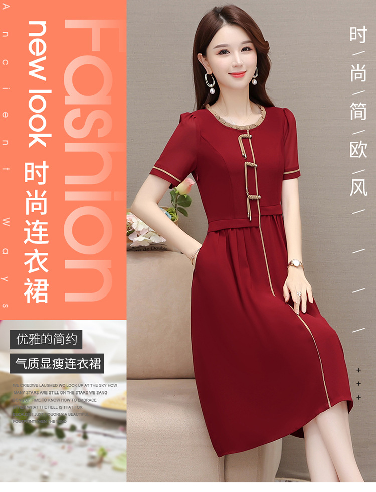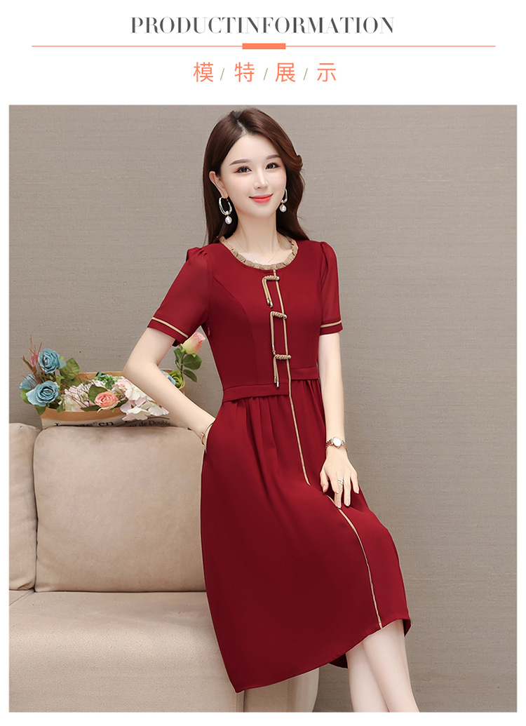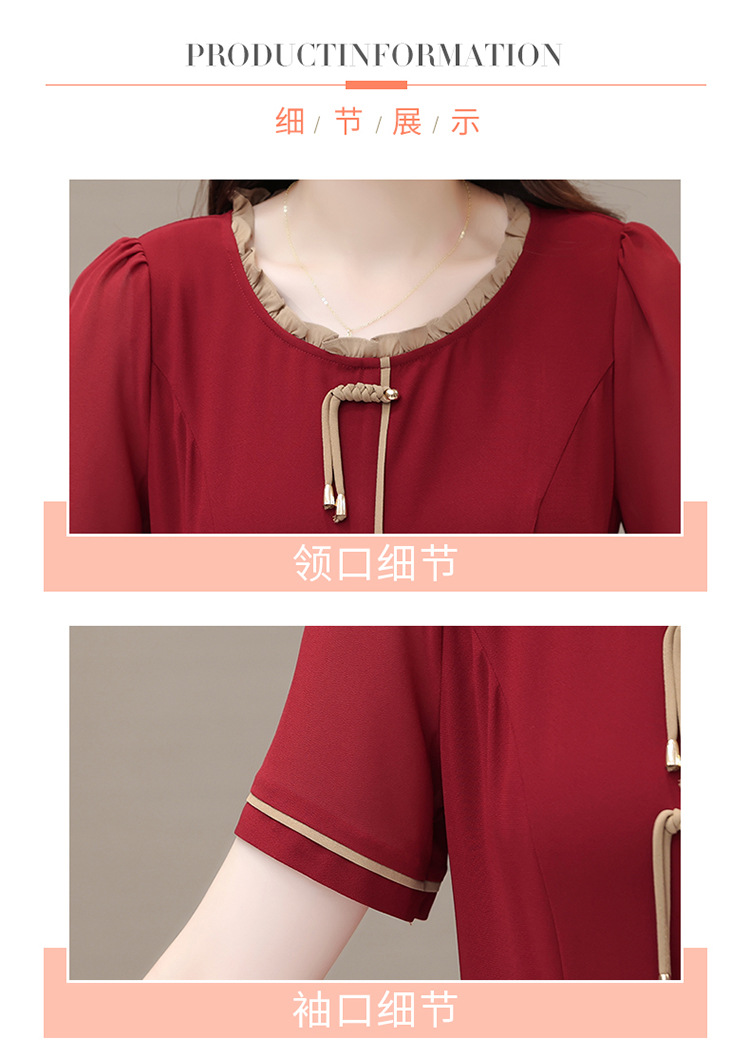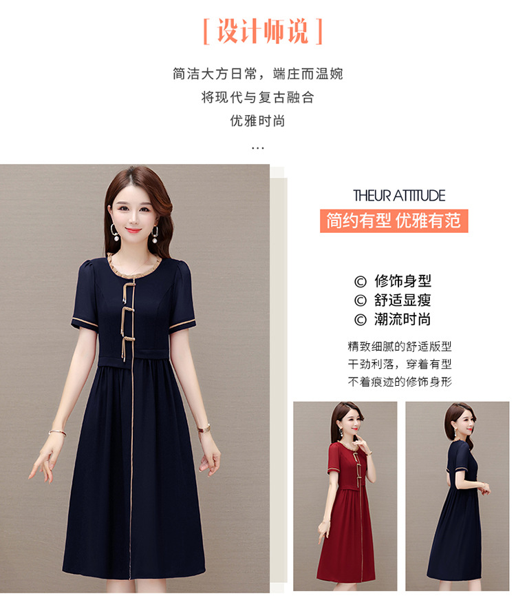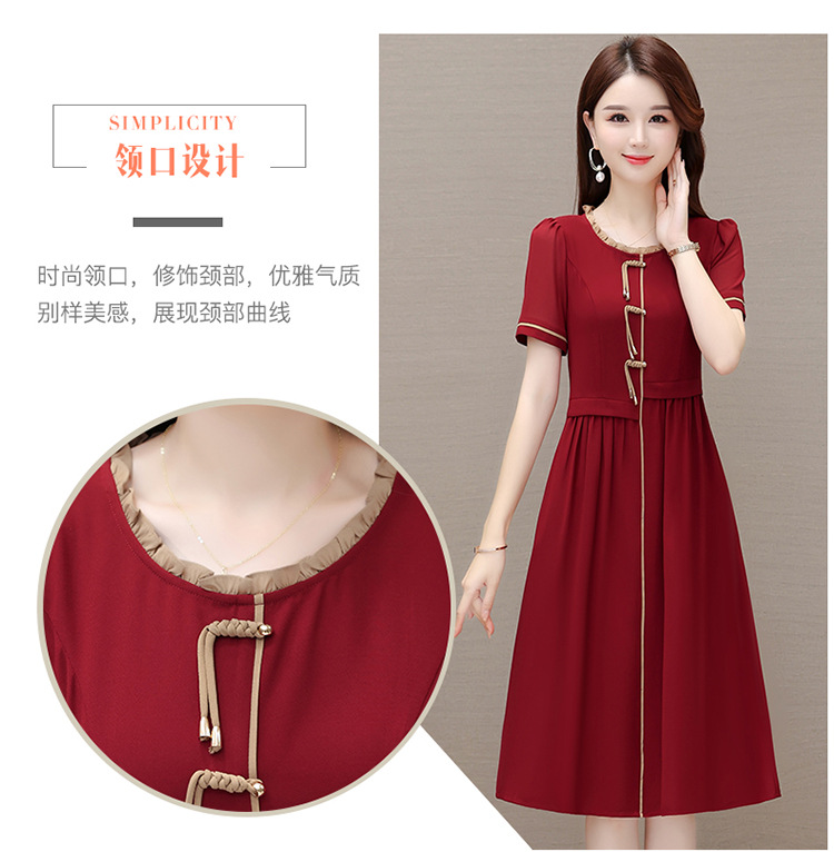 优雅修身,复古盘扣花边短袖连衣裙QYM-HSY-E23A016-Y