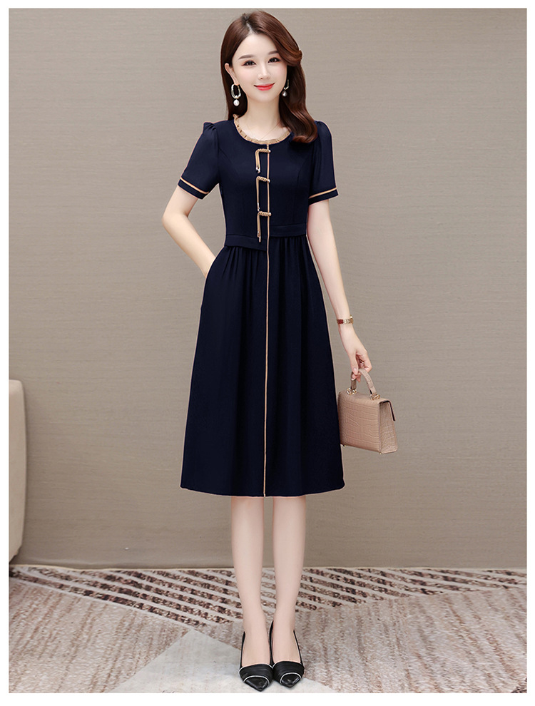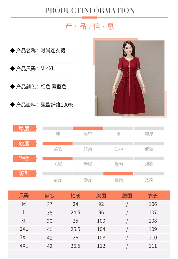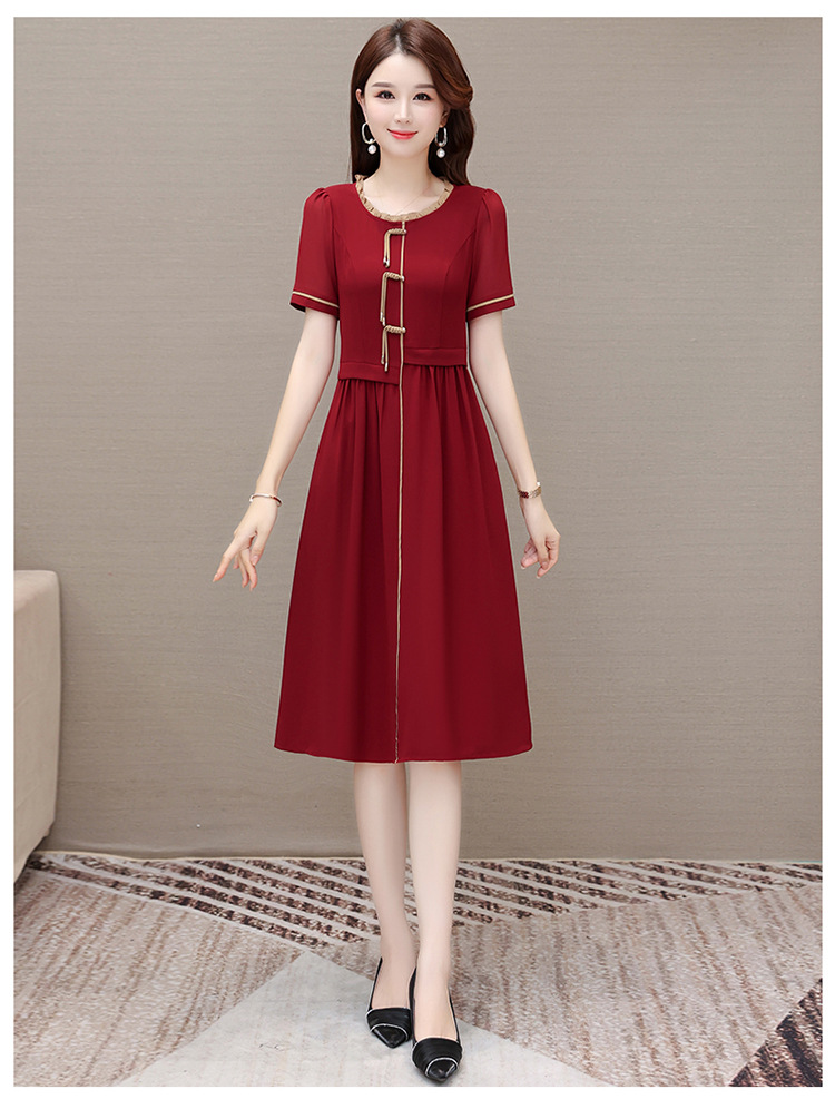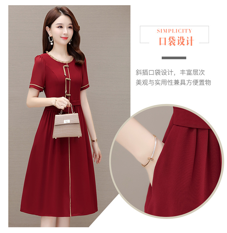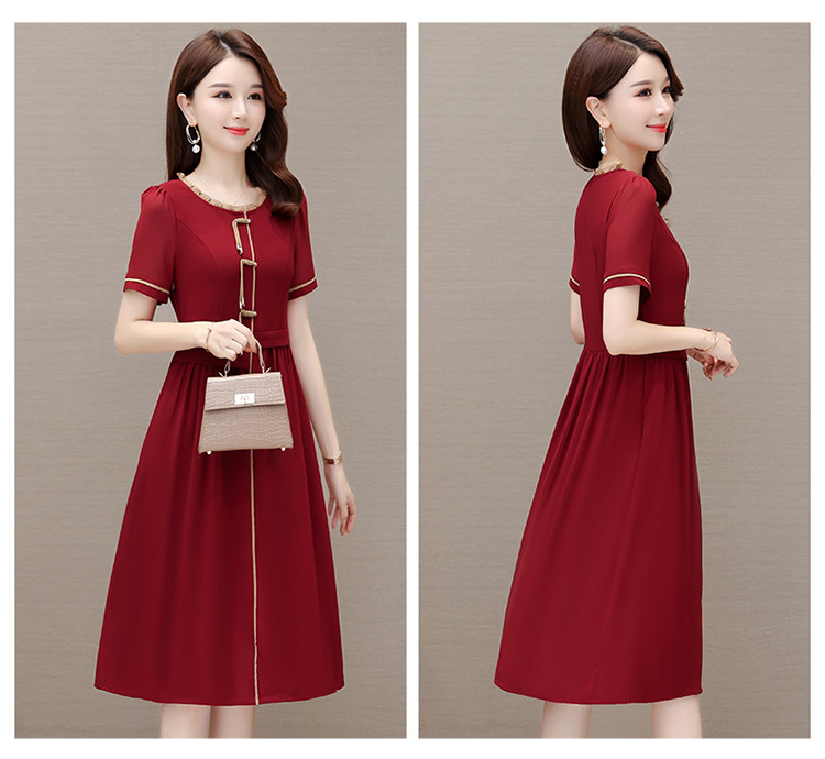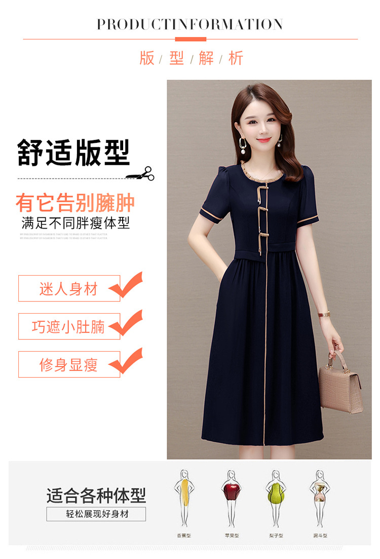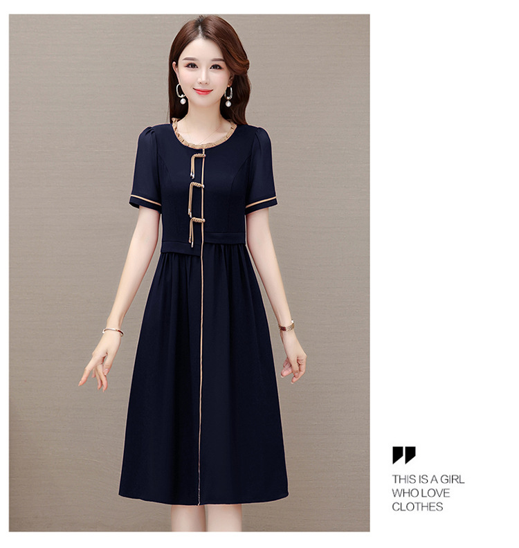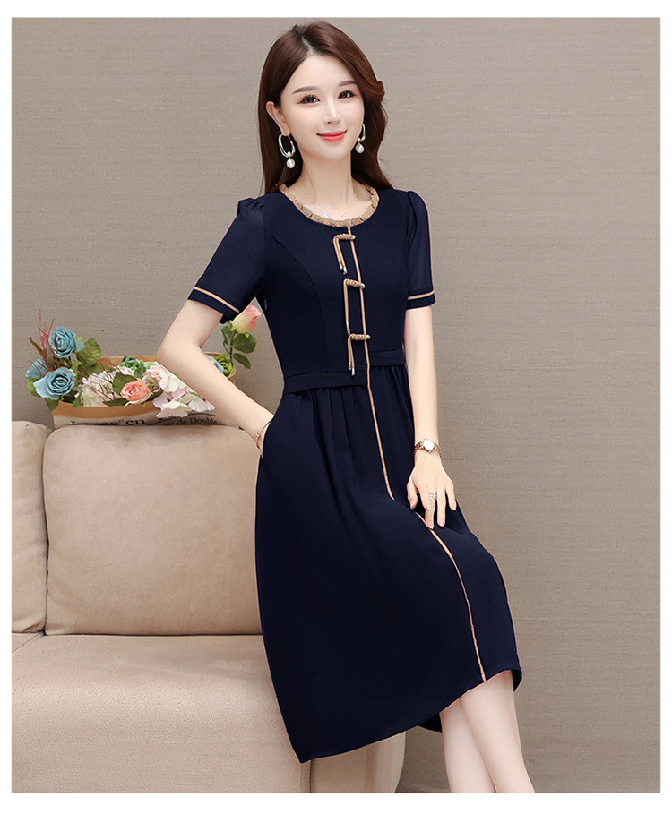 优雅修身,复古盘扣花边短袖连衣裙QYM-HSY-E23A016-Y