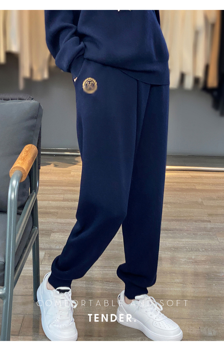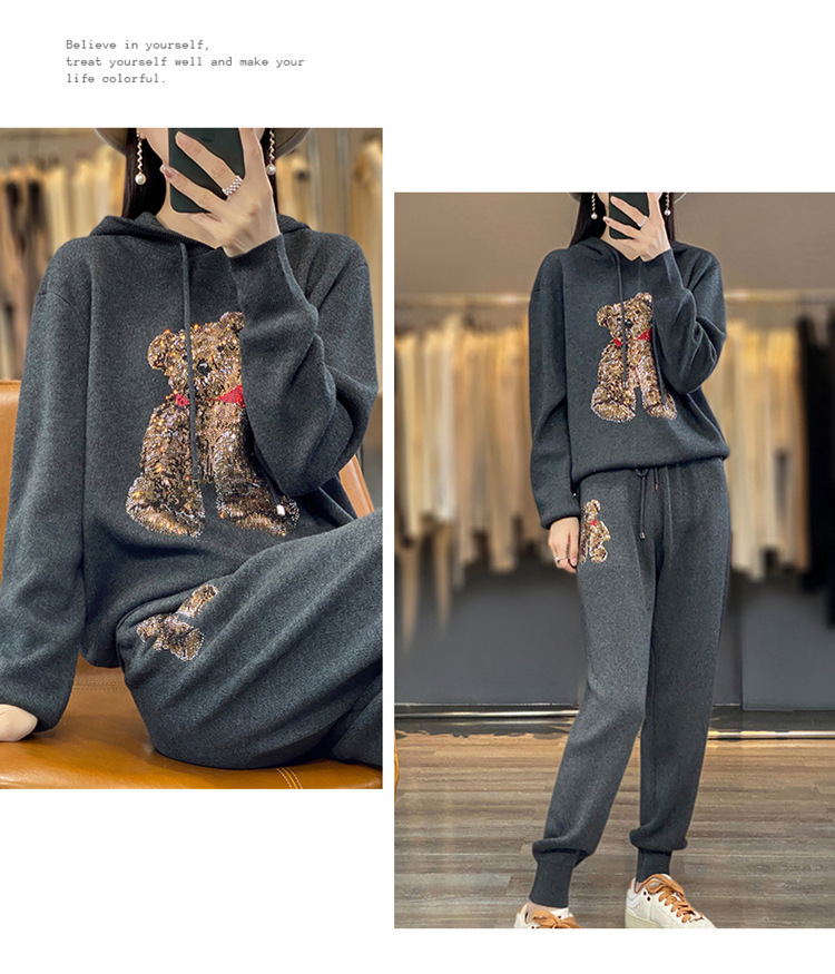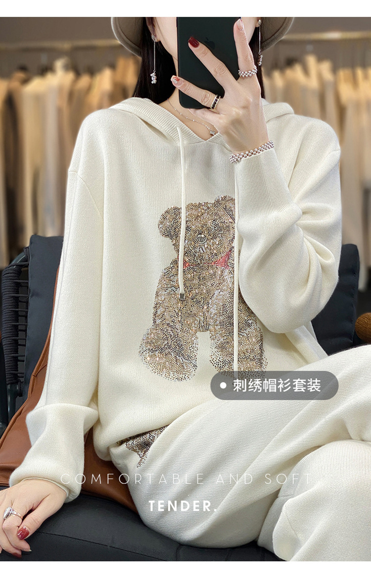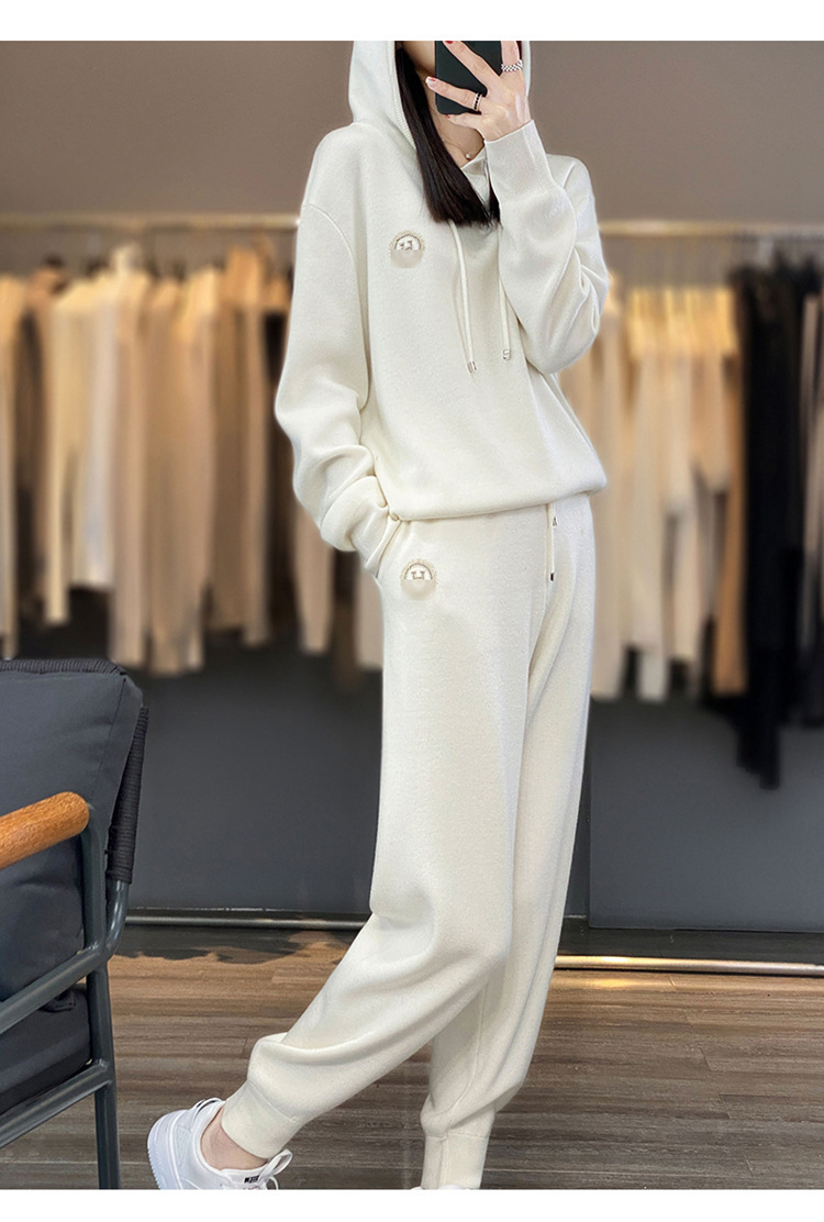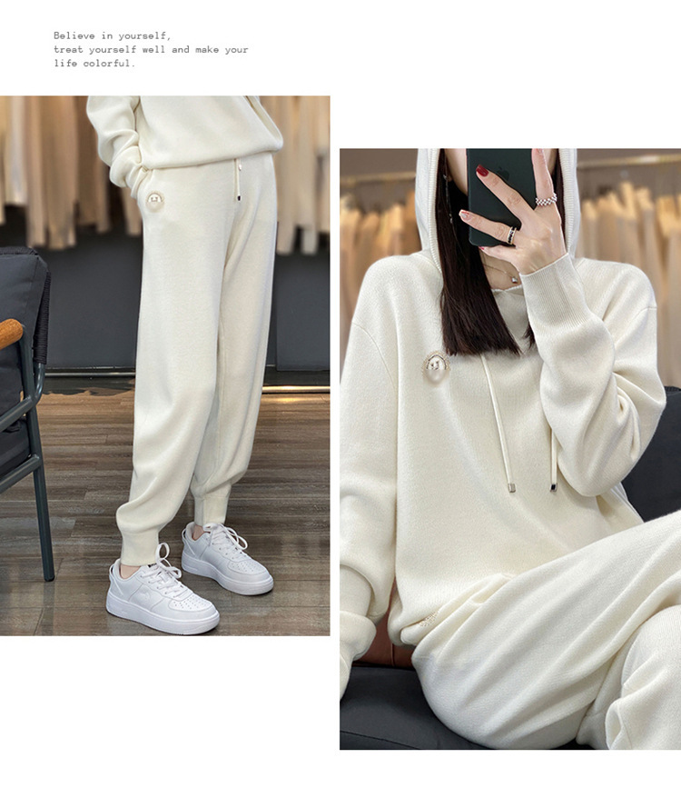 宽松休闲羊毛衫加厚套装女连帽卫衣卫裤毛衣2023秋冬针织两件套