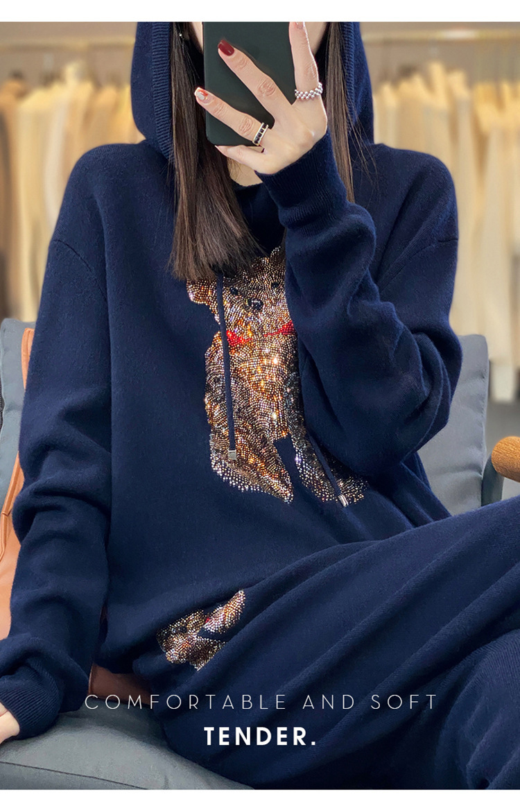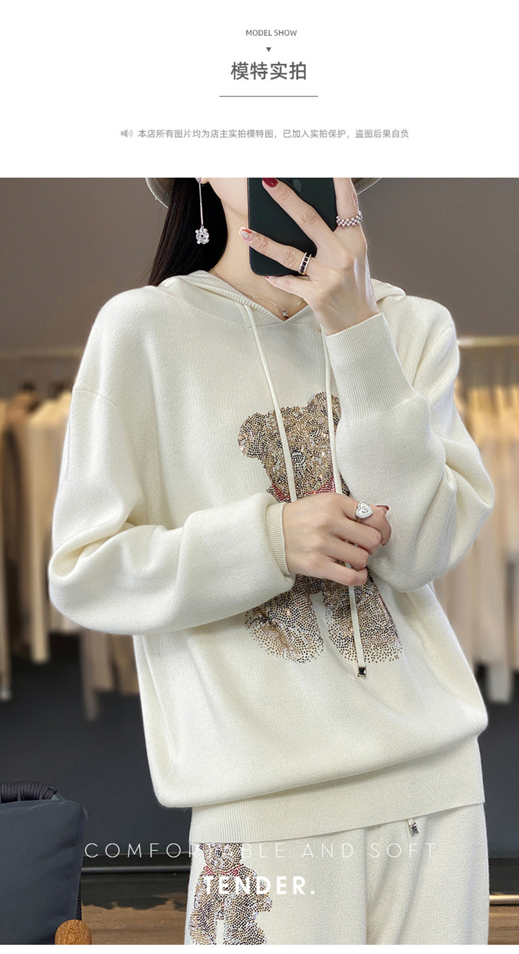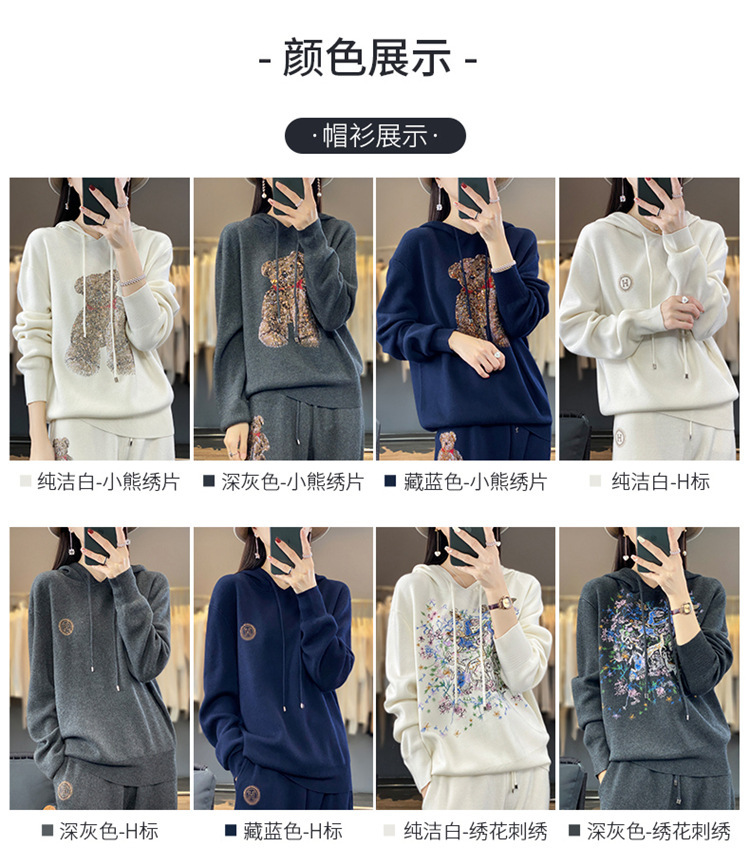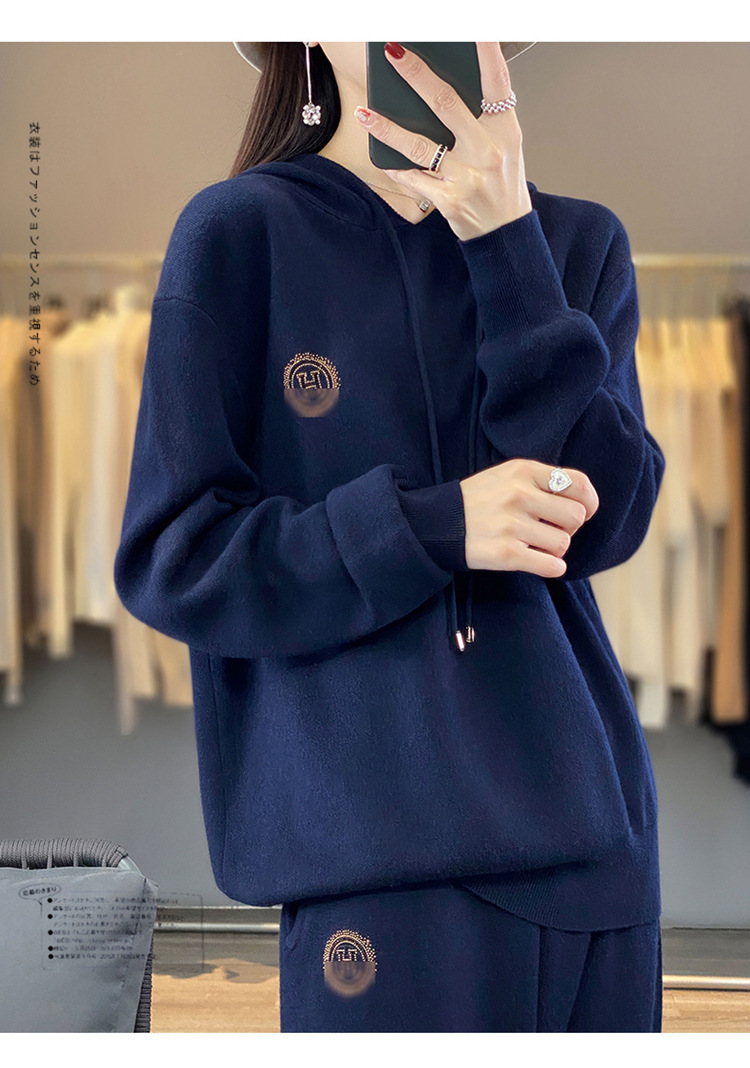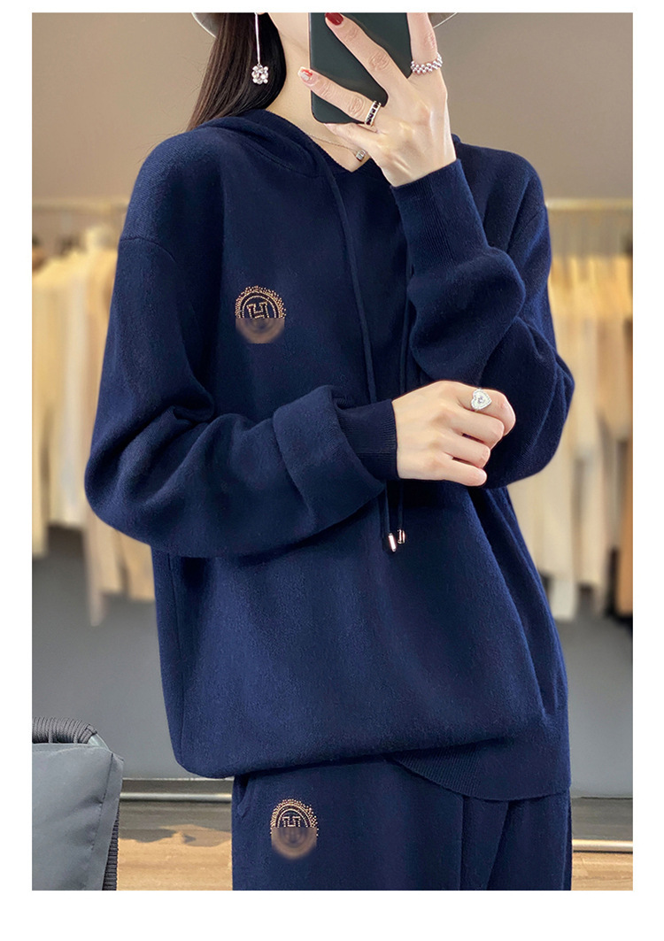 秋冬休闲羊毛针织套装,连帽卫衣,时尚百搭宽松通勤风QH