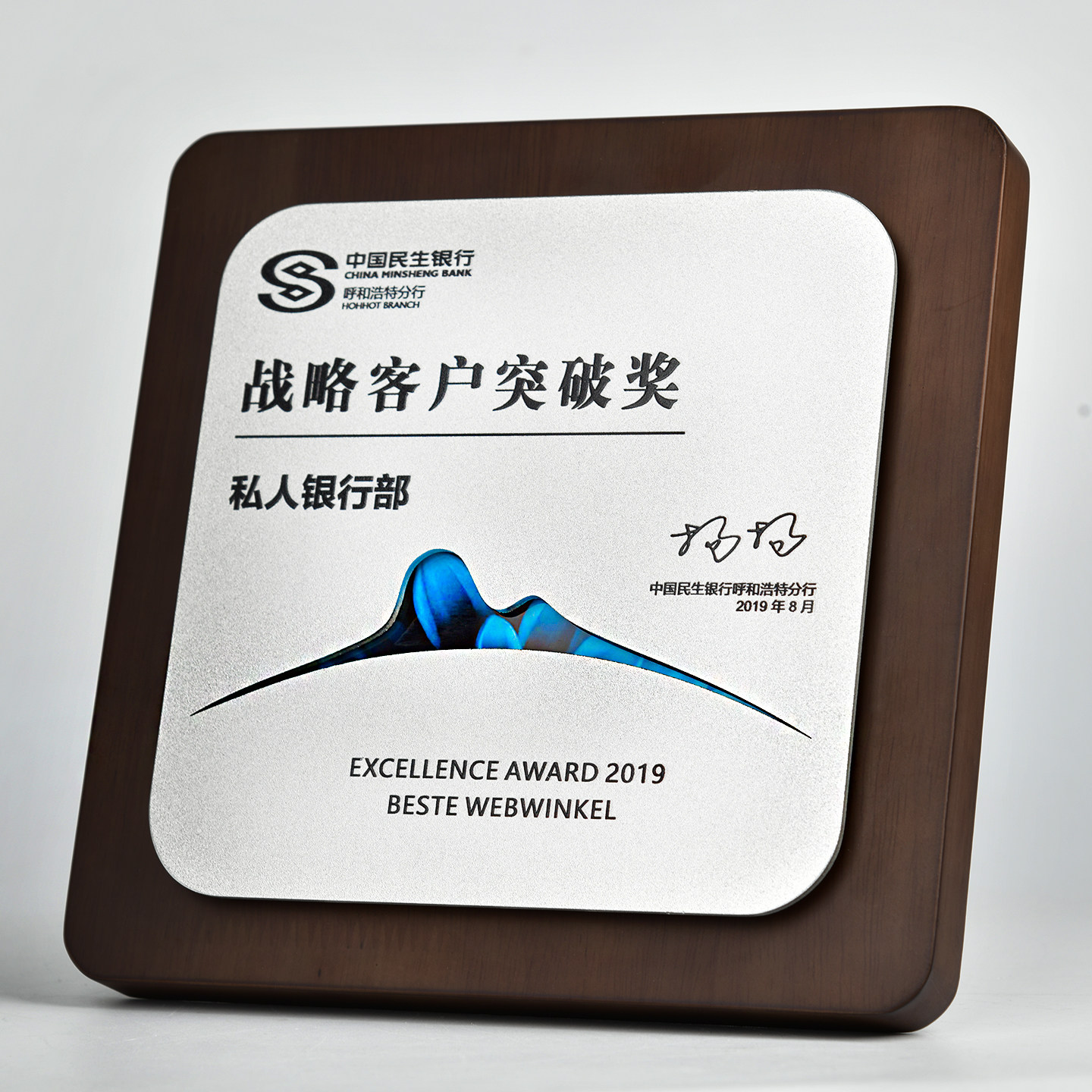 授权牌匾铝合金浮雕镜面证书加盟商会奖杯胡桃木水晶金属奖牌定制