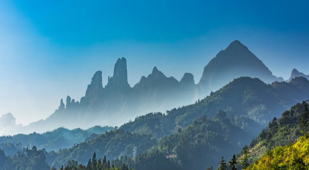 早起拍摄云雾缭绕的圣堂山、五指山日出,之后前往圣堂山入住半山酒店,圣堂山为大瑶山主峰,为泥盆系紫红色砾岩和砂石组成,经自然力的作用和地表水长期侵蚀、切割、风化,崩解为丹峰挺拔、朱崖壁立、棱角刚锐、峡谷幽深的大瑶山丹霞式刚棱削面塔柱地貌,我们将在此拍摄云海翻腾下若隐若现的山峰景致直到日落。