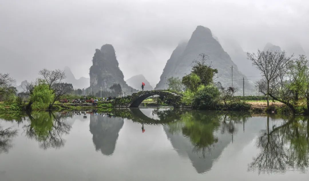 位于临桂区会仙镇沐宦头村。这里四面环山,阡陌纵横,稻田如明镜,倒映着天光、山色、树影,与村庄农舍一同构成一个开放的大公园,是欣赏拍摄山水田园风光的好去处!
