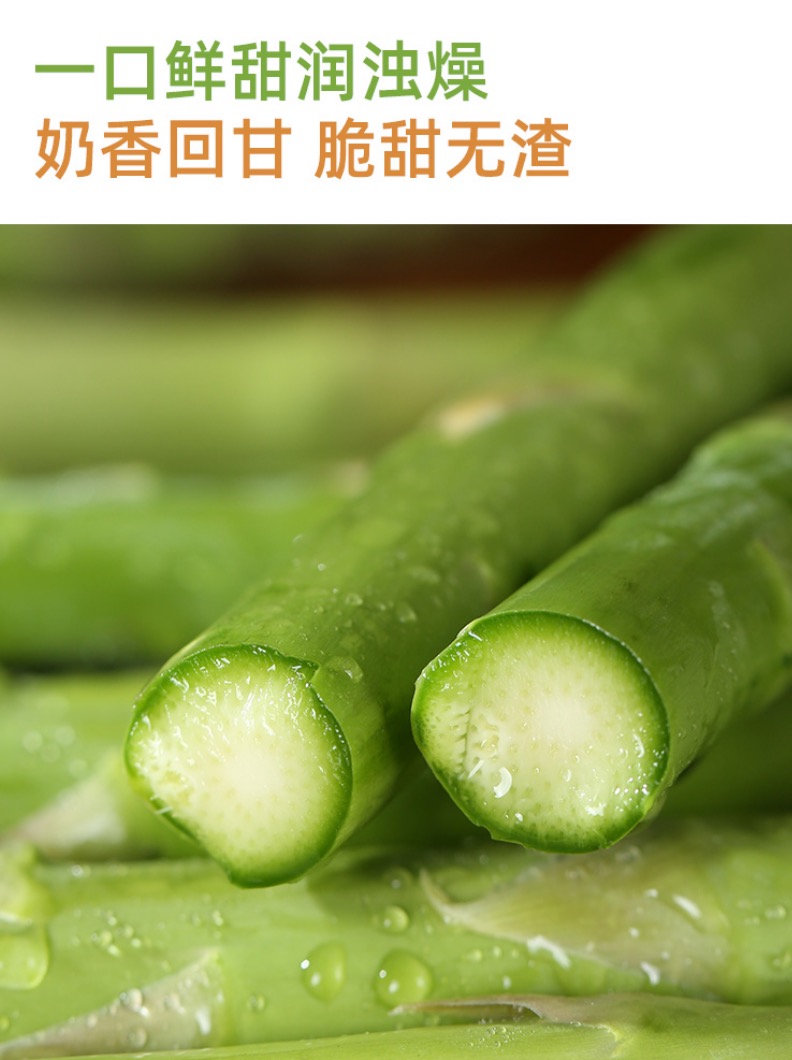 1.新鲜芦笋收到后建议尽快食用,鲜买鲜吃,口感最佳。