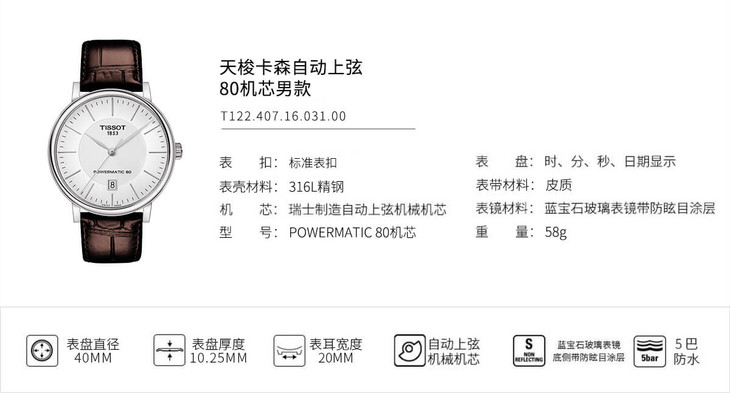 | 品牌 | 天梭 TISSOT | 型号 | T122.407.16.031.00 |