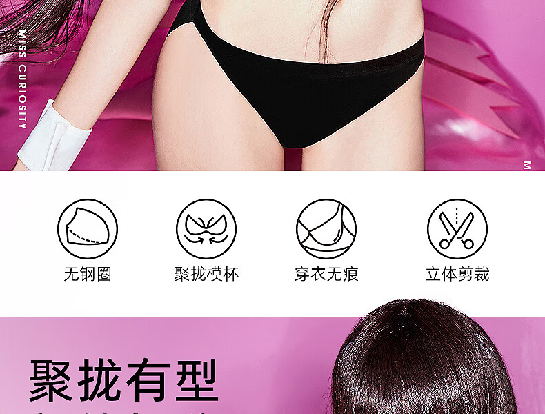 好奇蜜斯(Miss Curiosity)无痕内衣女薄小胸聚拢显大无钢圈性感防下垂文胸罩套装 伊丽丝