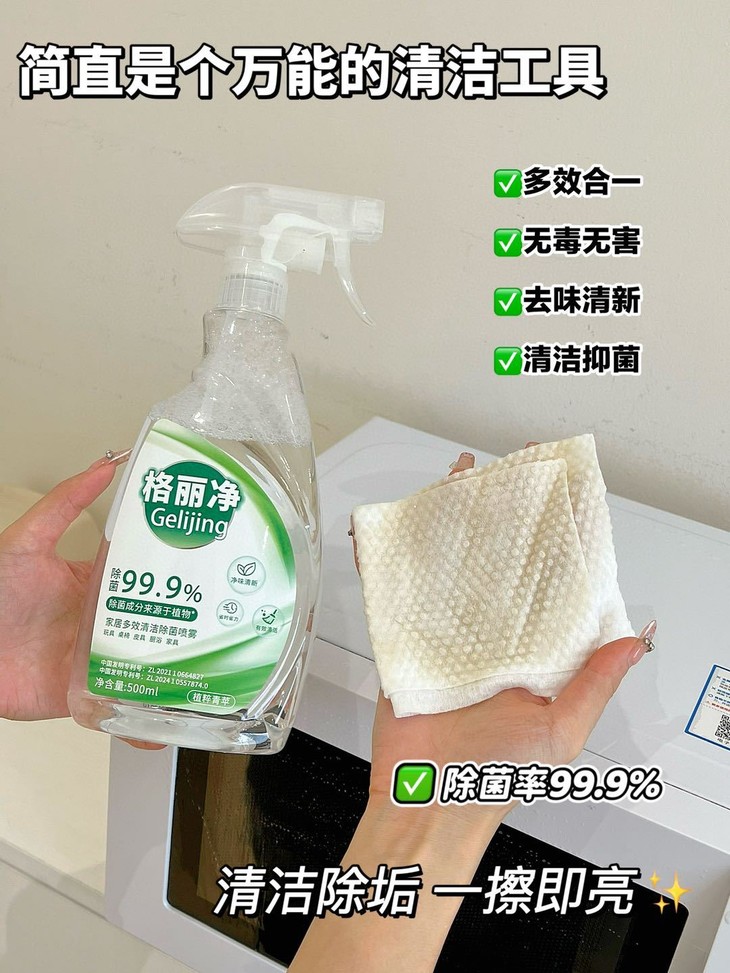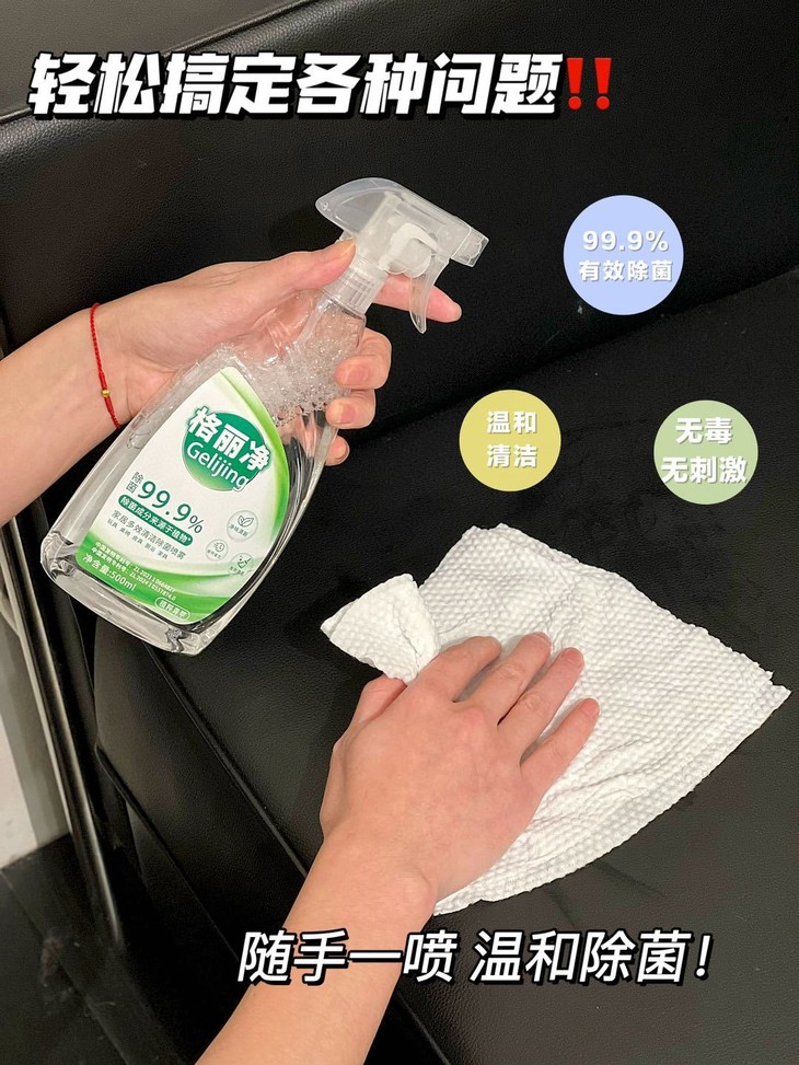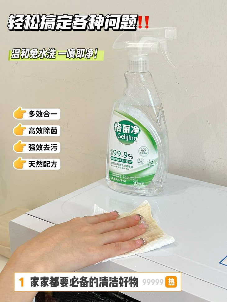 多场景适用✅ 只需要轻轻一喷,那些顽固的污渍就像遇到了克星一样,迅速被瓦解了。 它还能去除异味和除菌 99.9%除菌 真的是一举多得!
