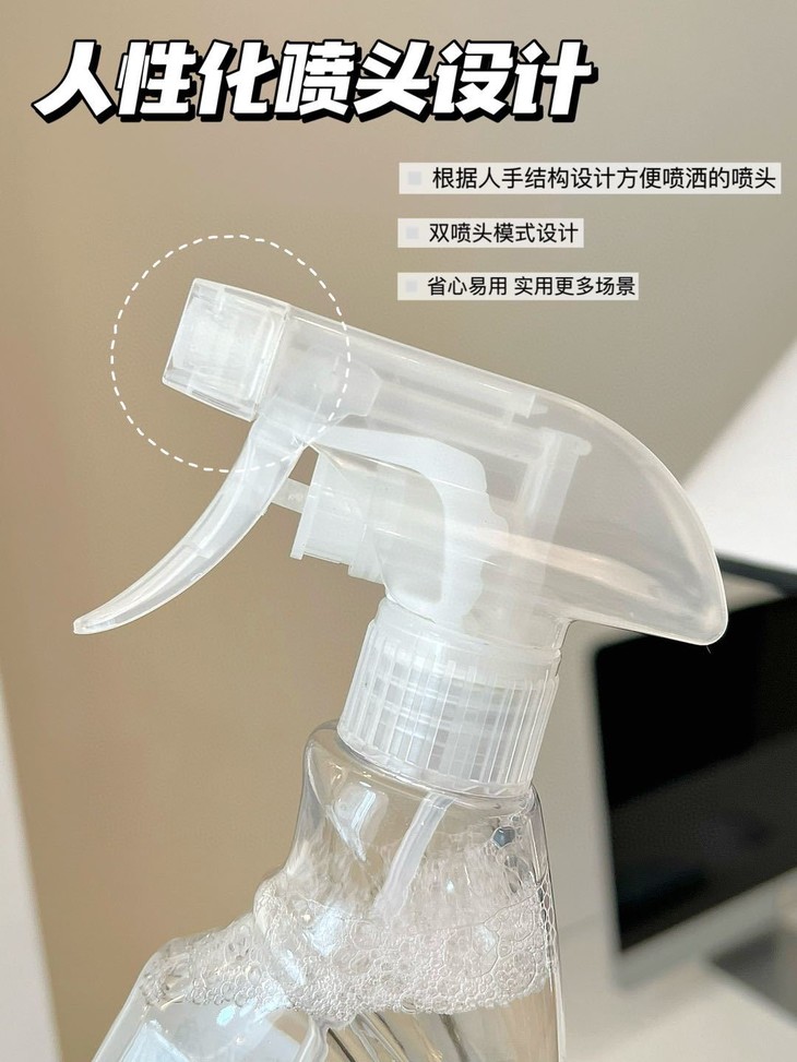 使用这款清洁剂 你完全不用担心操作复杂 它采用了简单的喷雾设计 只需轻轻一按,清洁剂就能均匀喷洒在需要清洁的表面上 然后,你只需用湿布轻轻一擦,污渍就能轻松去除 整个过程既简单又快捷 让你在享受清洁乐趣的同时 还能省下不少时间和精力。