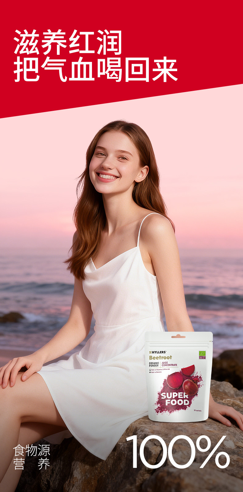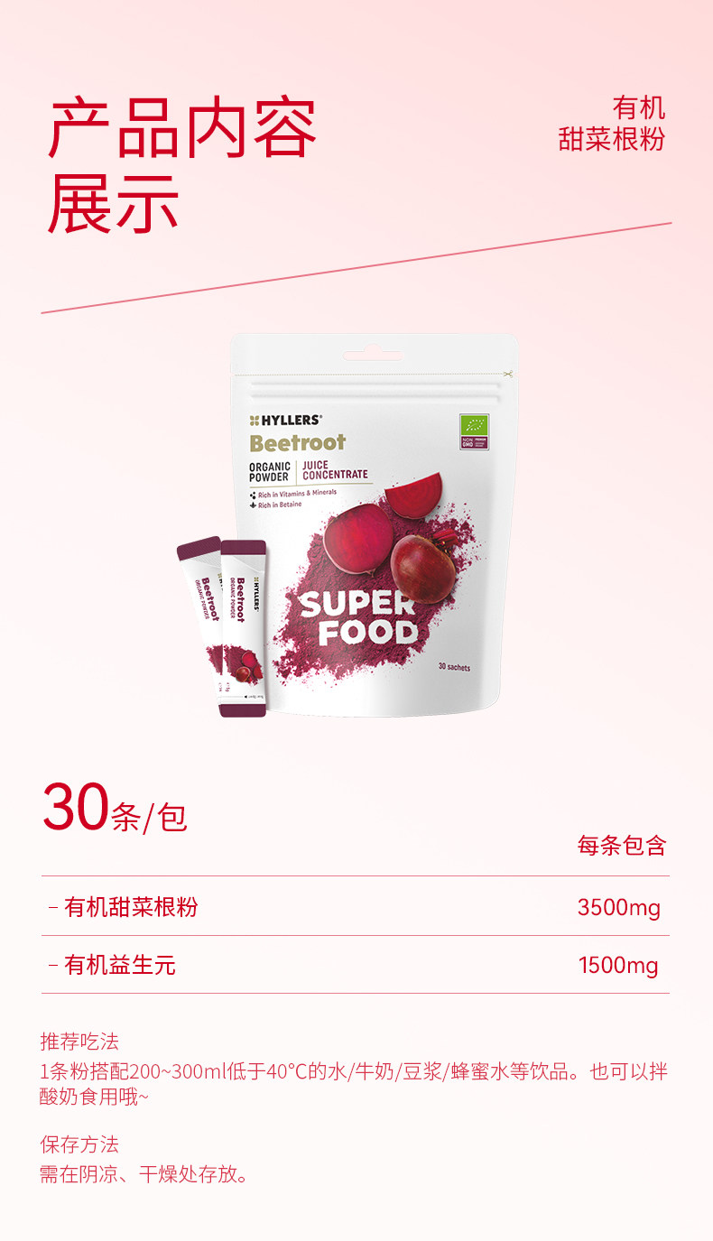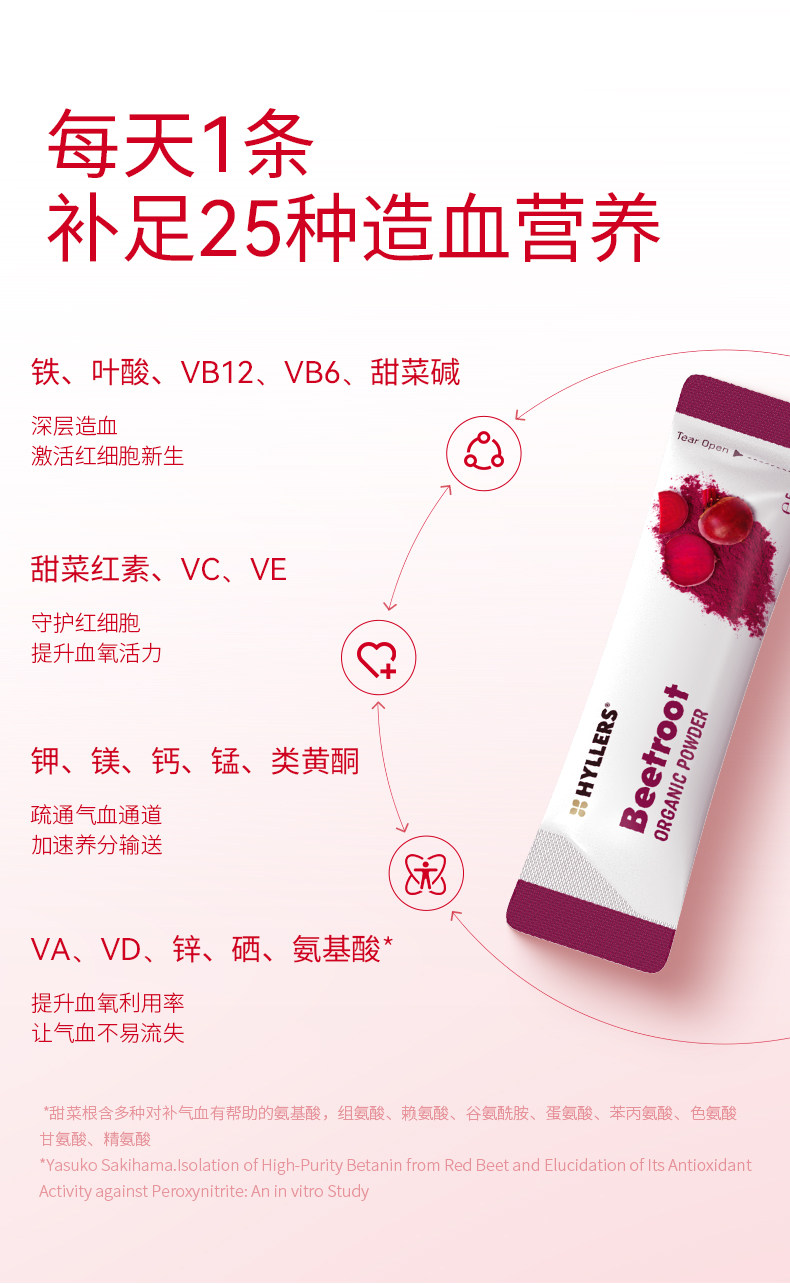 Hyllers甜菜根粉女性天然浓缩气血营养品补铁剂食品红润美丽容颜