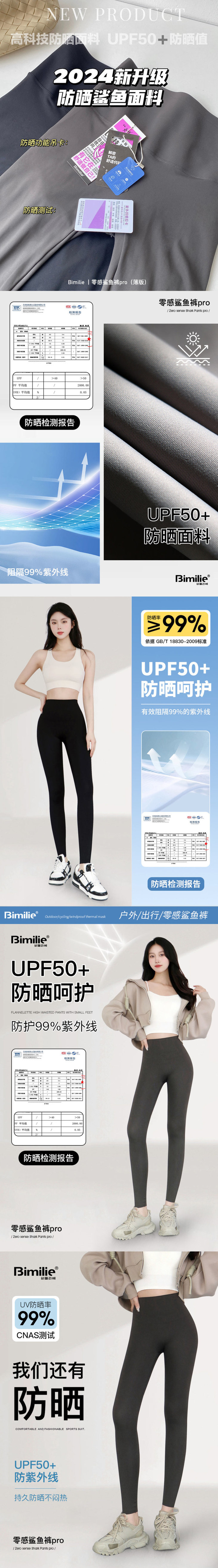 2024Bimilie更是将王牌鲨鱼裤面料升级为UPF50➕的防晒面料,