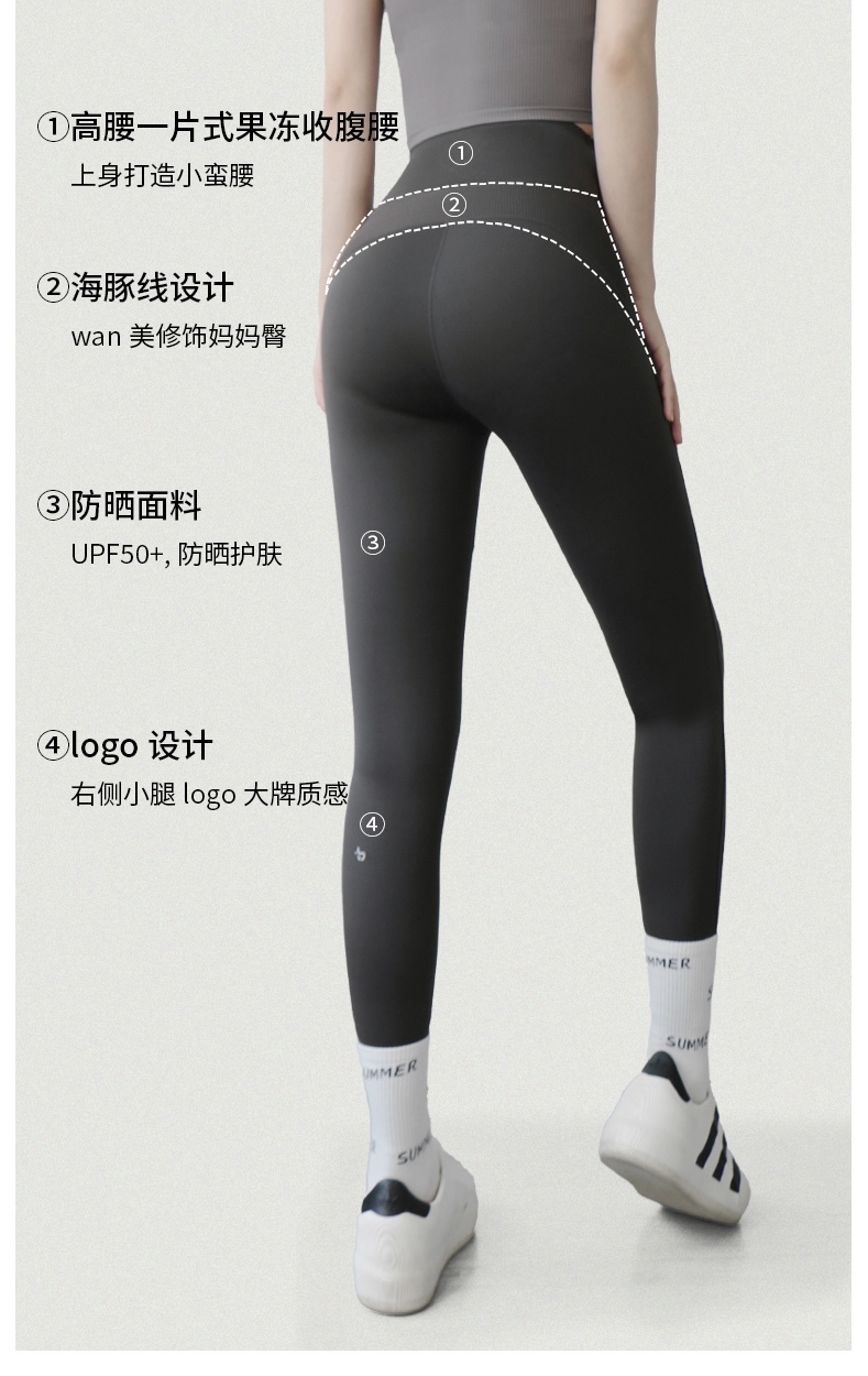 2.环绕式黑金科技提臀设计,下拉上提,收紧大腿跟与臀周。