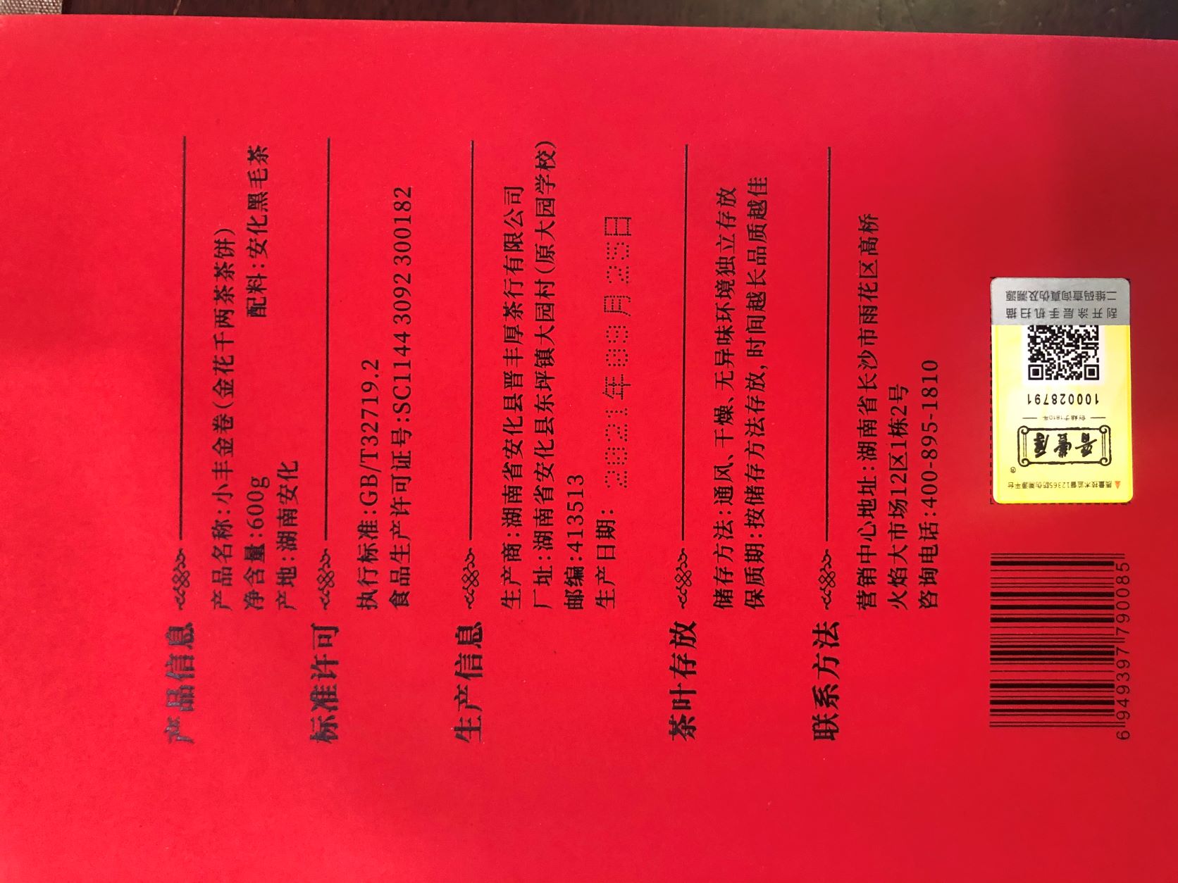 产品特色:为晋丰厚茶油量身打造的精品黑茶