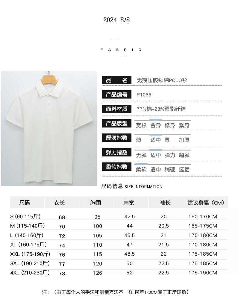 高端230g棉无痕领Polo衫男短袖t恤纯色新疆棉商务压胶男式Polo衫
