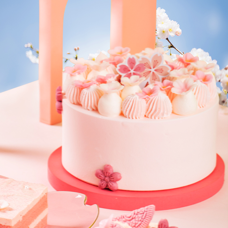 粉嫩的巧克力樱花微微点缀在表面,缓缓切开淡粉的奶油下面隐藏着樱花慕斯和香脆爆谷米,赏樱花,品春味,和你爱的人不负好时光