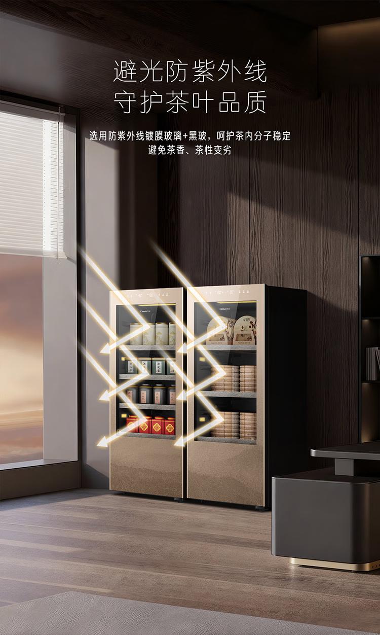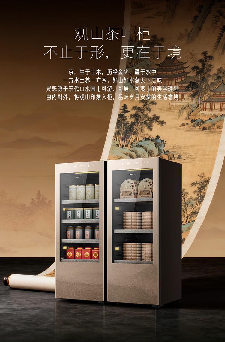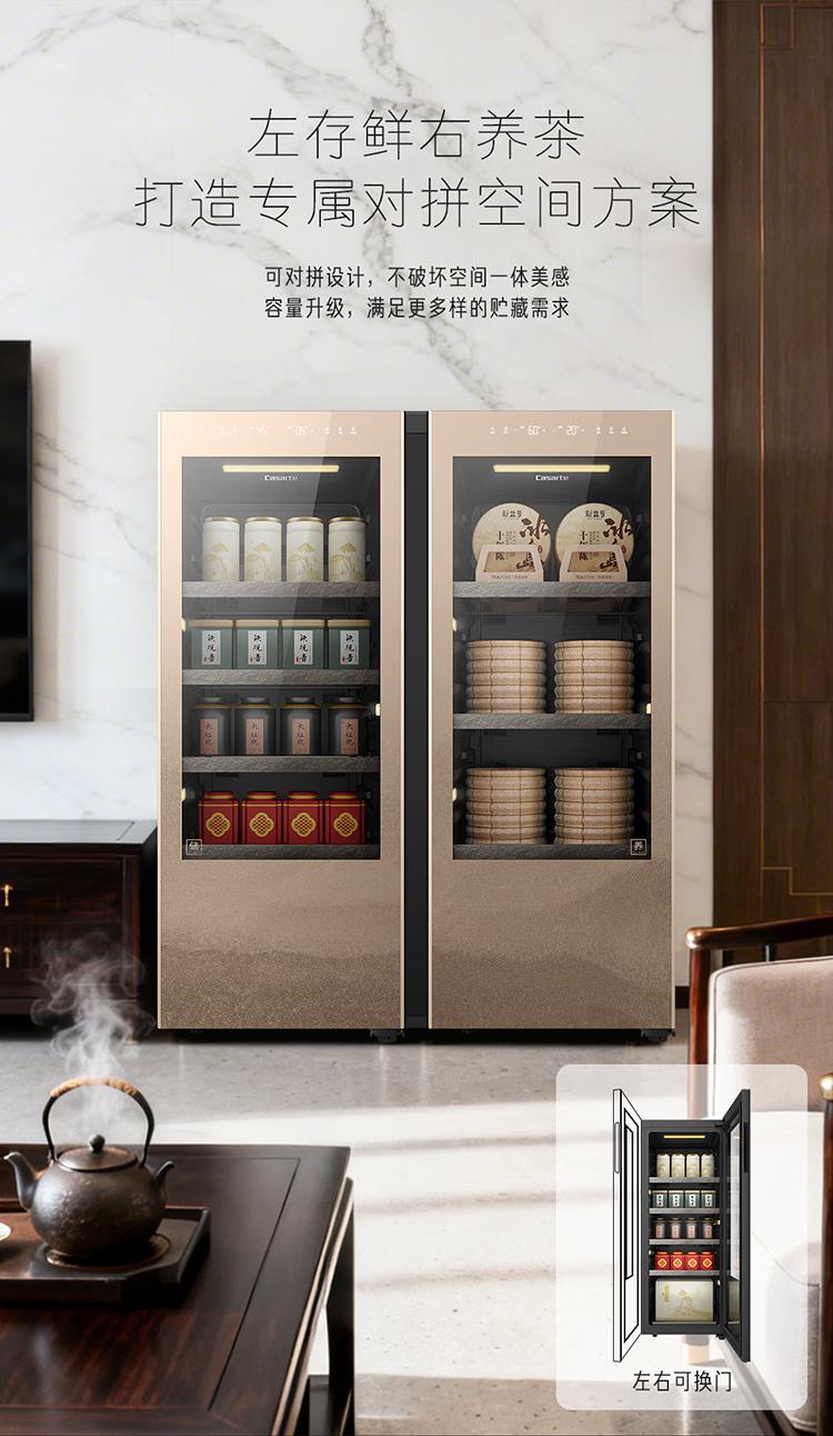 卡萨帝(Casarte)观山茶叶柜冰柜冷藏立式冰柜家用保鲜茶室客厅办公室书房恒温恒湿风冷无霜变频小型透明玻璃展示门 【养藏一体茶叶柜套装】2台组合对开 342升
