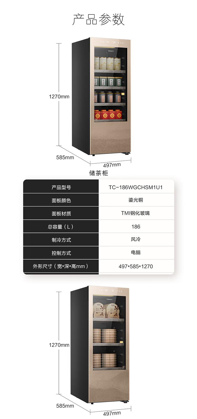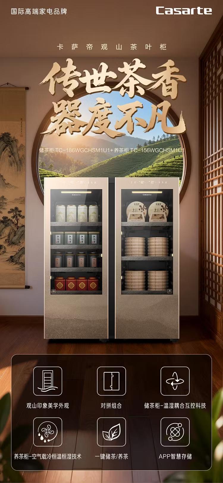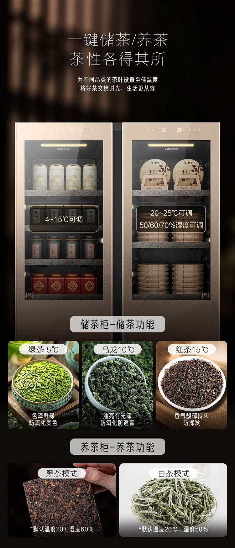 卡萨帝(Casarte)观山茶叶柜冰柜冷藏立式冰柜家用保鲜茶室客厅办公室书房恒温恒湿风冷无霜变频小型透明玻璃展示门 【养藏一体茶叶柜套装】2台组合对开 342升