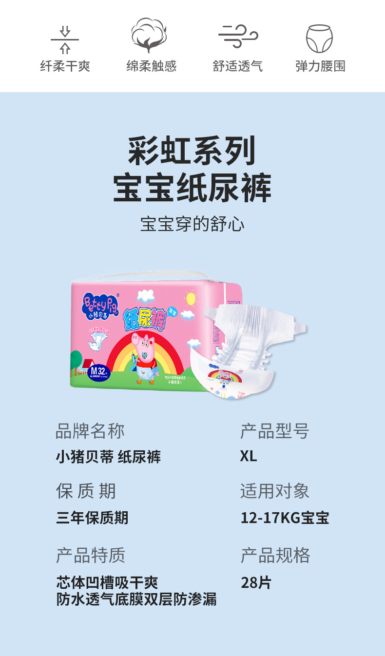 【拉拉裤】小猪贝蒂婴儿纸尿裤热风底膜宝宝拉拉裤透气轻薄尿不湿干爽学步裤